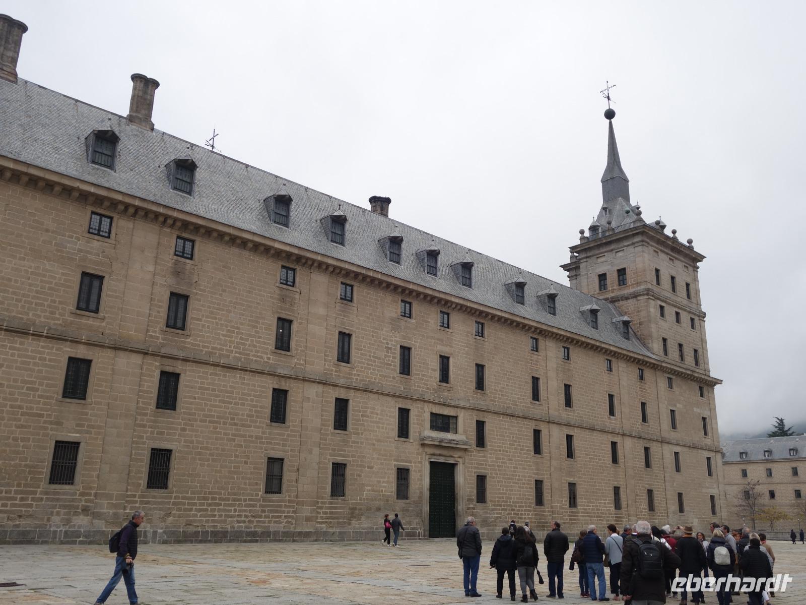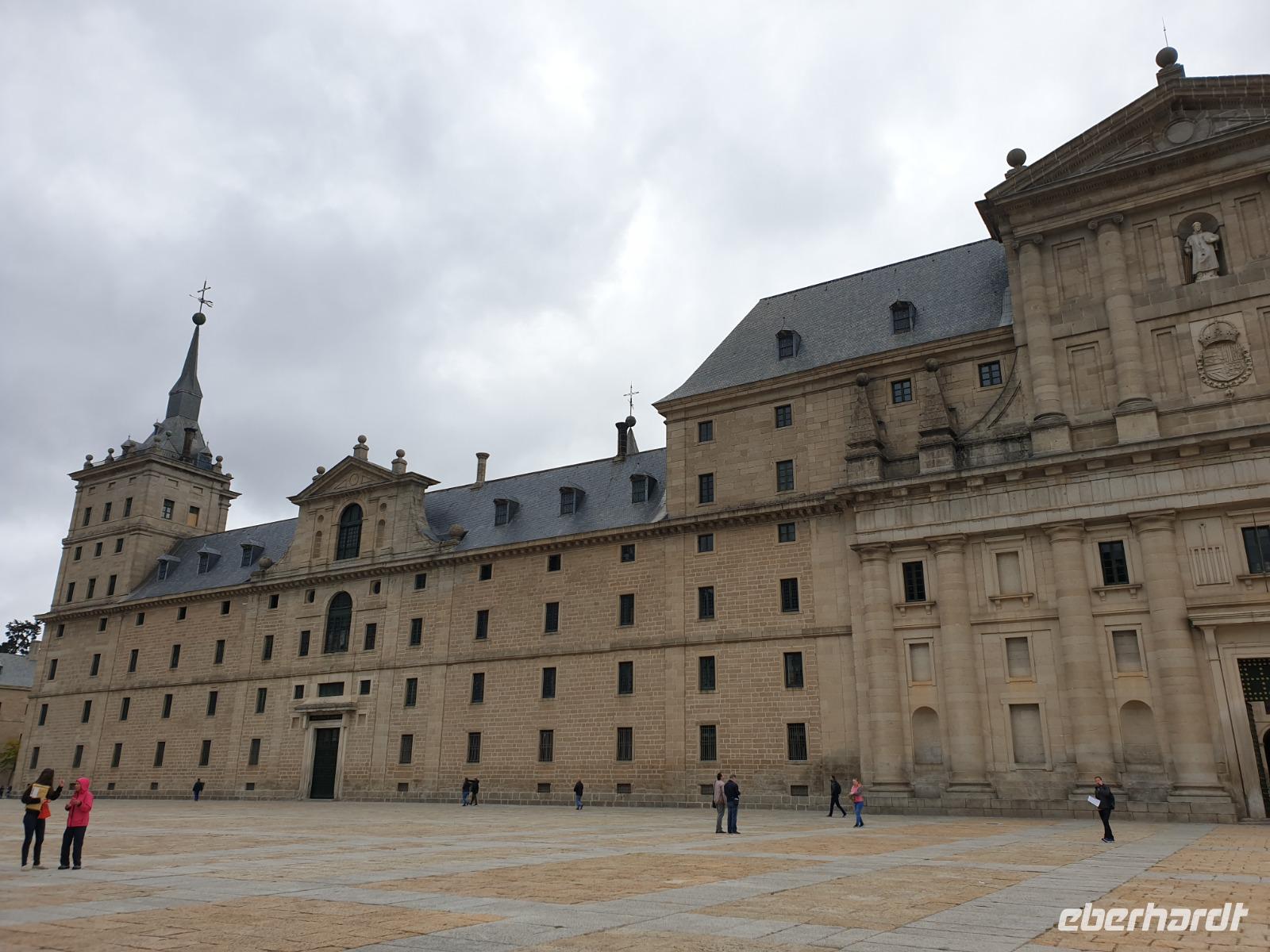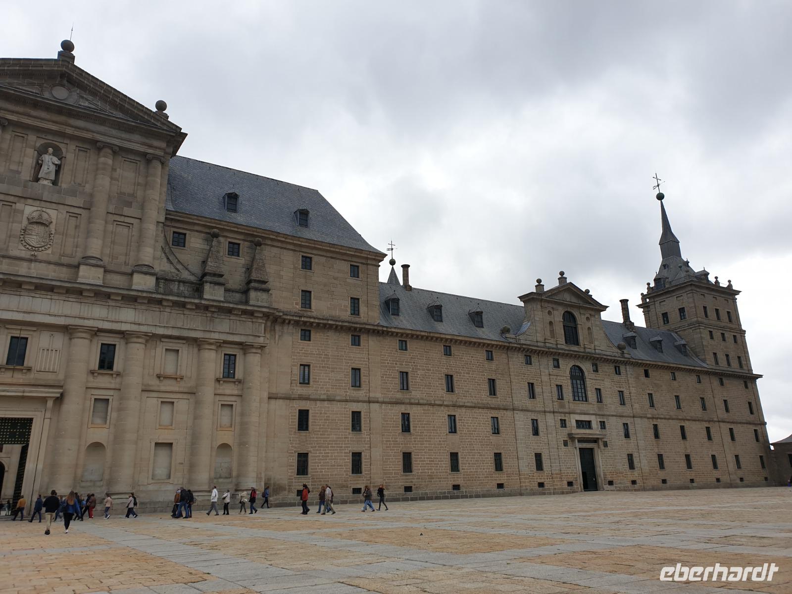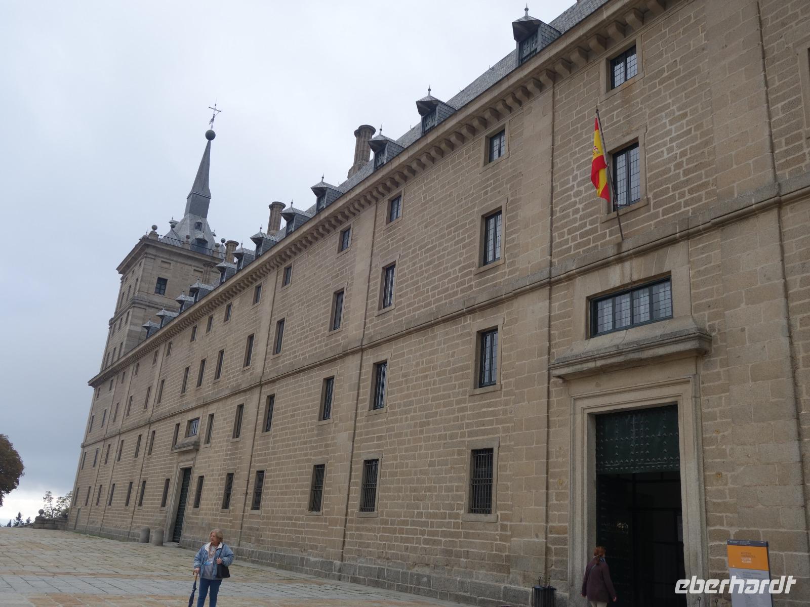 Heute fuhren wir um 9 Uhr früh wieder in das nördliche Umland von Madrid. Wir kennen den Weg schon, da wir hier entlang auch nach Salamanca gefahren sind, aber bevor wir den Tunnel am Berg befuhren, bogen wir links Richtung El Escorial ab. Wir genossen einen Spaziergang durch diese historische Umgebung. Bekannt ist das Städtchen für seine einzigartige Kloster- und Schlossanlage. Der "Königliche Sitz des Sankt Laurentius von El Escorial" gilt als größter Renaissancebau der Welt und wirkt aufgrund einer eher nüchternen Außengestaltung nicht wie ein typischer Palast. Zu der pompös großen Anlage gehören eine Kirche, ein Kloster, der eigentliche Königspalast, eine Schule und eine Bibliothek. Phillip der II. wollte der Welt damals zeigen, wie groß seine Macht war, da man dieses Schloss schon von weit her und auf dem Weg von Madrid gut bestaunen konnte.