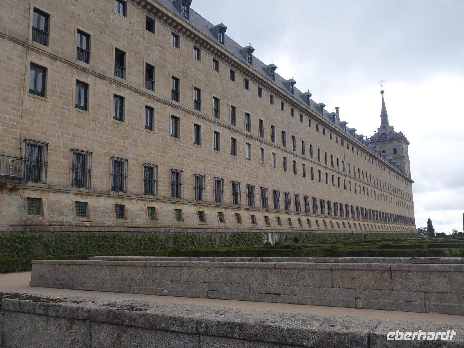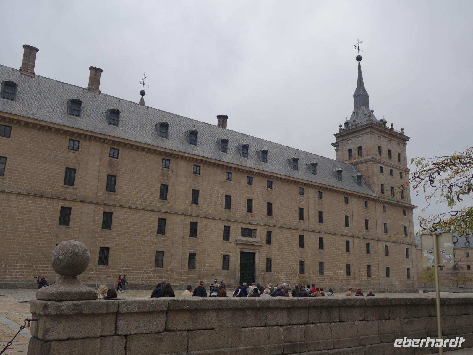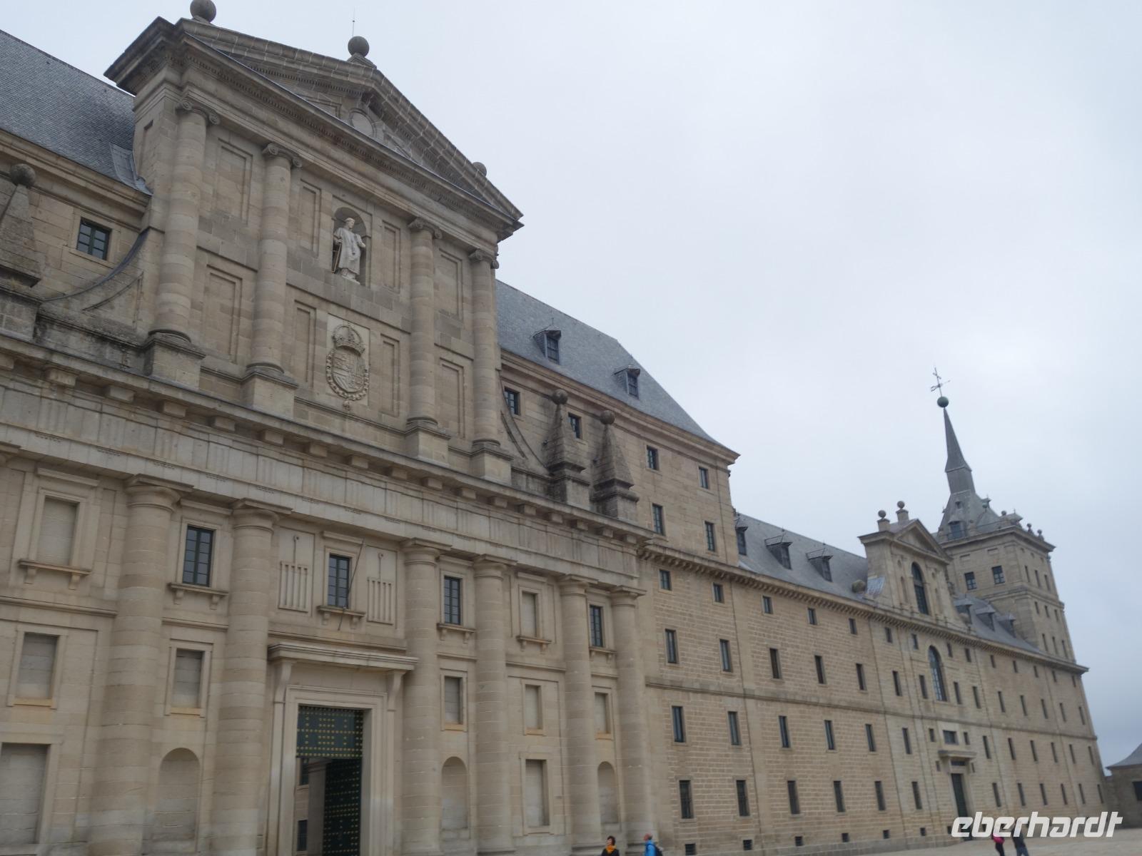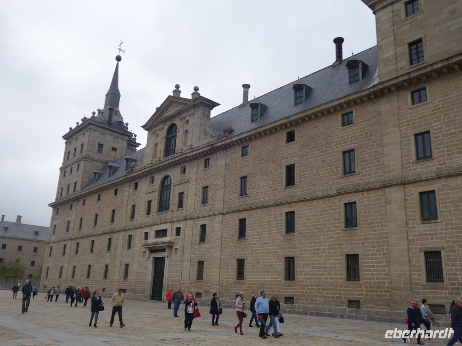 Heute fuhren wir um 9 Uhr früh wieder in das nördliche Umland von Madrid. Wir kennen den Weg schon, da wir hier entlang auch nach Salamanca gefahren sind, aber bevor wir den Tunnel am Berg befuhren, bogen wir links Richtung El Escorial ab. Wir genossen einen Spaziergang durch diese historische Umgebung. Bekannt ist das Städtchen für seine einzigartige Kloster- und Schlossanlage. Der "Königliche Sitz des Sankt Laurentius von El Escorial" gilt als größter Renaissancebau der Welt und wirkt aufgrund einer eher nüchternen Außengestaltung nicht wie ein typischer Palast. Zu der pompös großen Anlage gehören eine Kirche, ein Kloster, der eigentliche Königspalast, eine Schule und eine Bibliothek. Phillip der II. wollte der Welt damals zeigen, wie groß seine Macht war, da man dieses Schloss schon von weit her und auf dem Weg von Madrid gut bestaunen konnte.