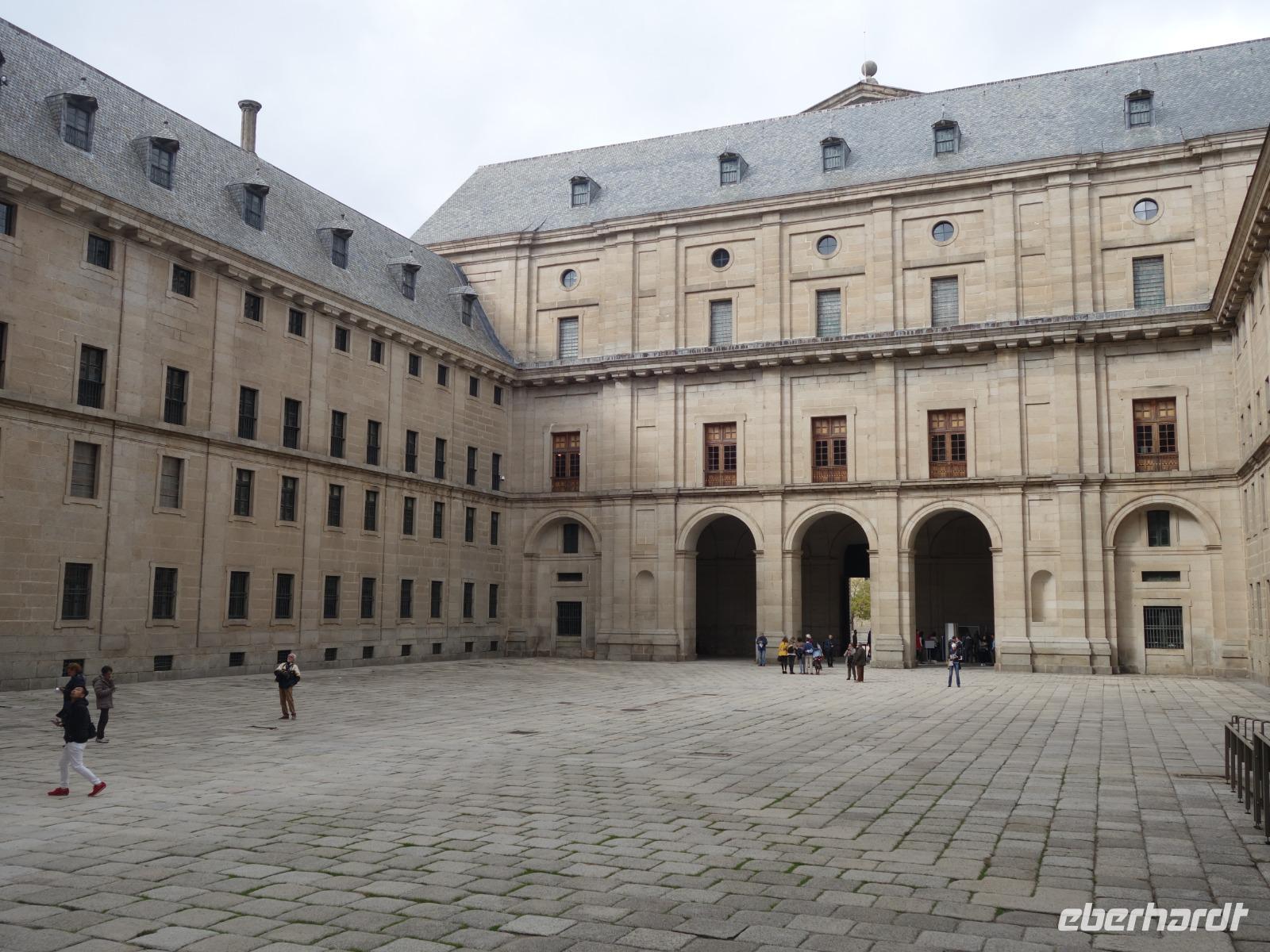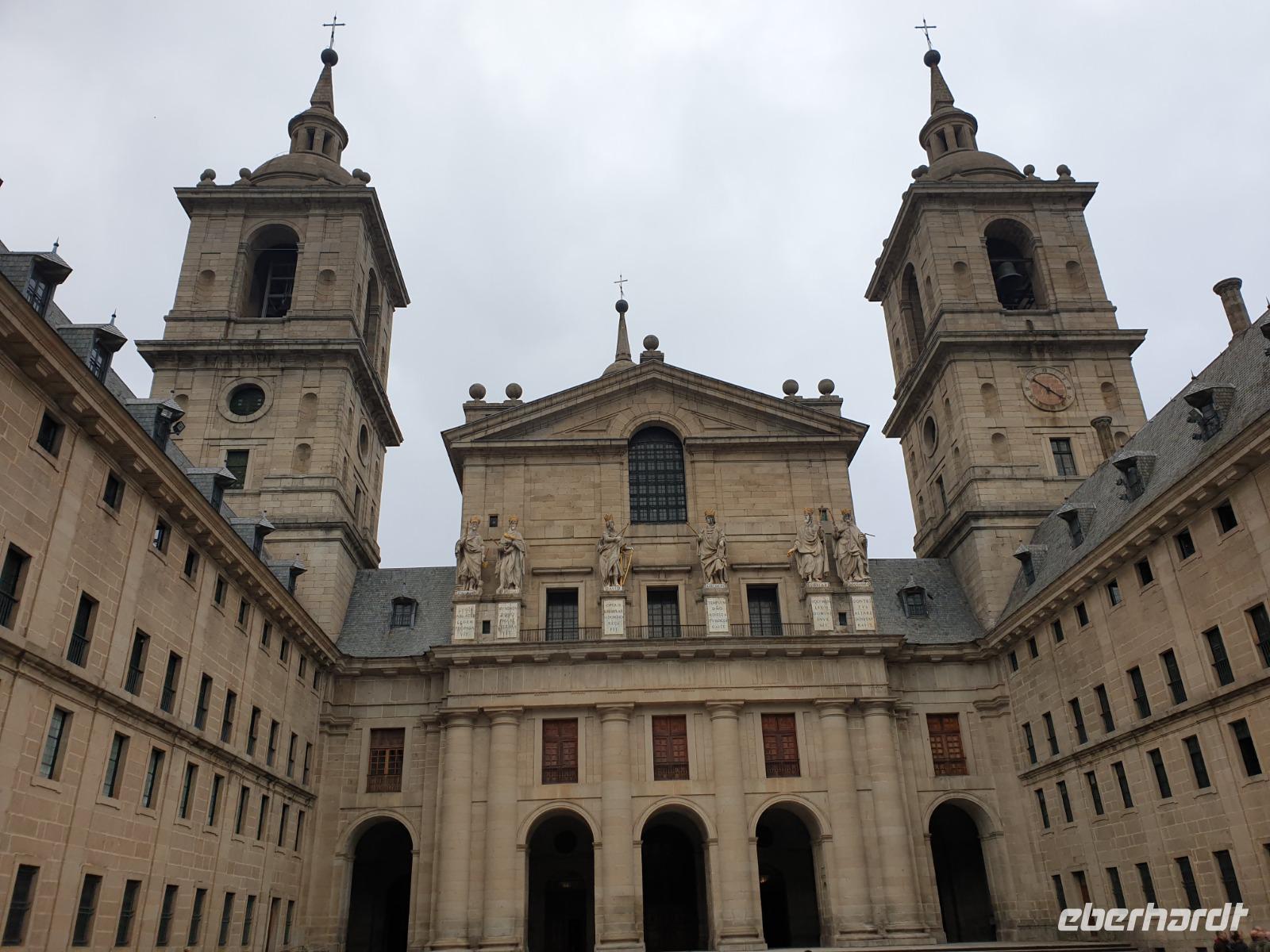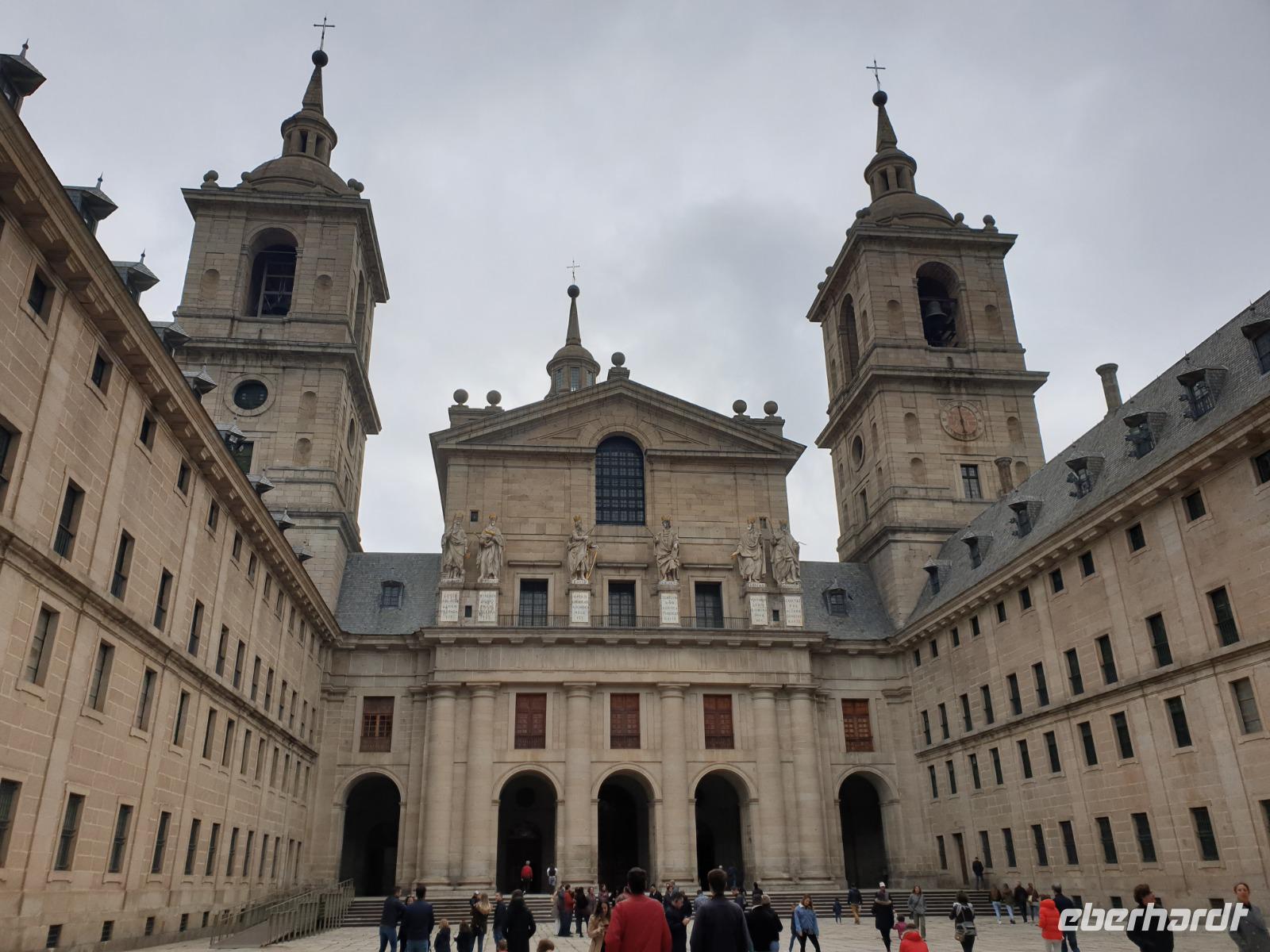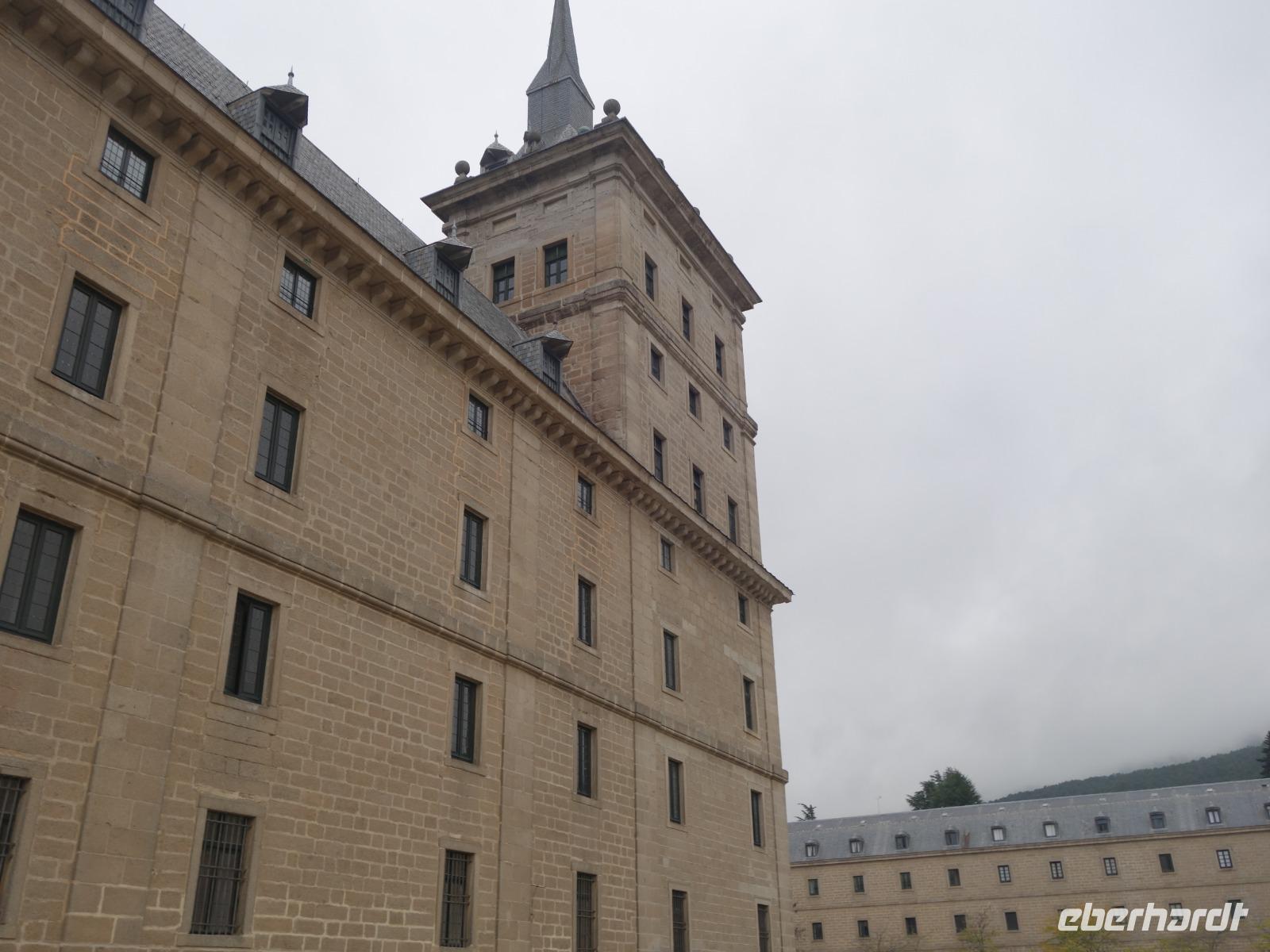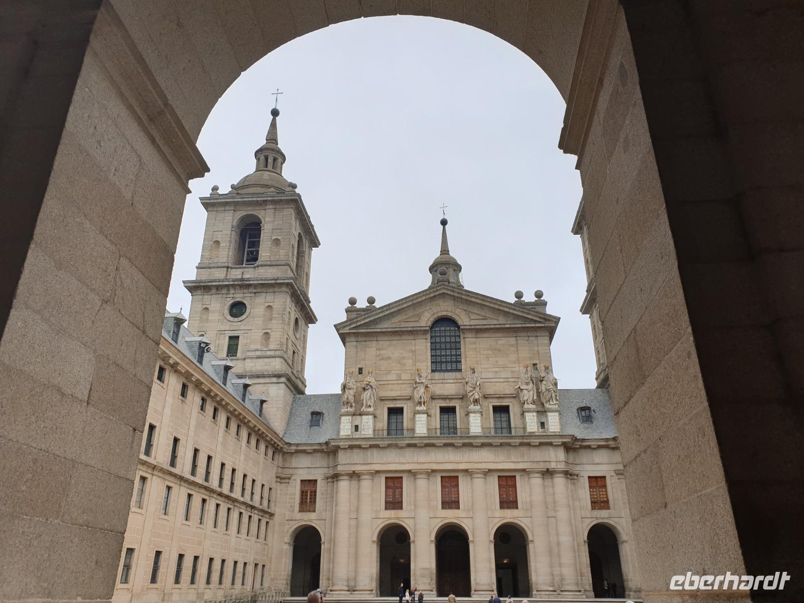 Heute fuhren wir um 9 Uhr früh wieder in das nördliche Umland von Madrid. Wir kennen den Weg schon, da wir hier entlang auch nach Salamanca gefahren sind, aber bevor wir den Tunnel am Berg befuhren, bogen wir links Richtung El Escorial ab. Wir genossen einen Spaziergang durch diese historische Umgebung. Bekannt ist das Städtchen für seine einzigartige Kloster- und Schlossanlage. Der "Königliche Sitz des Sankt Laurentius von El Escorial" gilt als größter Renaissancebau der Welt und wirkt aufgrund einer eher nüchternen Außengestaltung nicht wie ein typischer Palast. Zu der pompös großen Anlage gehören eine Kirche, ein Kloster, der eigentliche Königspalast, eine Schule und eine Bibliothek. Phillip der II. wollte der Welt damals zeigen, wie groß seine Macht war, da man dieses Schloss schon von weit her und auf dem Weg von Madrid gut bestaunen konnte.
