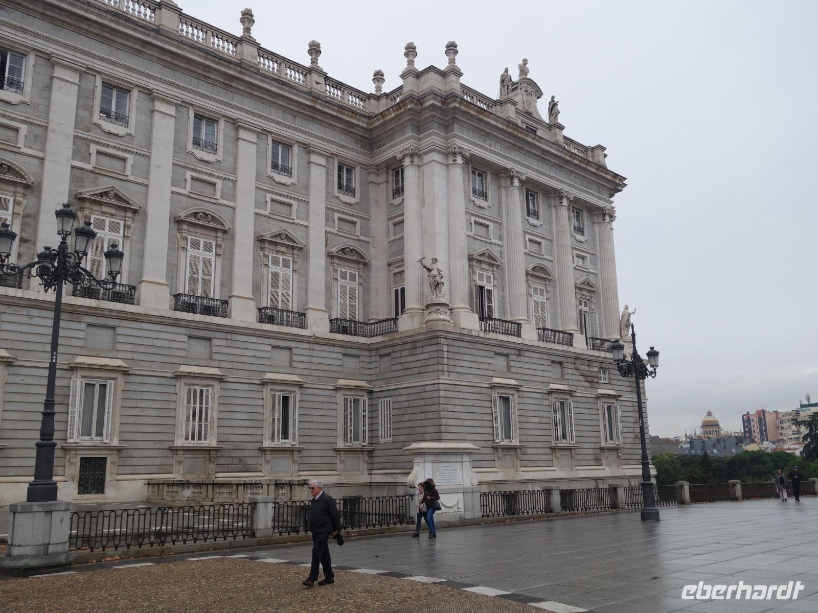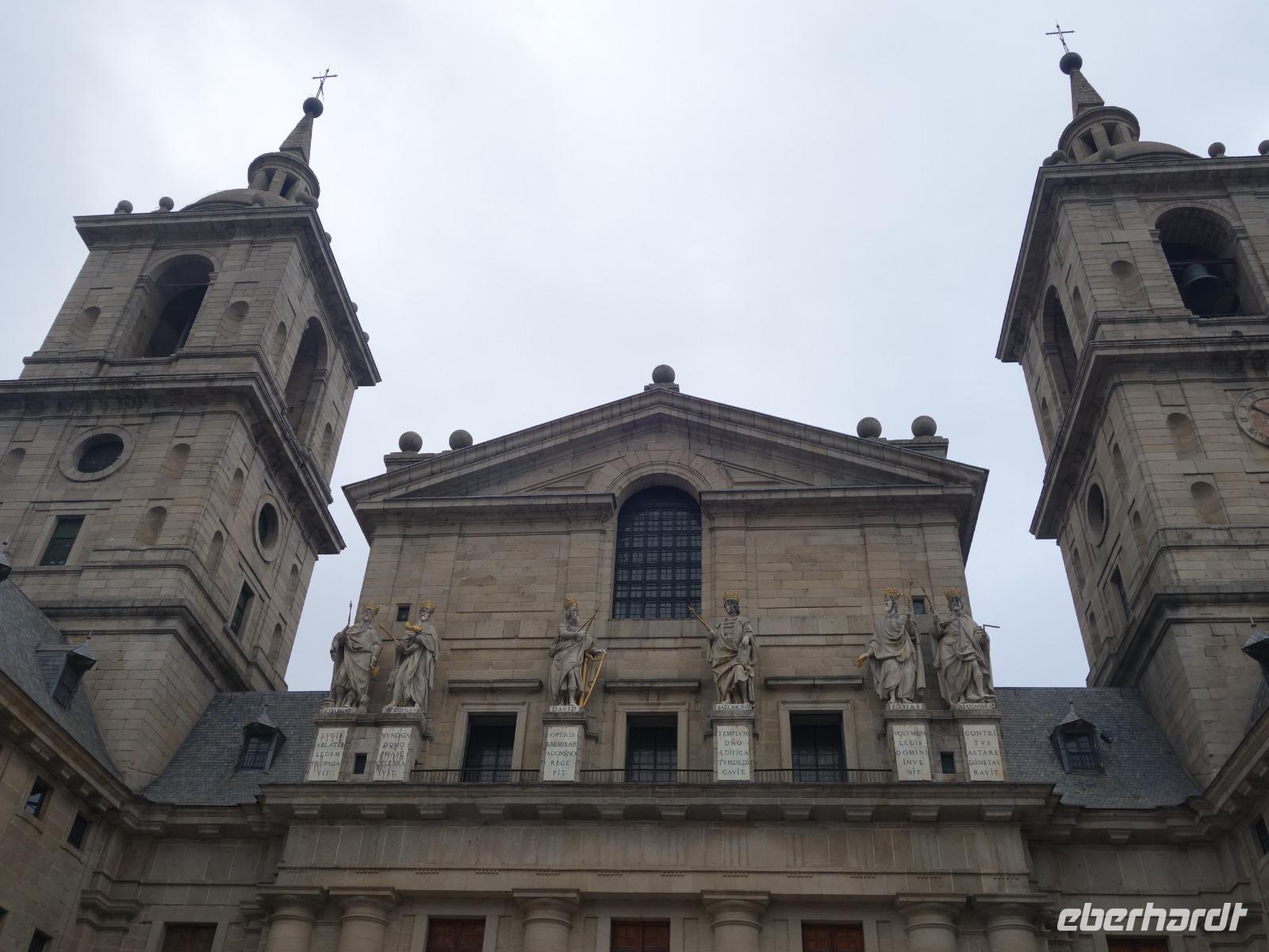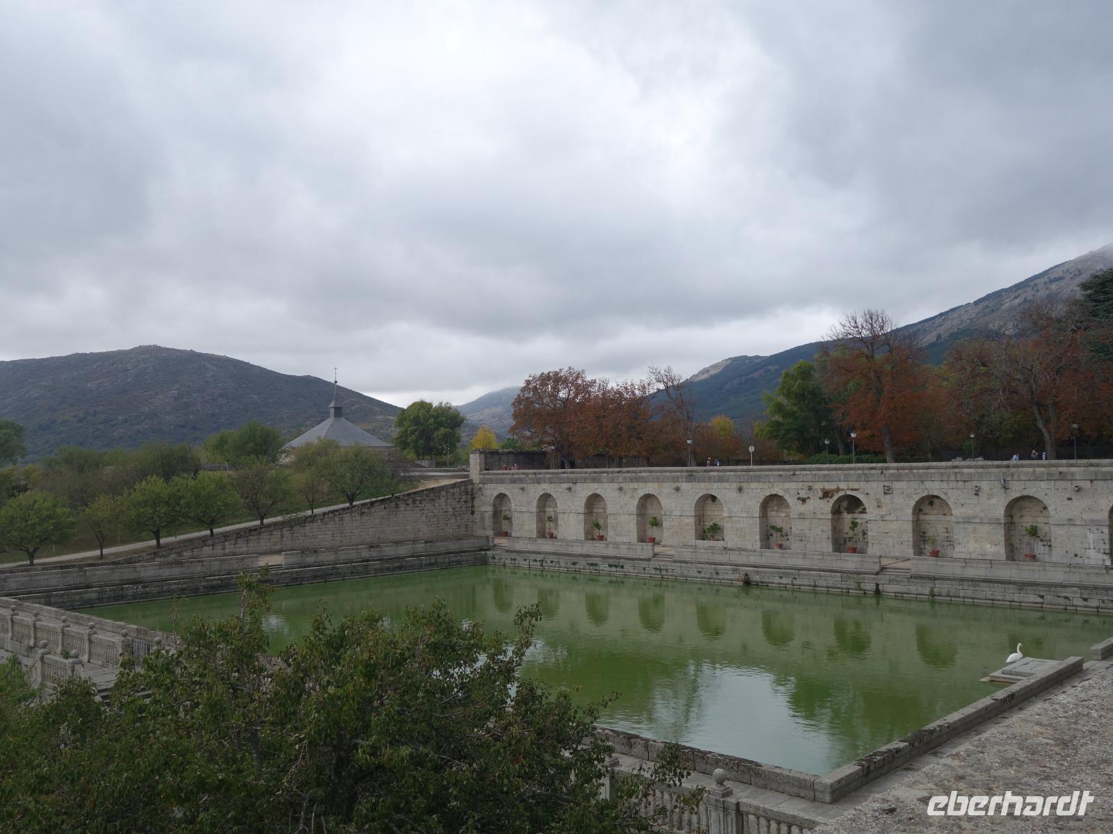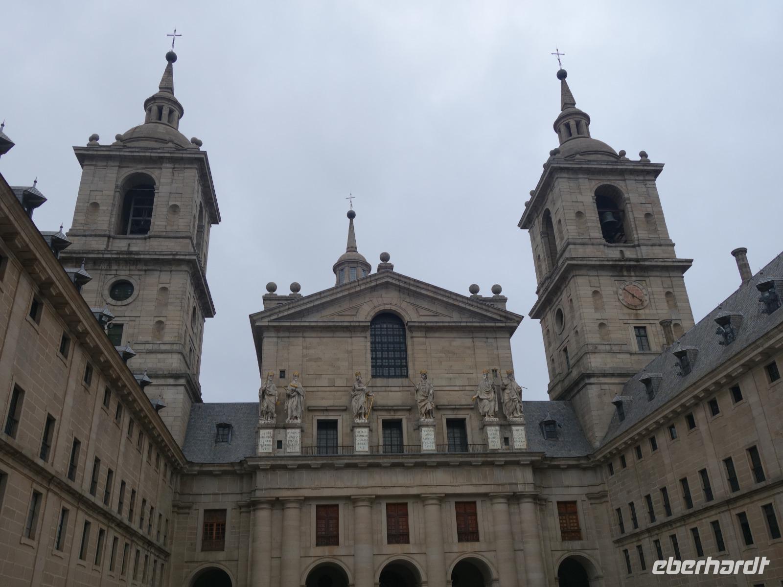 Heute fuhren wir um 9 Uhr früh wieder in das nördliche Umland von Madrid. Wir kennen den Weg schon, da wir hier entlang auch nach Salamanca gefahren sind, aber bevor wir den Tunnel am Berg befuhren, bogen wir links Richtung El Escorial ab. Wir genossen einen Spaziergang durch diese historische Umgebung. Bekannt ist das Städtchen für seine einzigartige Kloster- und Schlossanlage. Der "Königliche Sitz des Sankt Laurentius von El Escorial" gilt als größter Renaissancebau der Welt und wirkt aufgrund einer eher nüchternen Außengestaltung nicht wie ein typischer Palast. Zu der pompös großen Anlage gehören eine Kirche, ein Kloster, der eigentliche Königspalast, eine Schule und eine Bibliothek. Phillip der II. wollte der Welt damals zeigen, wie groß seine Macht war, da man dieses Schloss schon von weit her und auf dem Weg von Madrid gut bestaunen konnte.
