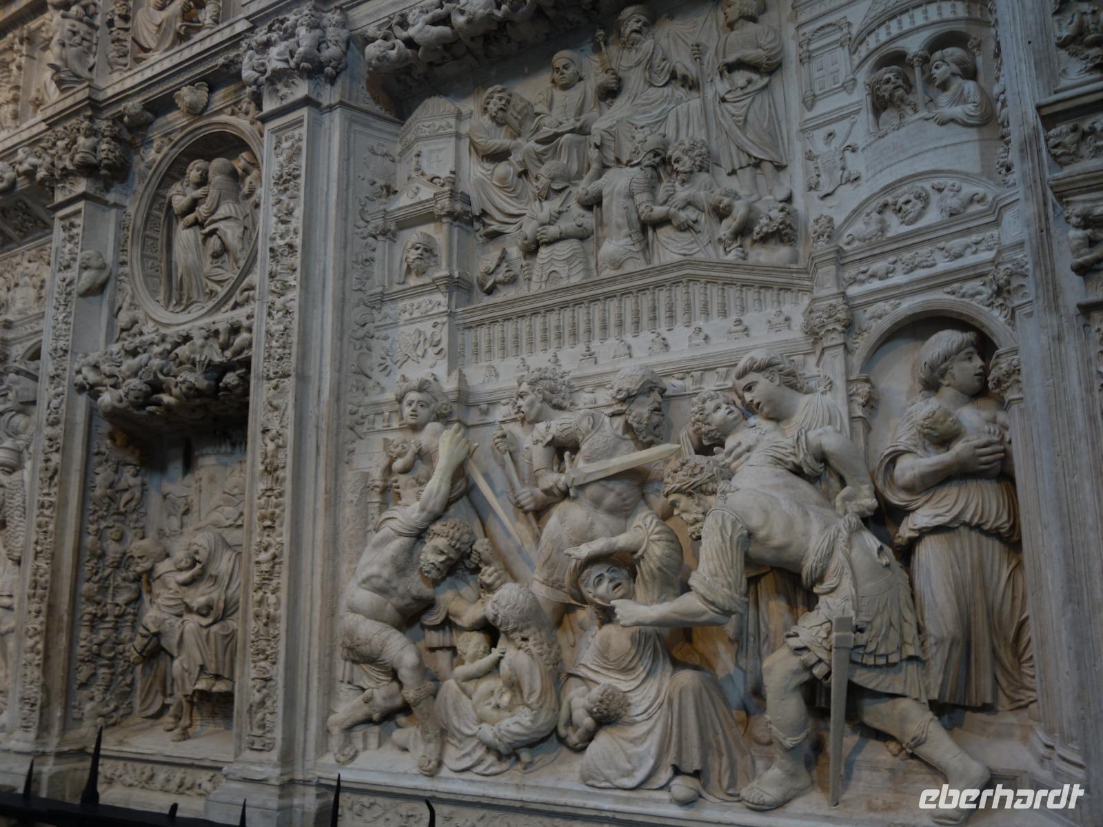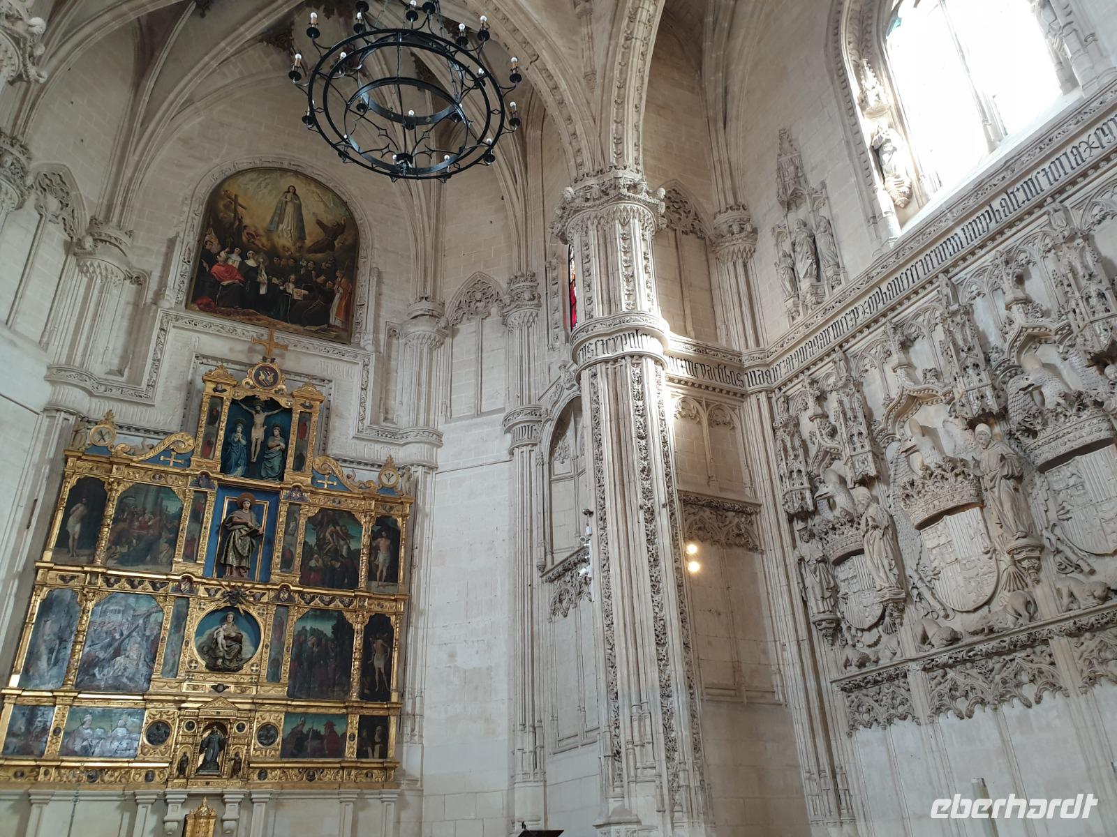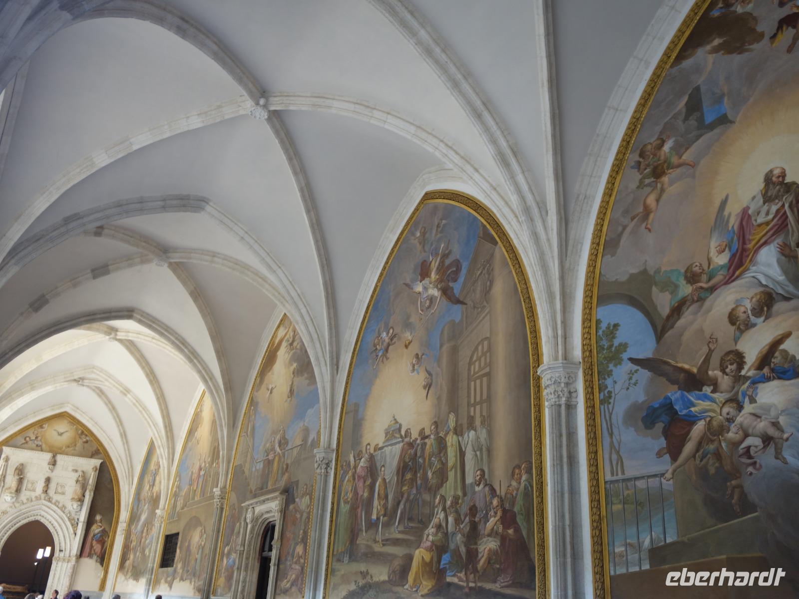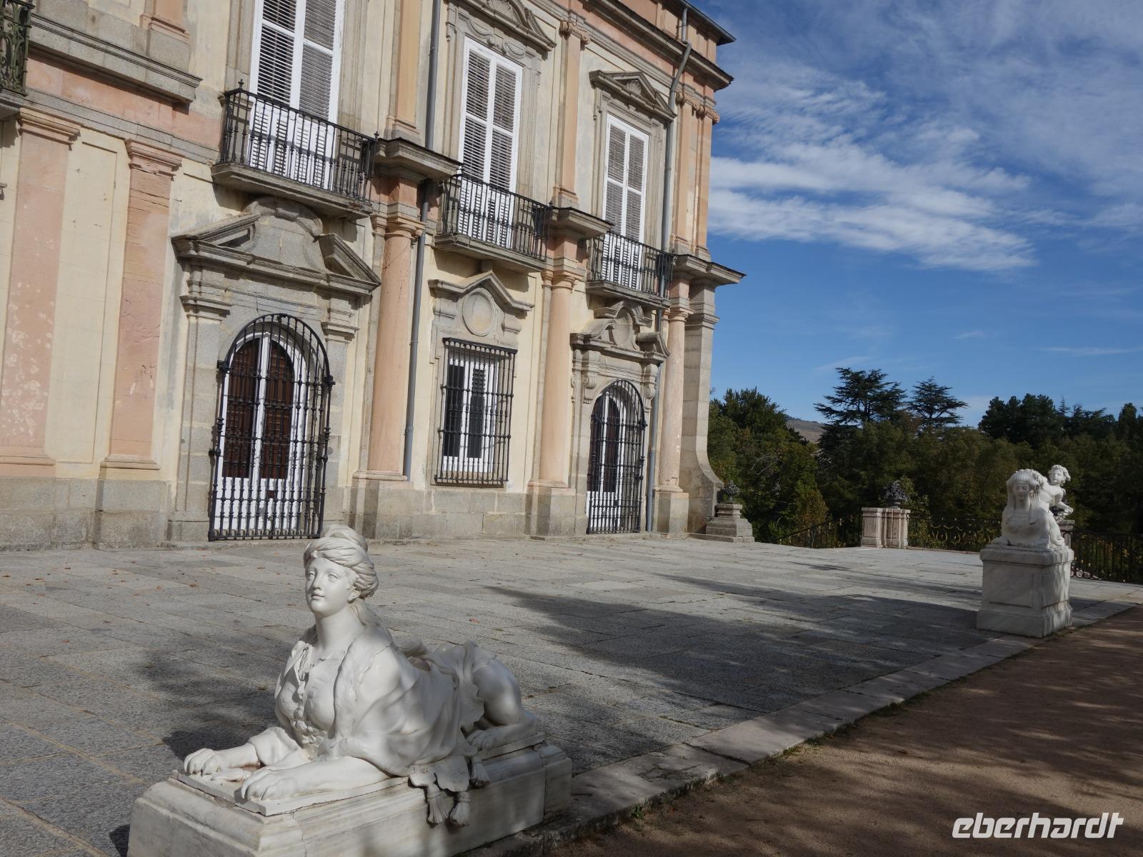 Heute fuhren wir um 9 Uhr früh wieder in das nördliche Umland von Madrid. Wir kennen den Weg schon, da wir hier entlang auch nach Salamanca gefahren sind, aber bevor wir den Tunnel am Berg befuhren, bogen wir links Richtung El Escorial ab. Wir genossen einen Spaziergang durch diese historische Umgebung. Bekannt ist das Städtchen für seine einzigartige Kloster- und Schlossanlage. Der "Königliche Sitz des Sankt Laurentius von El Escorial" gilt als größter Renaissancebau der Welt und wirkt aufgrund einer eher nüchternen Außengestaltung nicht wie ein typischer Palast. Zu der pompös großen Anlage gehören eine Kirche, ein Kloster, der eigentliche Königspalast, eine Schule und eine Bibliothek. Phillip der II. wollte der Welt damals zeigen, wie groß seine Macht war, da man dieses Schloss schon von weit her und auf dem Weg von Madrid gut bestaunen konnte.