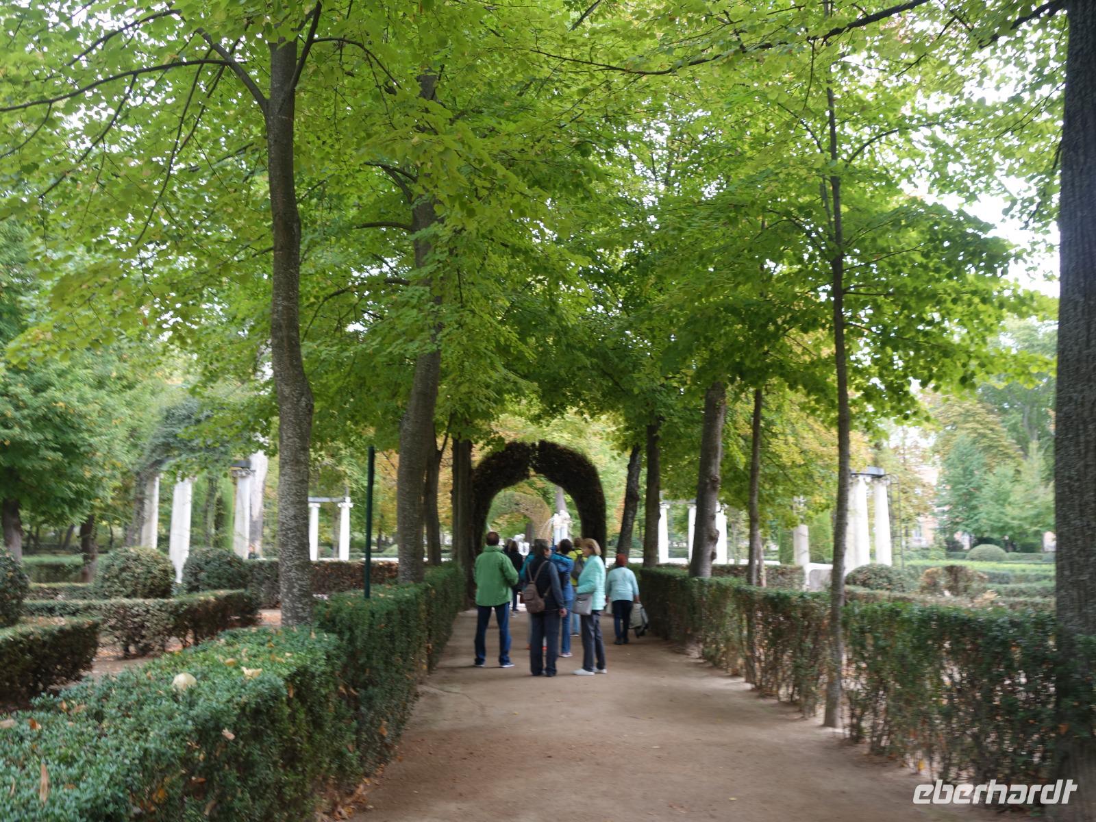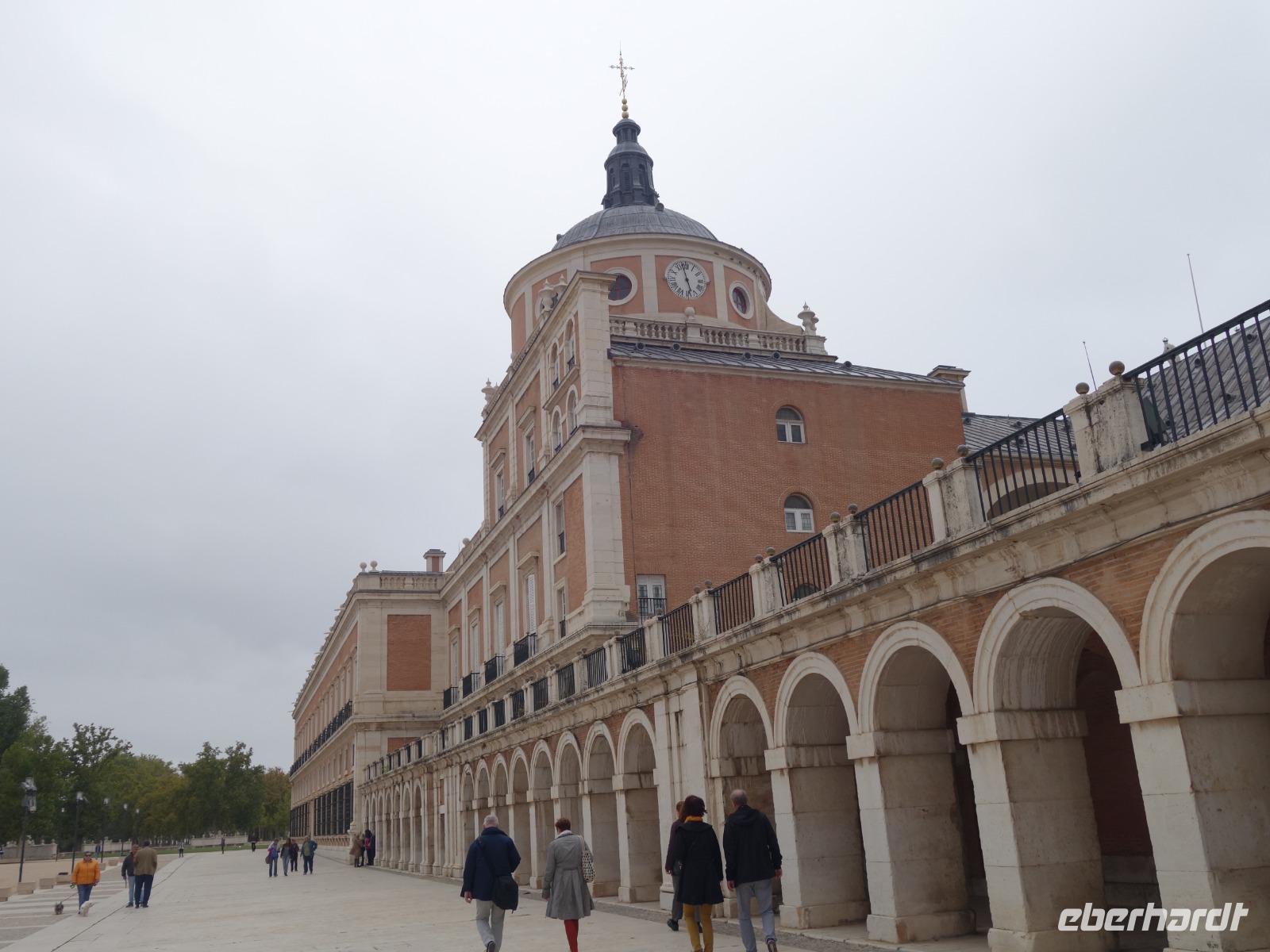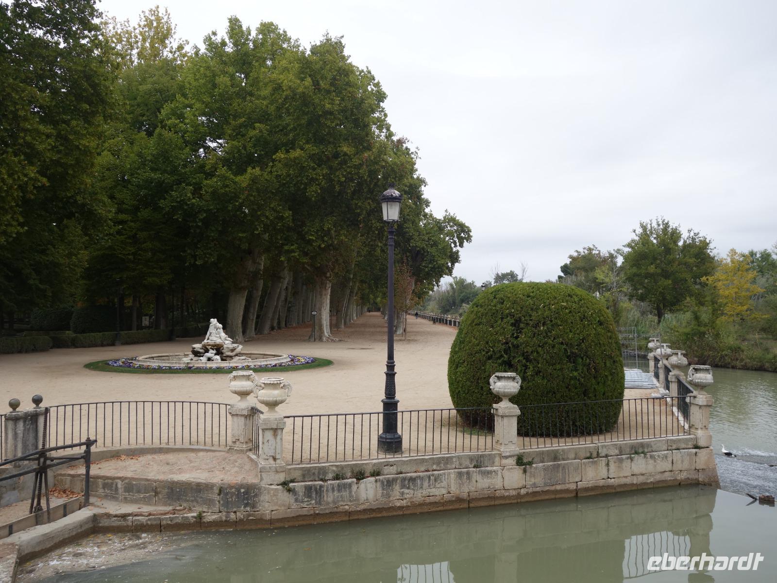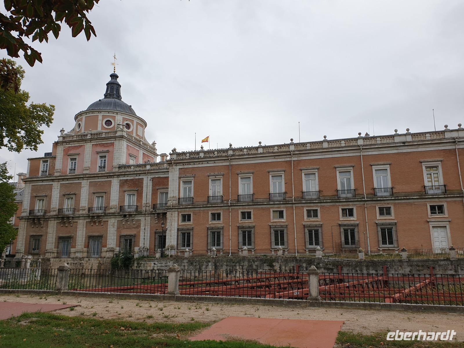 Aranjuez liegt idyllisch in einem bewaldeten Tal. Der berühmte Anziehungspunkt der Stadt ist die ehemalige Sommerresidenz der spanischen Könige, welche die heißen Monate des Jahres inmitten einer weitläufigen und malerisch bepflanzten Gartenanlage genossen. Der Palacio Real gilt auch aufgrund seiner Lage an einer Biegung des Flusses Tajo und der Kombination verschiedener Baustile als eindrucksvolle Sehenswürdigkeit. Als wir fertig waren, besichtigen wir draussen den Garten und den Fluss Tajo, der hier weiter Richtung Portugal und Lissabon fliesst.
