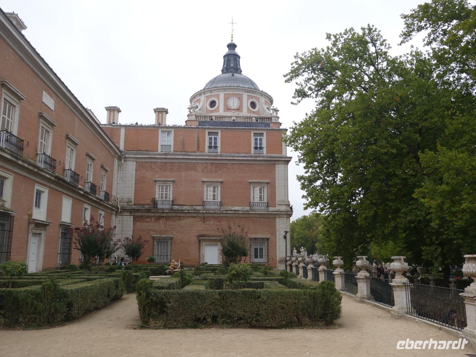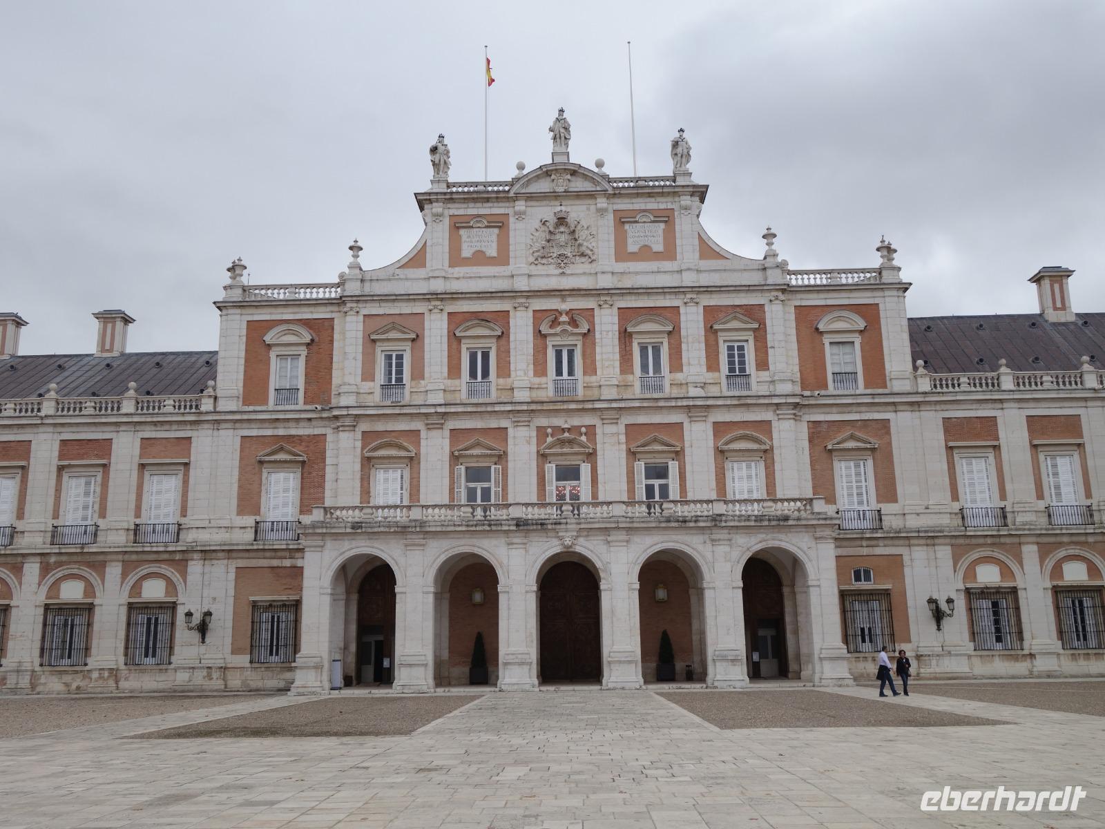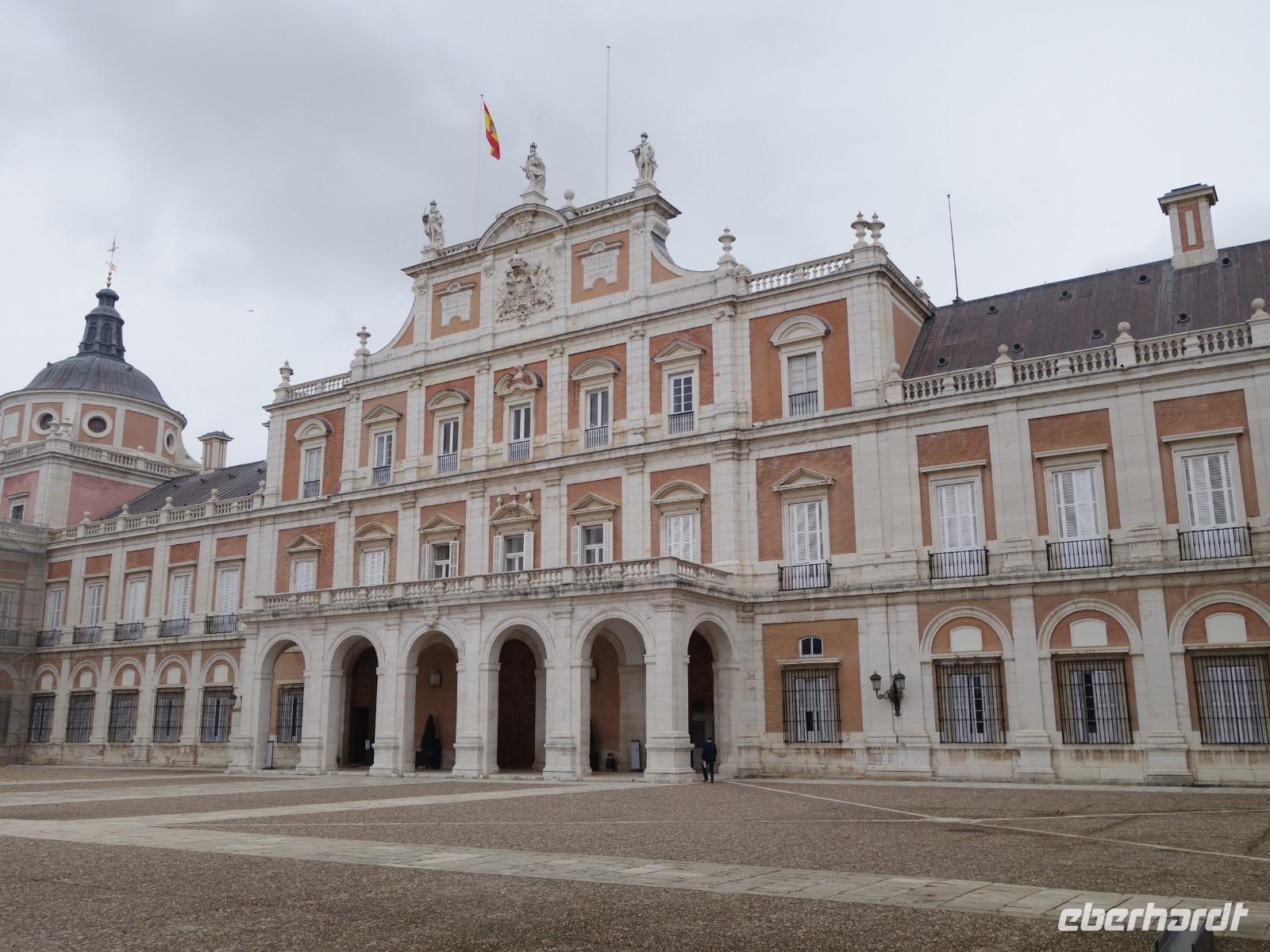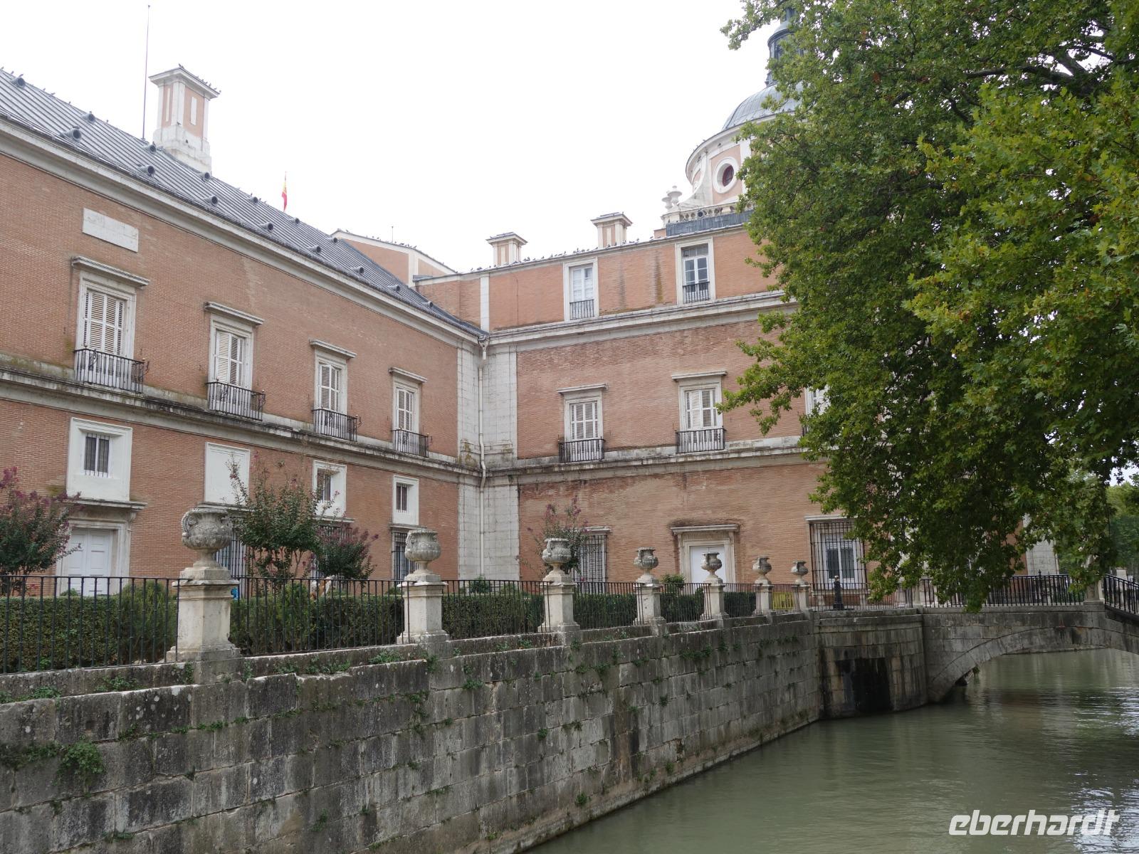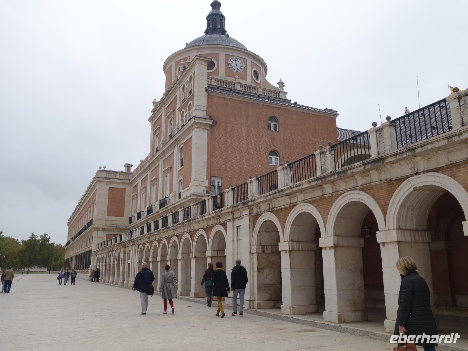 Aranjuez liegt idyllisch in einem bewaldeten Tal. Der berühmte Anziehungspunkt der Stadt ist die ehemalige Sommerresidenz der spanischen Könige, welche die heißen Monate des Jahres inmitten einer weitläufigen und malerisch bepflanzten Gartenanlage genossen. Der Palacio Real gilt auch aufgrund seiner Lage an einer Biegung des Flusses Tajo und der Kombination verschiedener Baustile als eindrucksvolle Sehenswürdigkeit. Als wir fertig waren, besichtigen wir draussen den Garten und den Fluss Tajo, der hier weiter Richtung Portugal und Lissabon fliesst.