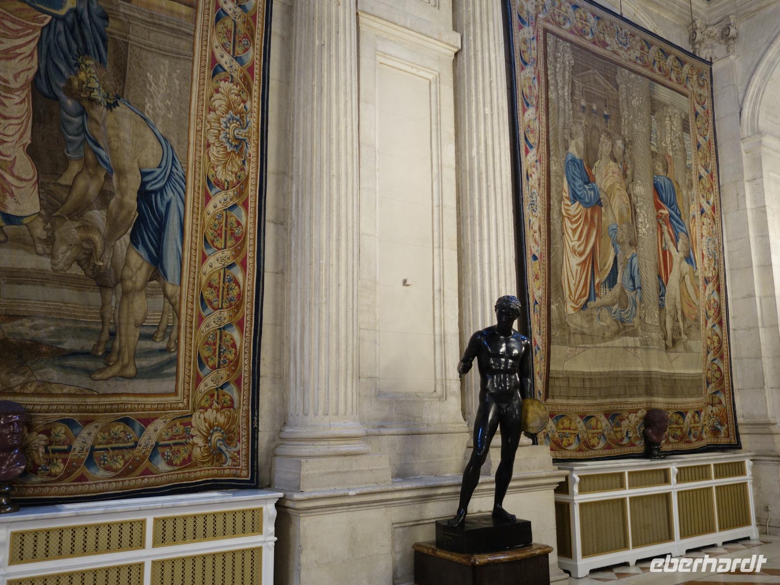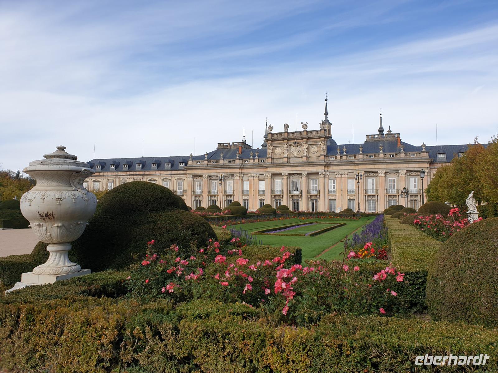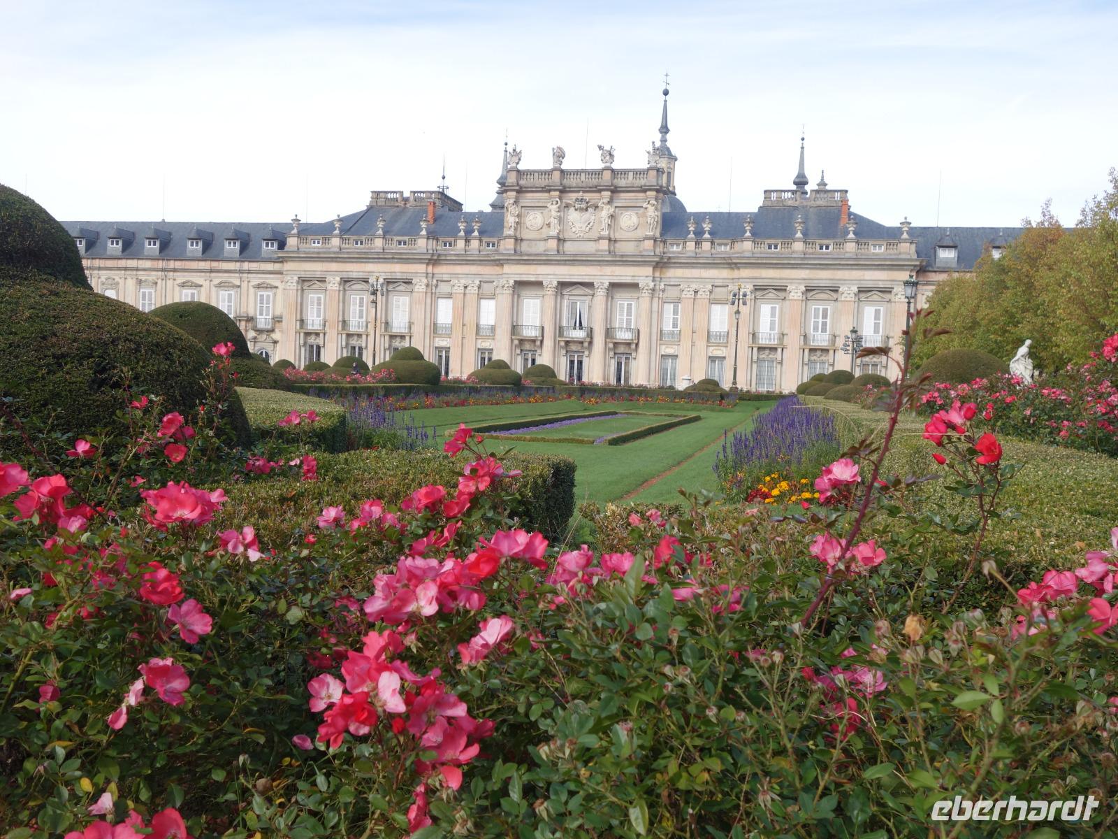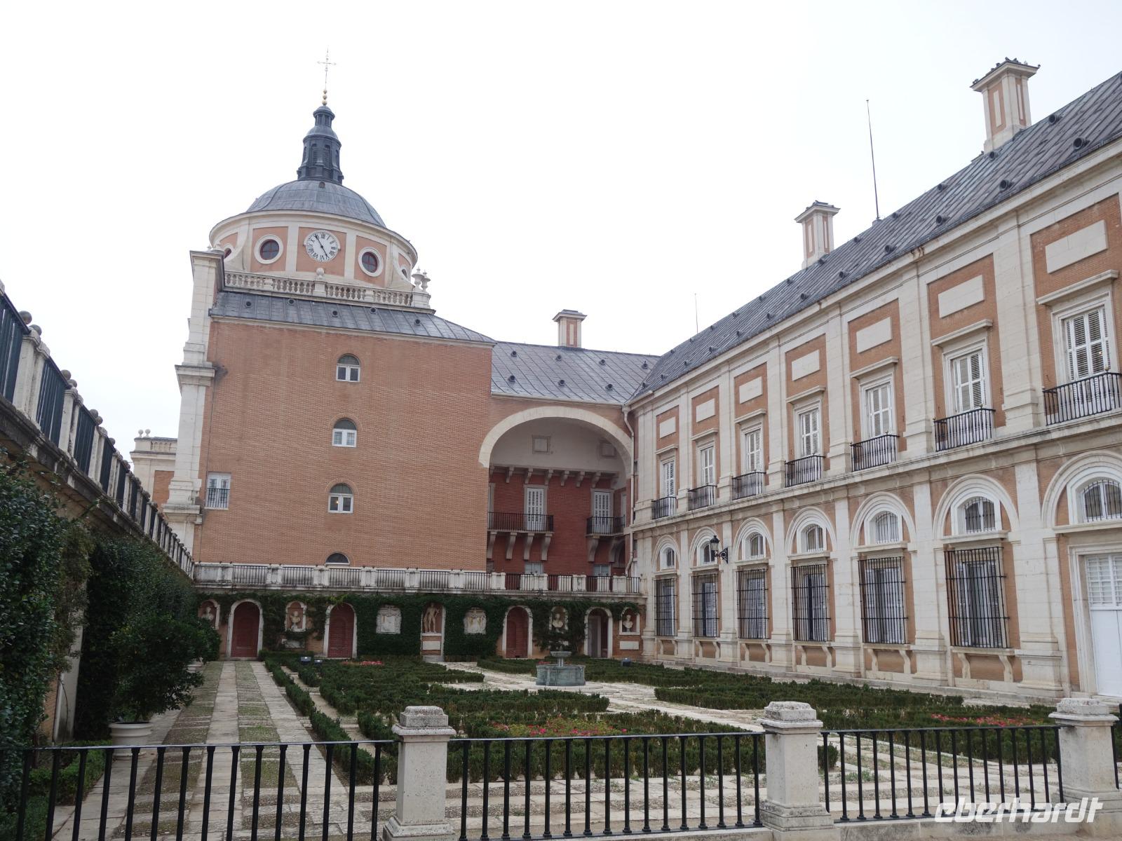 Aranjuez liegt idyllisch in einem bewaldeten Tal. Der berühmte Anziehungspunkt der Stadt ist die ehemalige Sommerresidenz der spanischen Könige, welche die heißen Monate des Jahres inmitten einer weitläufigen und malerisch bepflanzten Gartenanlage genossen. Der Palacio Real gilt auch aufgrund seiner Lage an einer Biegung des Flusses Tajo und der Kombination verschiedener Baustile als eindrucksvolle Sehenswürdigkeit. Als wir fertig waren, besichtigen wir draussen den Garten und den Fluss Tajo, der hier weiter Richtung Portugal und Lissabon fliesst.