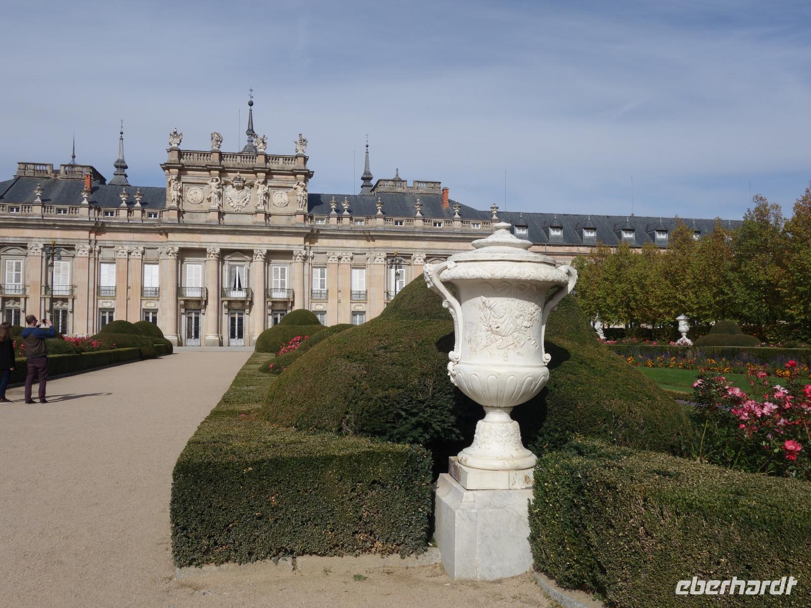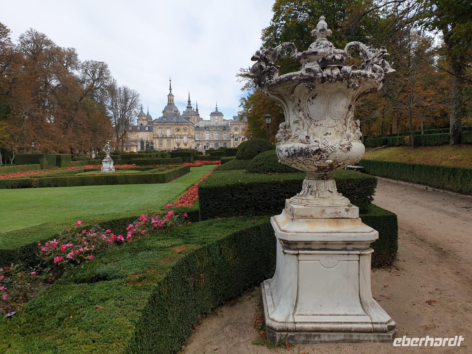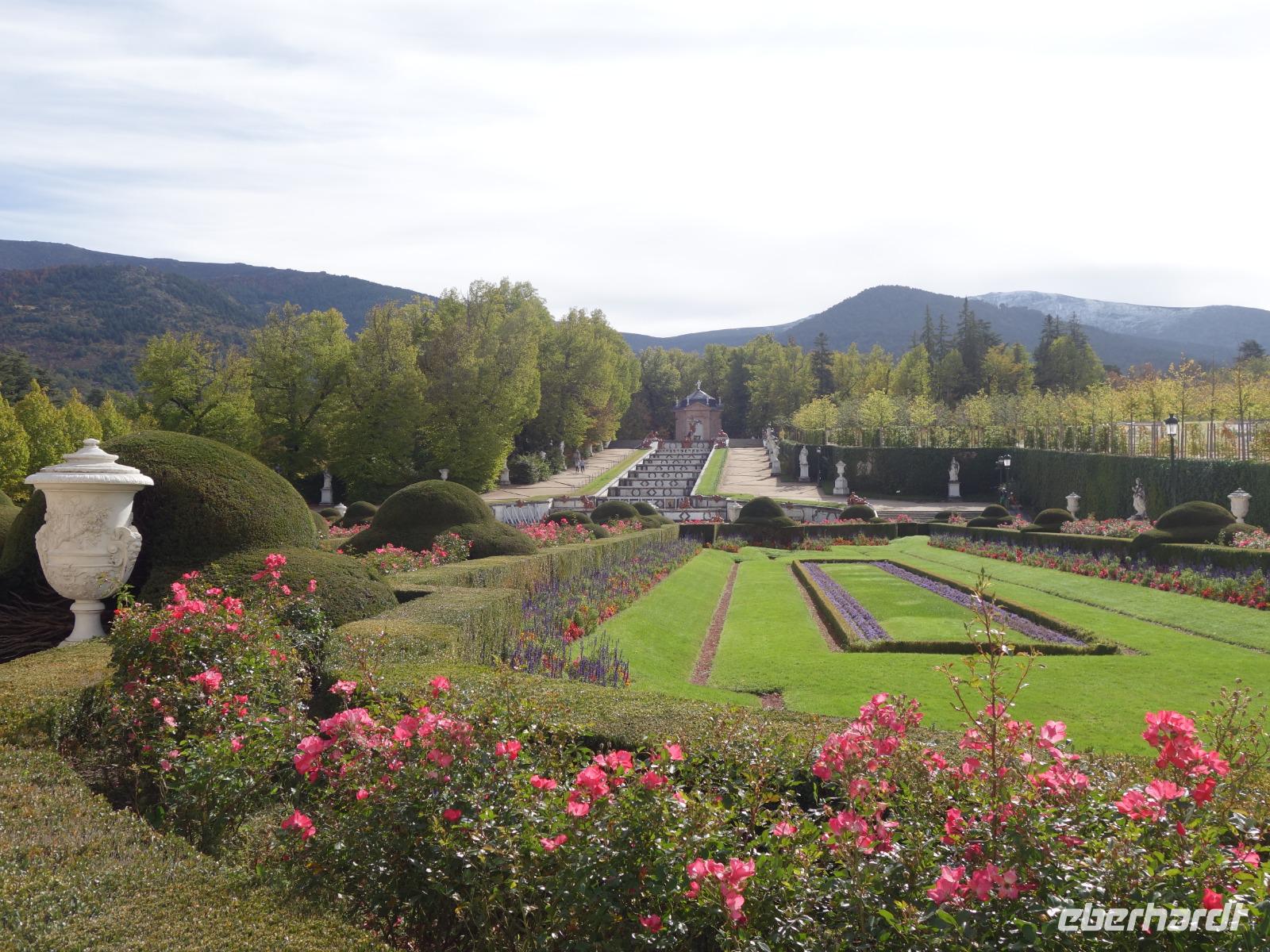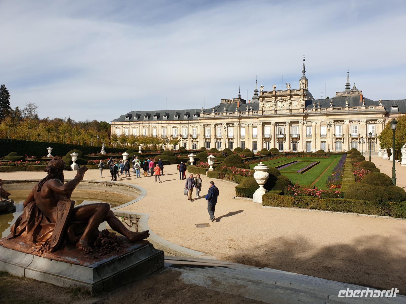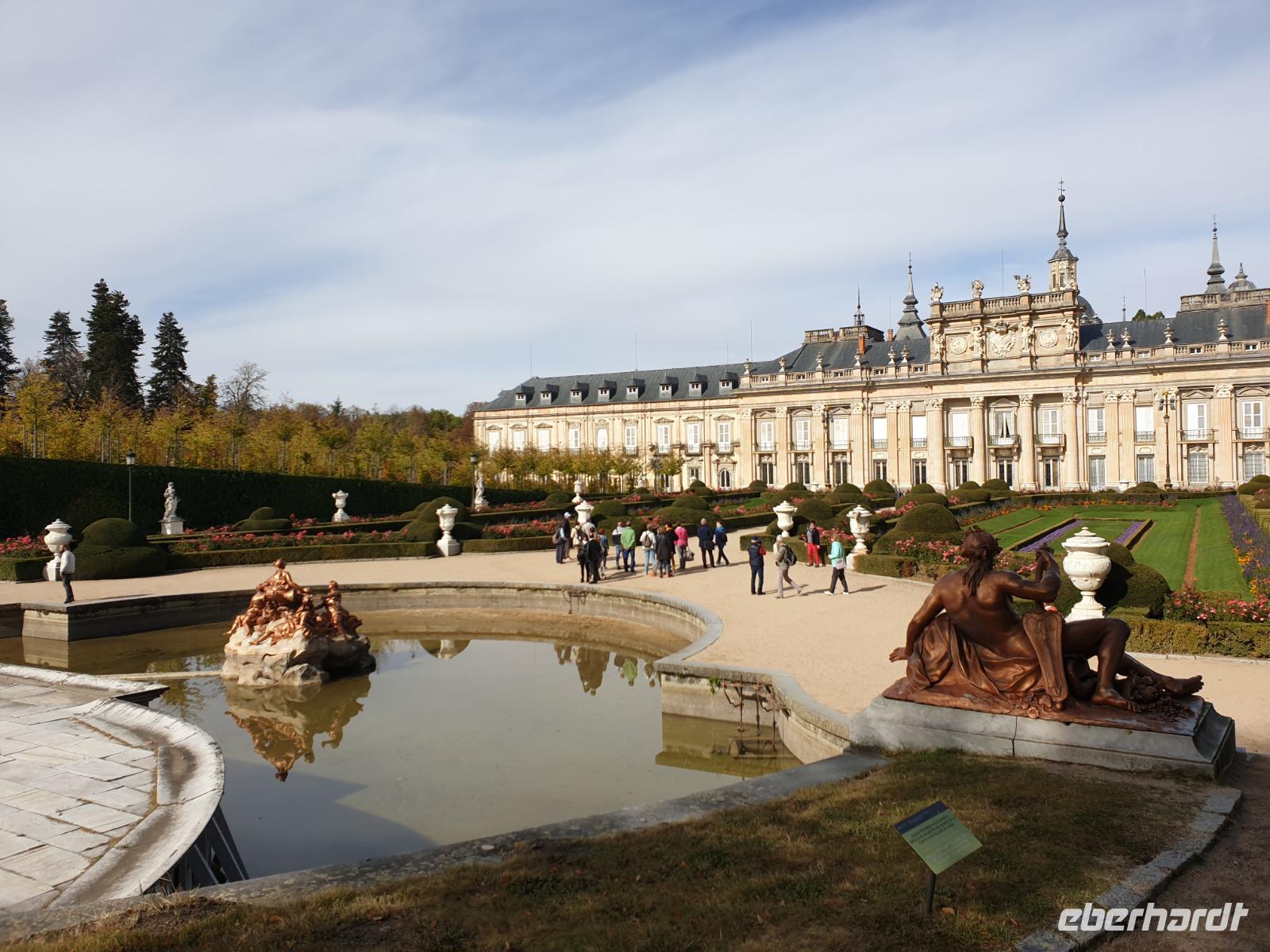 Nach dem Frühstück waren La Granja de San Ildenfonso und Segovia die Ziele unseres ganzentägigen Ausfluges. Wir fuhren in das nördliche Umland von Madrid. Zunächst fuhren wir in fuhren zum Schloss La Granja nur 15 Minuten entfernt von Segovia. Hier spazieren wir durch den wunderschönen Schlosspark und genießen die historische Umgebung.