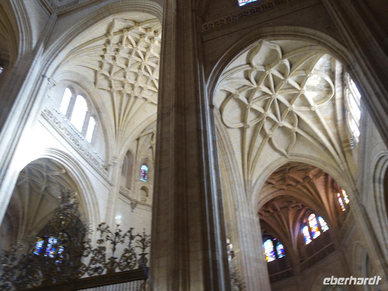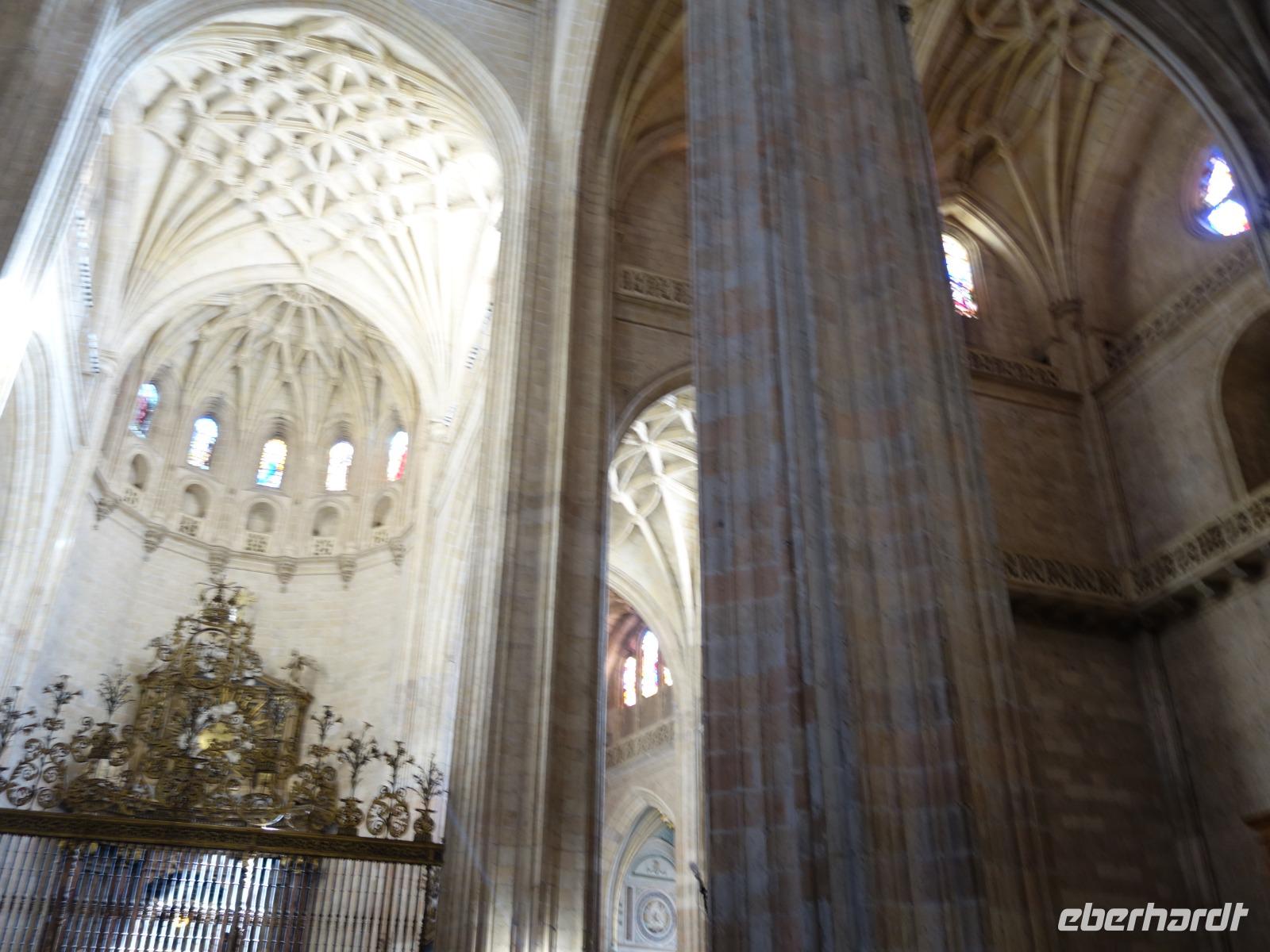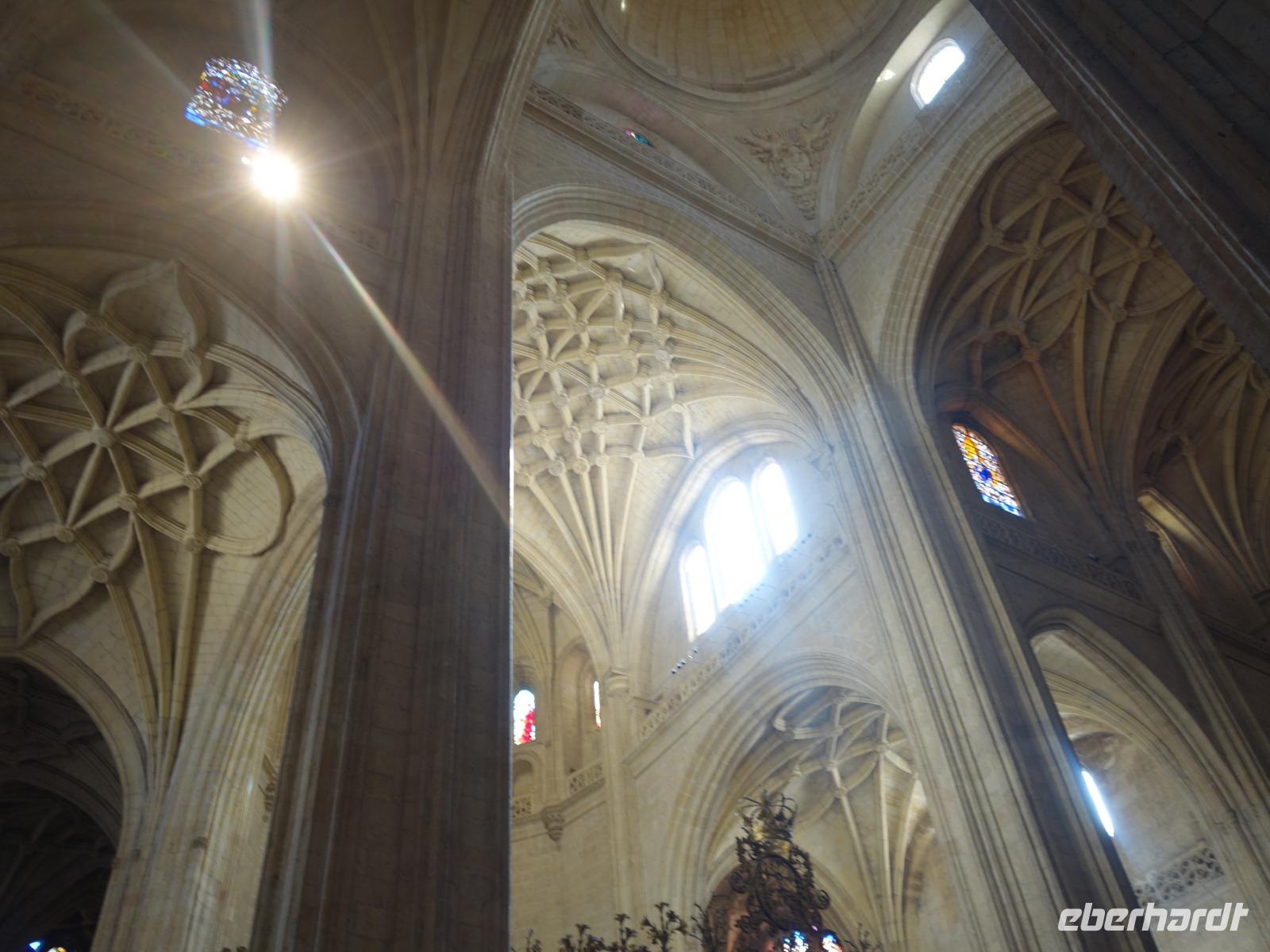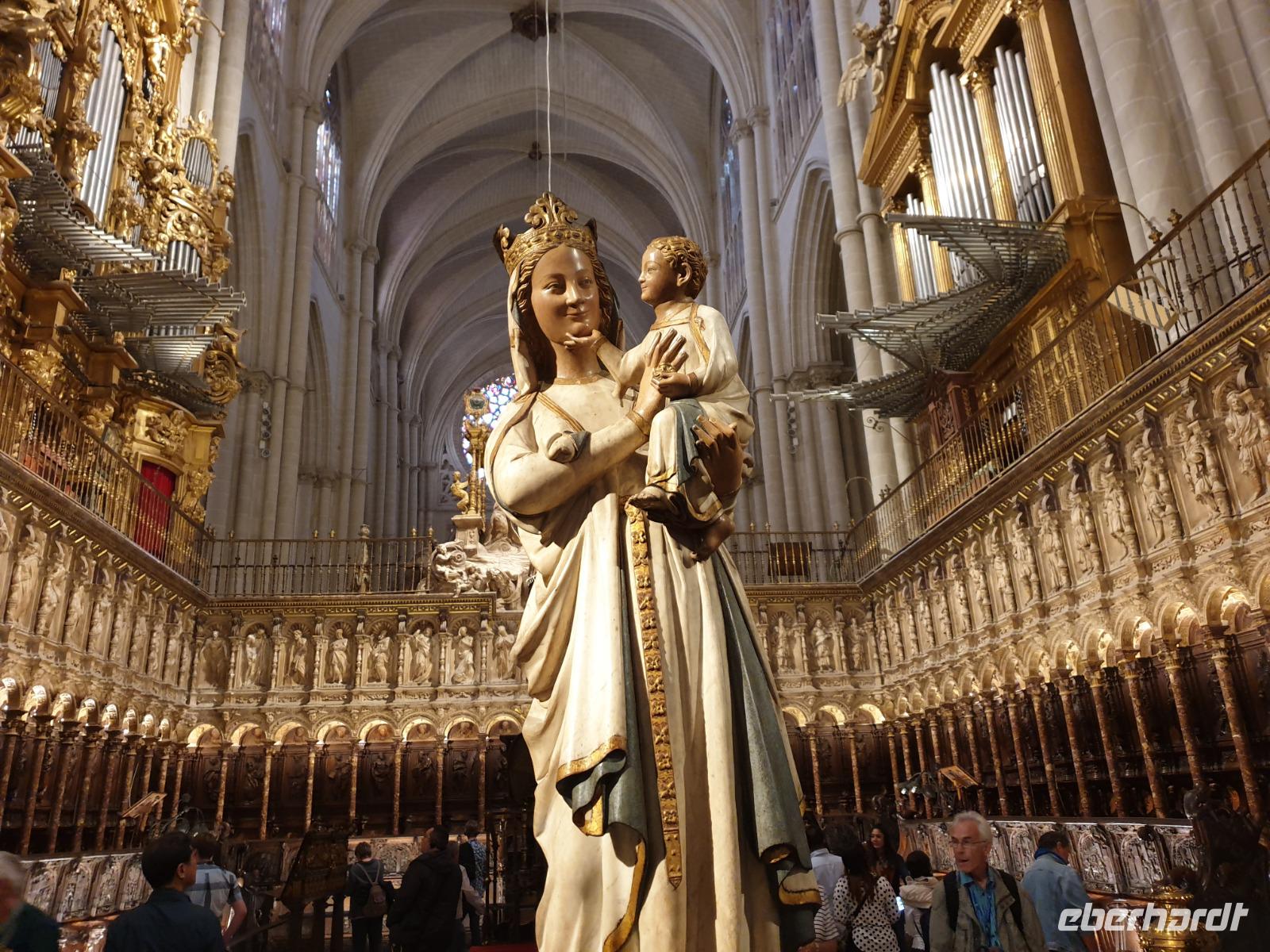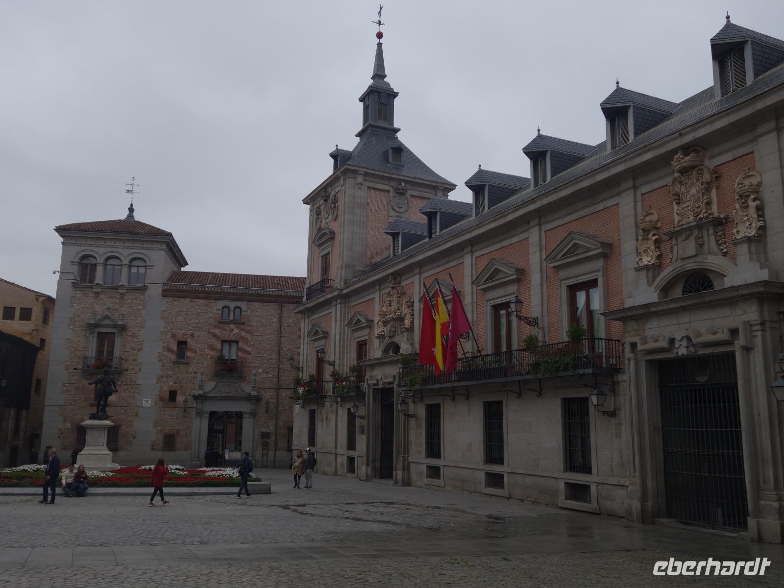 Mittags fahren Sie weiter in die Stadt Segovia, die insbesondere für ihre zahlreichen Kirchen aus romanischer Zeit Berühmtheit genießt. Wir spazieren durch Segovia mit den Bergen im Hintergrund. Wir besuchen die Alcazar oder Befestigung. Zu Beginn eines jeden Walt-Disney-Films ist am Anfang ein Schloss zu sehen. Walt Disney hat sich dafür von zwei Schlössern auf der Welt inspirieren lassen - dem bayrischen Schloss Neunschwanstein und dem Alcazar von Segovia, welche uns sehr gut gefallen hat mit ihren Türmen und verschieden Räumen und Dächern. Vorhin haben wir auch die Kathedrale gesehen, die nicht so groß ist wie die von Toledo, aber auch wunderschön. Die Sonne scheint und ist herrlich, aber in der Kathedrale und ihrem Kloster ist angenehmen kühl. Segovia gefällt uns sehr, aber als besonderer Höhepunkt gilt das über 28 Meter hohe antike römische Aquädukt. Majestätisch erhebt sich dieser eindrucksvolle Bau inmitten der Stadt und durchläuft diese auf 700 Meter Länge. Zum Mittagessen konnte man die berühmte Spezialität Cochinillo (Ferkel) essen. Andere von uns aßen ein Menü mit Vorspeise, Hauptspeise, Brot, Wein, Nachtisch und Kaffee... für nur 11 Euro! Und es hat gut geschmeckt. Am Nachmittag kehrten wir zurück nach Madrid und genossen auf der Rückfahrt den Blick auf die frische schneebedeckten Berge. Zurück nach Madrid fuhren wir über die Berge und checkten in unserem, am Rand des Zentrums von Madrid gelegenen, 4-Sterne-Hotel Ganivet in Puerta de Toledo ein, wo wir die nächsten 4 Nächte schlafen werden.