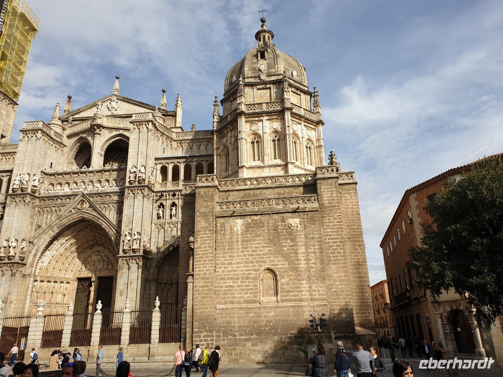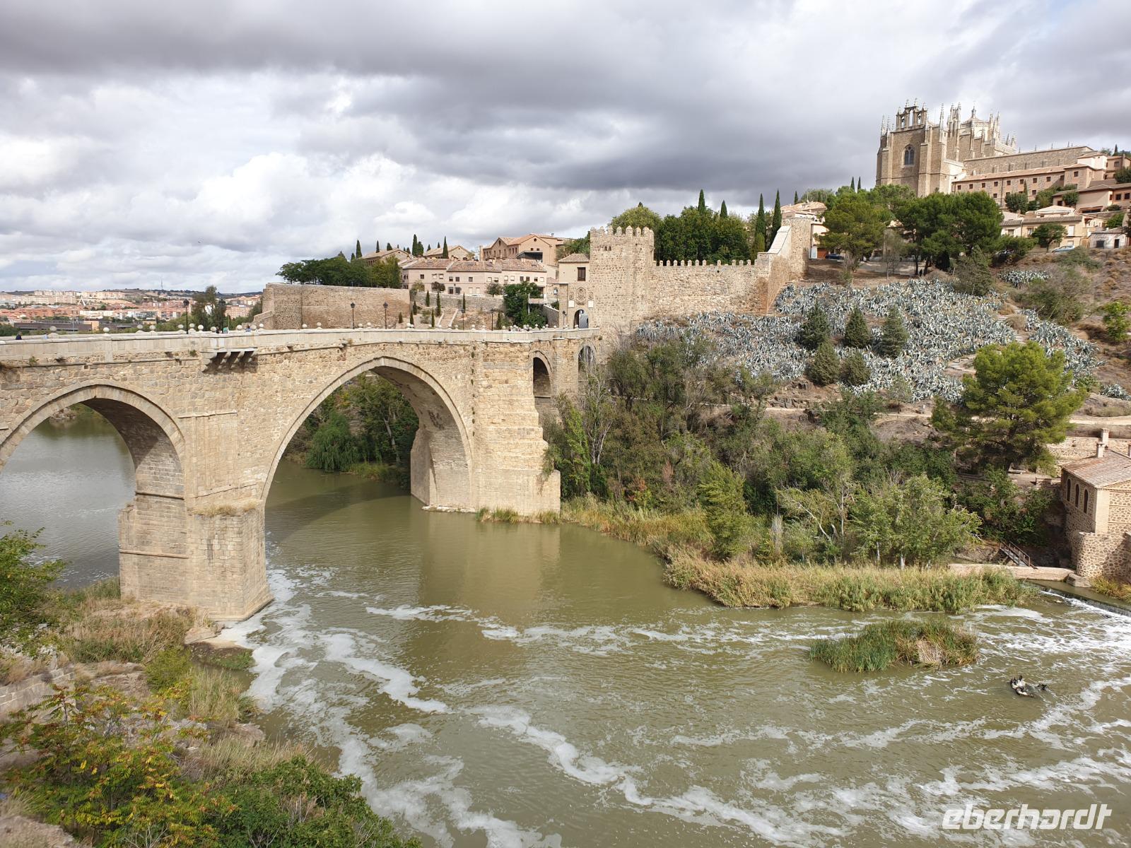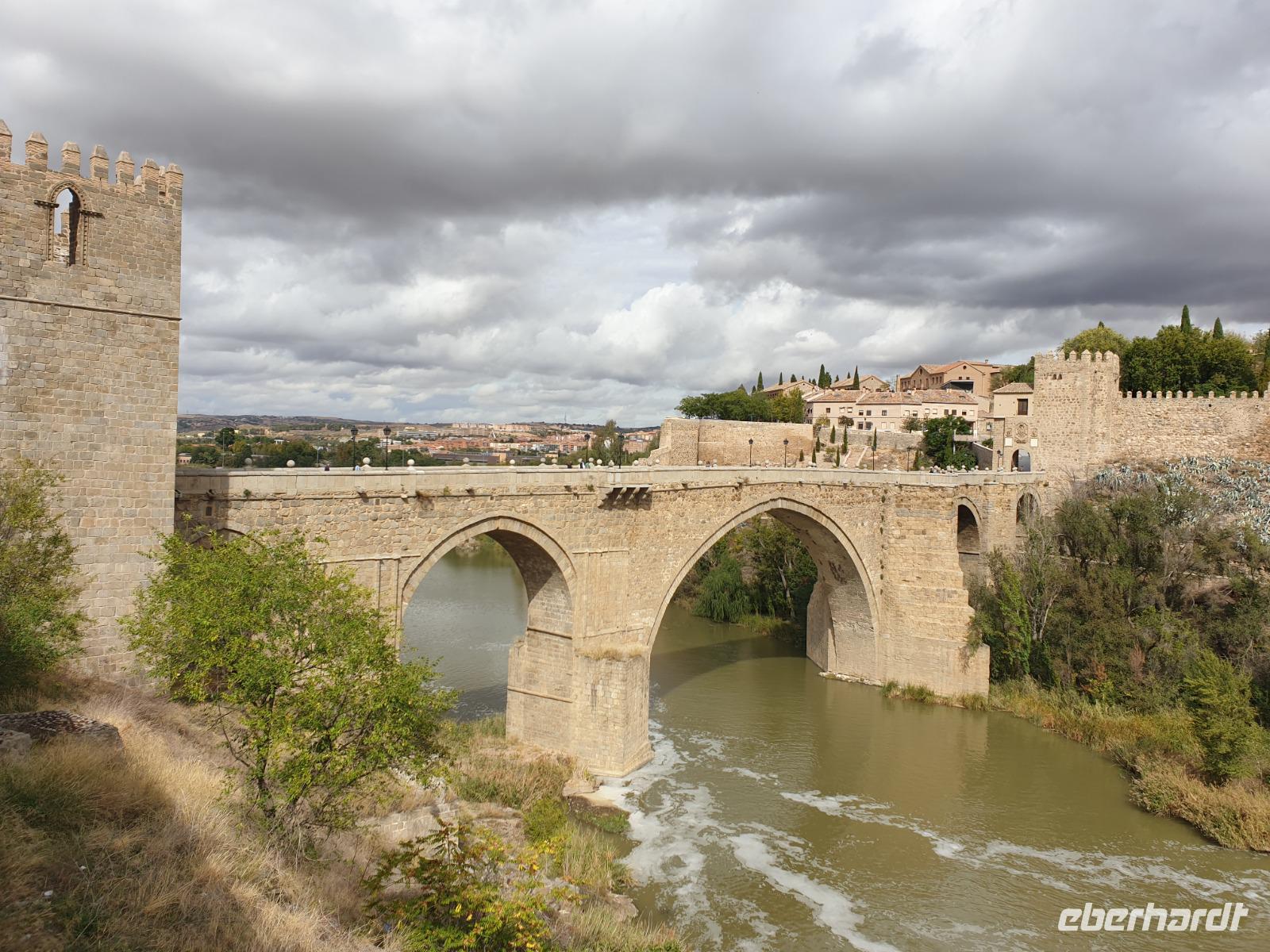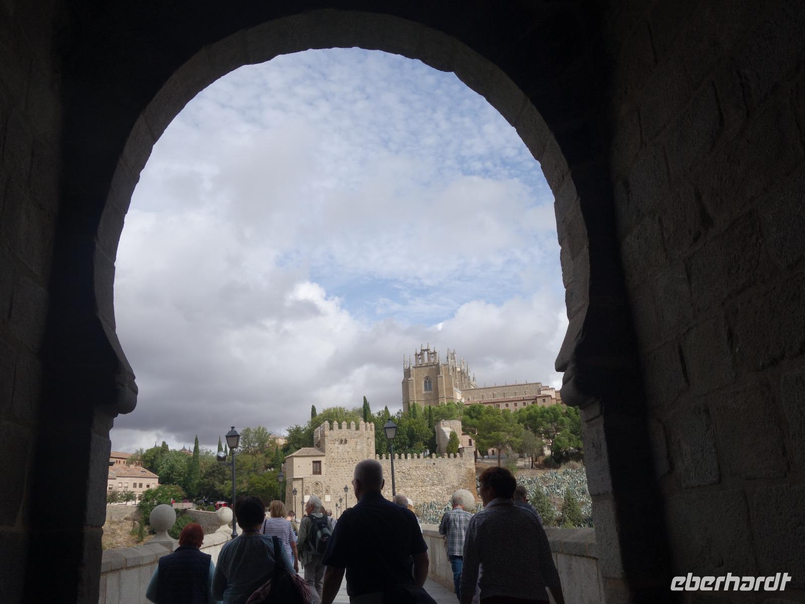 Im Anschluss an die Besichtigung fahren wir weiter zur eindrucksvollen Stadt Toledo. Wir freuen uns alle darauf. Viele haben viel über Toledo und El Greco gelesen und wollen dies endlich auch vor Ort selbst erkunden. Die prächtige historische Metropole thront hoch über dem Ufer des Tajo, der sich an dieser Stelle tief in das Hochland eingeschnitten hat. Um diesen einmaligen Blick zu haben, fuhren wir erstmal außerhalb Toledos, wo wir diesen Panorama Blick genießen konnten.