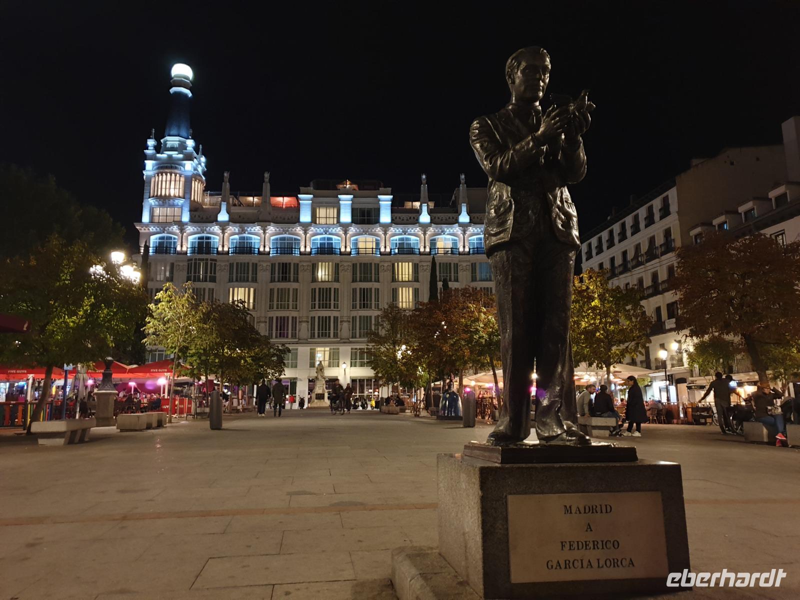Gemeinsam unternahmen wir zu Fuß einen Stadtrundgang. Es ging Richtung Plaza de España, wo sich das Denkmal von dem berühmten Schriftsteller Cervantes befindet. Wir wollten heute gar nicht viel mehr sehen, da wir noch einen richtigen Stadtrundgang morgen mit Petra haben würden, aber einen ersten Eindruck von meiner Heimat wollte ich meinen Gästen schon heute geben. Heute laufen wir vom Hotel bis die Gran Via und Plaza de Espana wo wir wieder Tapas zum Abendessen aßen. Nun konnten wir den Abend in einer typischen Tapas-Bar mit spanischem Ambiente genießen und den Tag in Ruhe ausklingen lassen. Einige wussten zunächst noch nicht, was Tapas sind, aber man lernte es schnell. Und es war wie immer lecker. Es war ein schöner erster Tag in der spanischen Hauptstadt Madrid und wir hatten schon heute die Gelegenheit, erste Eindrücke dieser wunderbar pulsierenden Metropole zu erhaschen und die Umgebung des Hotels im Zentrum der Stadt zu erkunden.