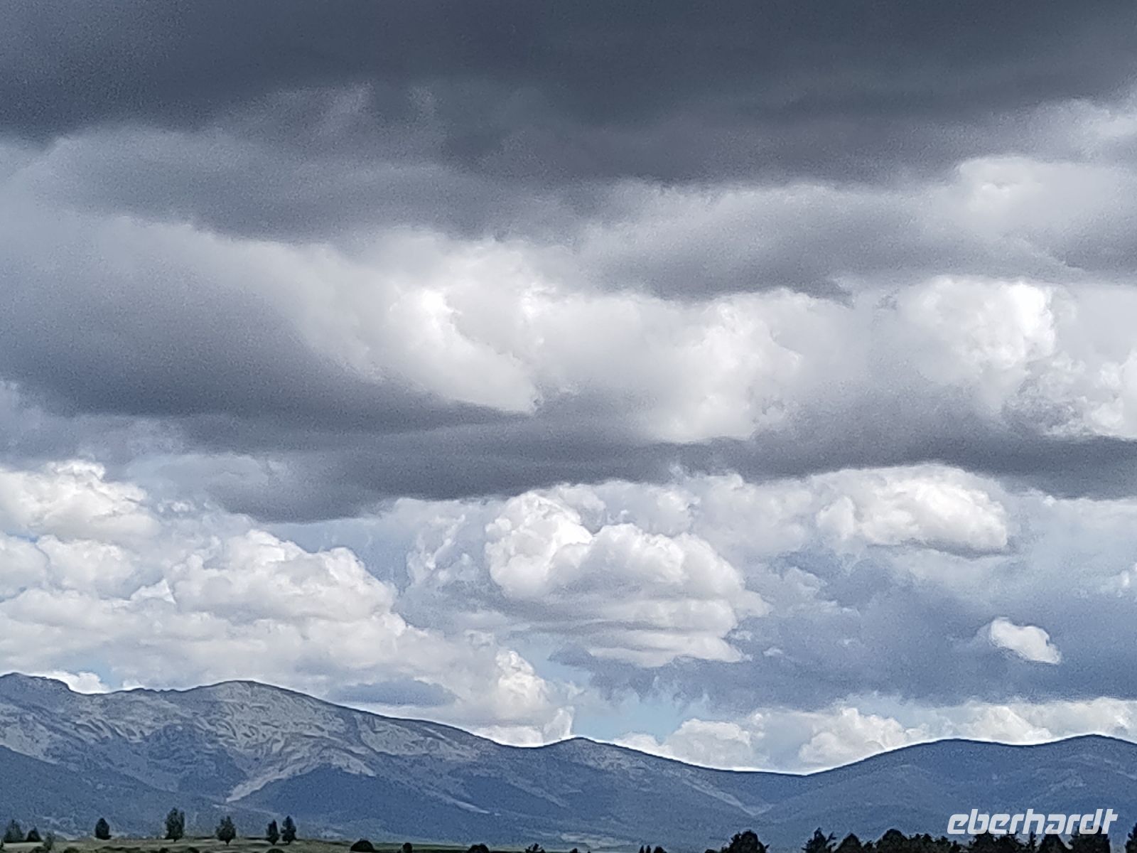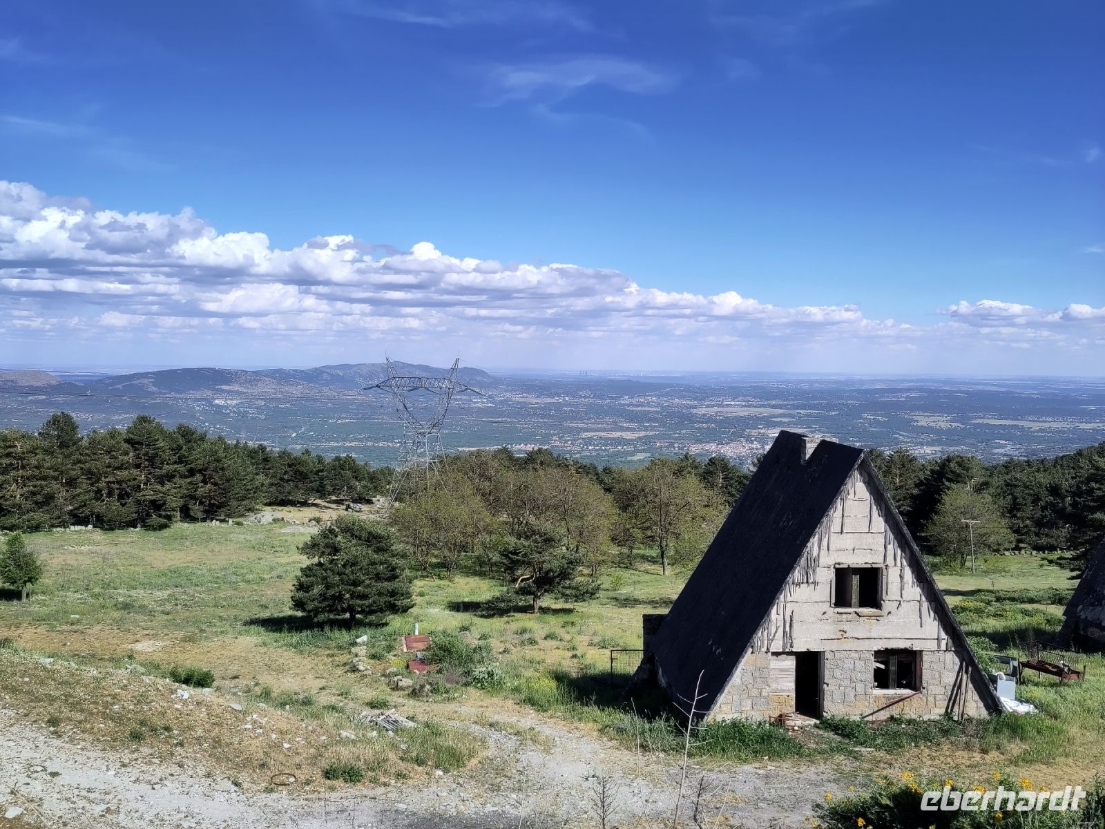 Auf geht's in Richtung Salamanca. Ich bitte Chema, nicht durch den Tunnel, sondern über den Alto de León (Höhe von León oder Höhe des Löwen) zu fahren. Dort, auf 1511 Metern Höhe, legen wir einen ca. zwanzigminütigen Stopp ein. Die Sierra de Guadarrama (< arab. wadi ar-raml, Sandfluss) ist Naherholungsgebiet für die Madrilenen. Hier kann man im Sommer wandern und im Winter - vorausgesetzt, es schneit und taut nicht zu schnell - Ski fahren. Diesen Winter war es aber zu trocken und viel zu früh viel zu heiß, keine Spur von Schnee.