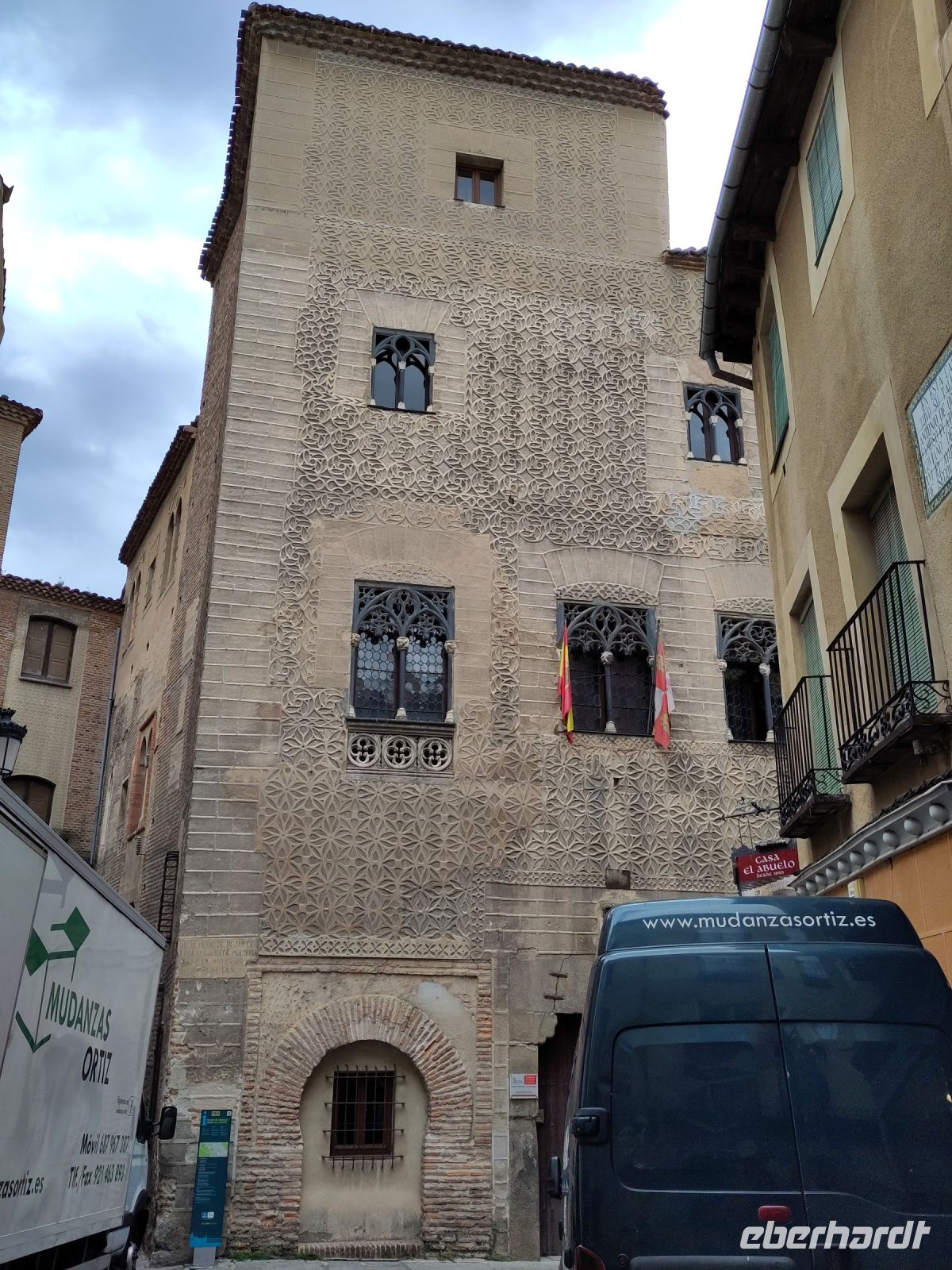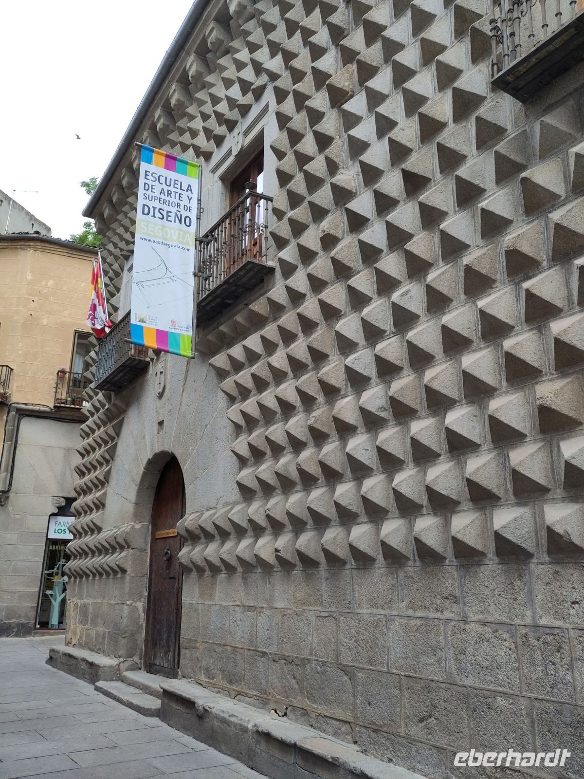 Am ehemaligen Stadttor, wo ein im Jugendstil errichtetes Haus steigt, zeigte David uns die Casa de los Picos - das Spitzenhaus. Seine abweisend wirkende Straßenfront ist mit 617 pyramidenförmigen Granitspitzen „verziert“. Die Legende besagt, dass der Besitzer, ein reicher Händler, diese Fassadengestaltung wählte, weil sein Haus immer als das „Haus des Juden“ bezeichnet wurde, was ihn gestört habe, weshalb er es so aufwendig umbauen ließ, damit die Leute sein Haus anders bezeichneten. Tatsächlich war die Bauweise aber wohl gewählt, um direkt hinter dem Stadttor gelegen, Macht und Stärke zu demonstrieren. Eine solche Investition wie die Bearbeitung von 617 harten Granitsteinen für das unsichere Ergebnis, dass das aus einen neuen Namen im Volksmund erhielte, ist doch reichlich fragwürdig.