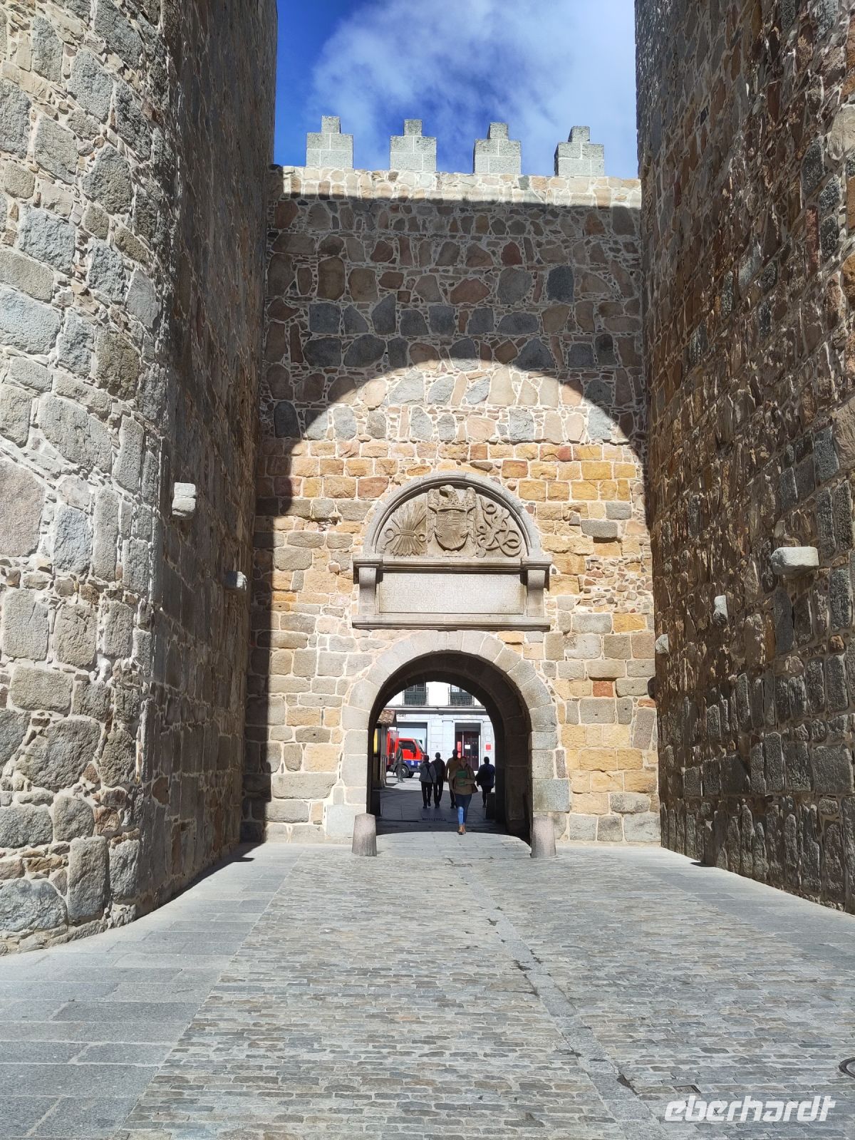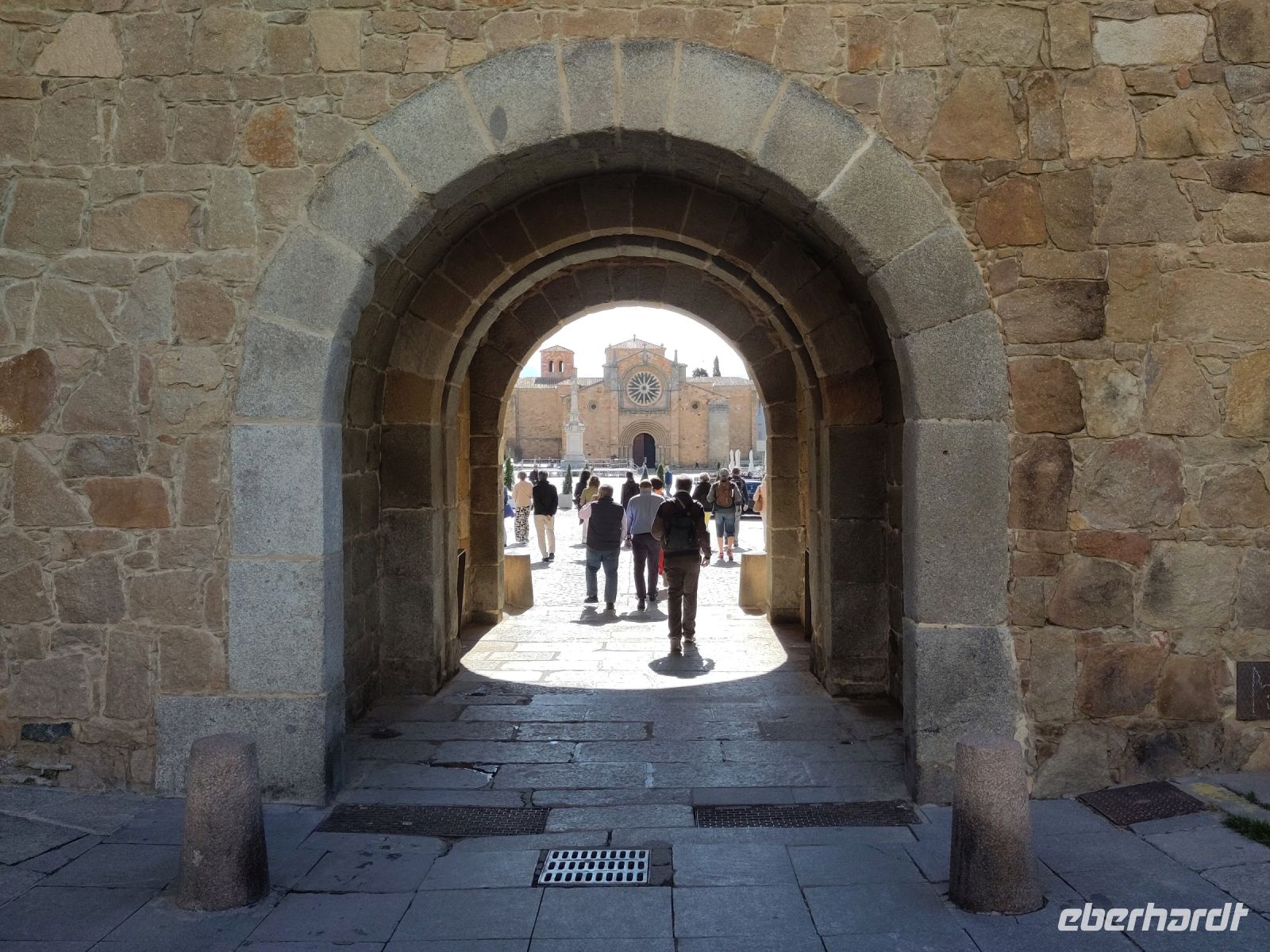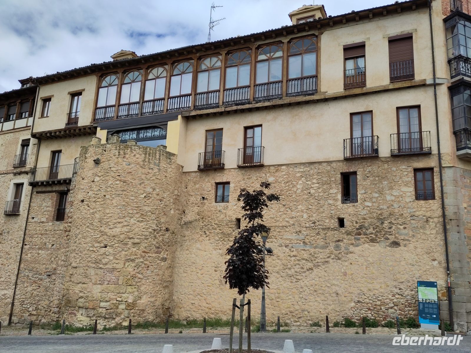 Durch das gegenüber der Klosterkirche liegende Stadttor verließen wir die Altstadt um extramuros in deren südwestliches Umland zu schauen. Am Palacio de los Dávila (< d‘ Ávila) betraten wir die Stadt wieder. David erzählte uns, dass Pedro Dávila aus seinem Palast, der direkt an der Mauer lag, letztere durchbrechen ließ, um über sein eigenes Stadttor zu verfügen. Er wollte damit verhindern, nach den Schließzeiten des Tores die Nacht vor den Mauern der Stadt verbringen zu müssen.