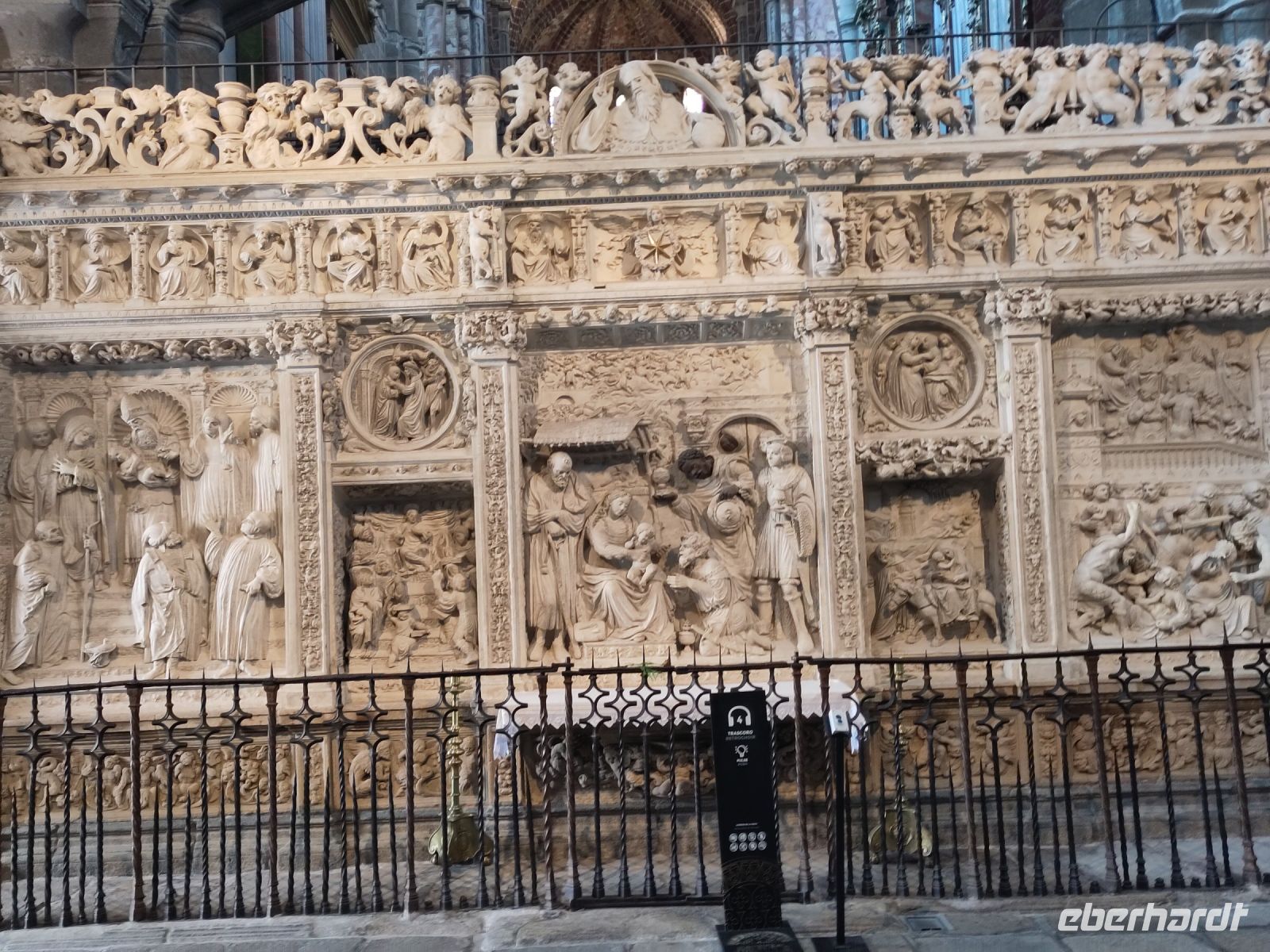 In der Kathedrale sahen wir den Chor, Zeitzeugnis des Eroberungskrieges von Granada. Das Chorgestühl zeigt nicht, wie üblich biblische Szenen (meist neues und altes Testament), sondern die Eroberung von Burgen, Dörfern und Städten des Königreichs Granada.