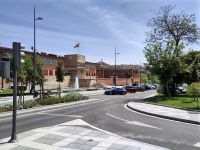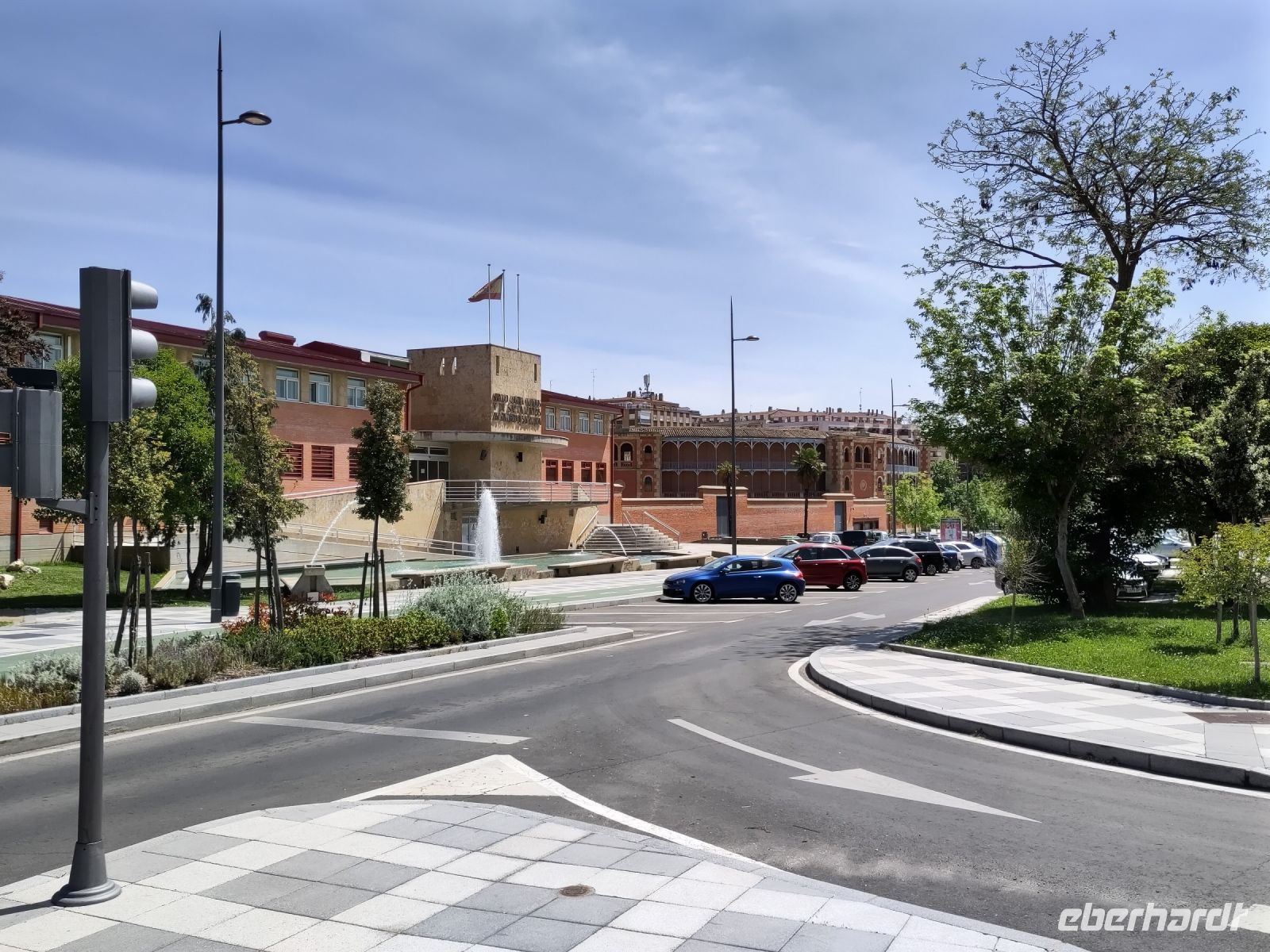 Eine Viertelstunde von unserem Etappenziel entfernt halten wir am Eingang eines Möbellagers, mitten in der Steppe an der Grenze der Mancha und der Comunidad de Madrid. Einen halben Kilometer entfernt liegt ein großes Gefängnis, Chema schildert seiner Firma das Problem, eine ad hoc-Reparatur ist nicht möglich. Thomas organisiert uns Taxis. Wir benötigen vier, bekommen aber nur drei, einige müssen also mit Chema in der Steppe warten. Außerdem nimmt Thomas Kontakt mit dem Palast von Aranjuez auf, denn wir haben einen Time Slot, der zwar nicht minutengenau wie in der Alhambra genommen wird, aber trotzdem im Zweifel durchgesetzt wird. Thomas gelingt es - es ist aber auch heute in Aranjuez nicht viel los - unsere Notlage zu schildern und wir können später erscheinen. Mittlerweile kommt eines der Taxis zurück und holt auch die letzten von uns ab, wir lassen Chema und seinen Bus allein, der uns einen seiner Kollegen nach Aranjuez ruft. Am Folgetag erfahren wir, dass es der Turbo des Busses war.