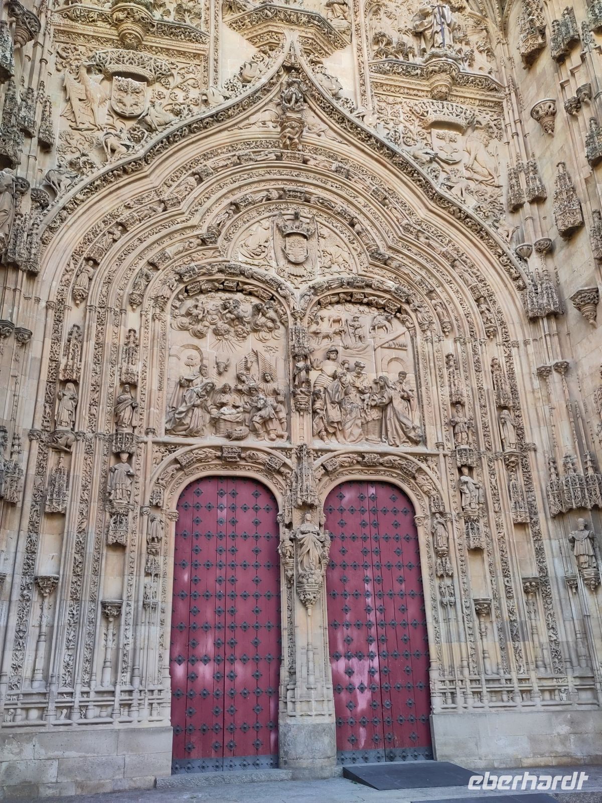Bevor wir die Universität durchlaufen, suchen wir nach Fröschen. Im Grunde genommen sucht man in Salamanca nach _dem_einen_ Frosch. Diesen soll man nicht küssen - im Gegenteil! Heute suchen vor allem Studenten den Frosch, denn die Superstition (der Aberglaube) will, dass, wer den Frosch alleine und ohne Unterstützung findet - auf einer sehr ausgiebig verzierten spätgotisch-frührenaissancistischen Fassade - Glück im Studium hat und ohne Mühe seine Examina besteht. Geradezu antiaufklärerisches Gedankengut an einer der Wissenschaft verpflichteten Einrichtung...