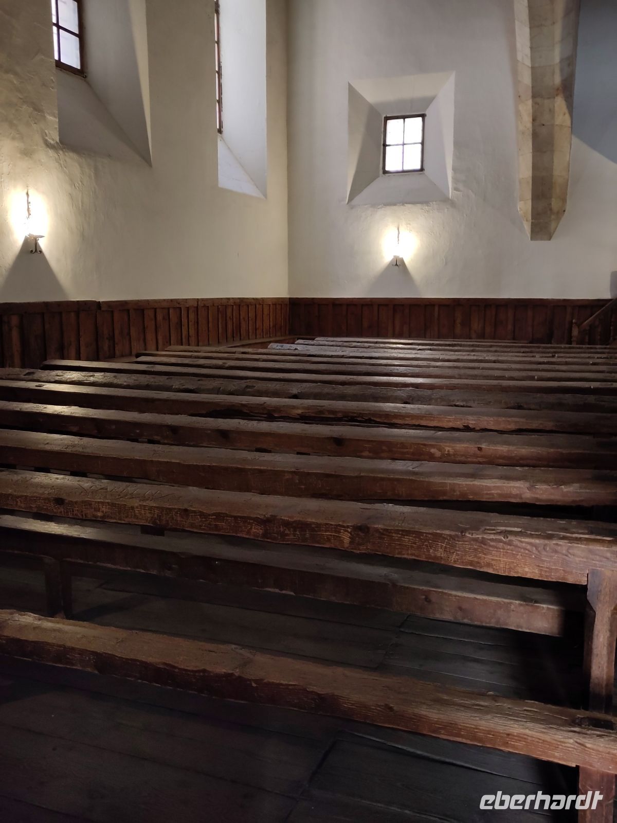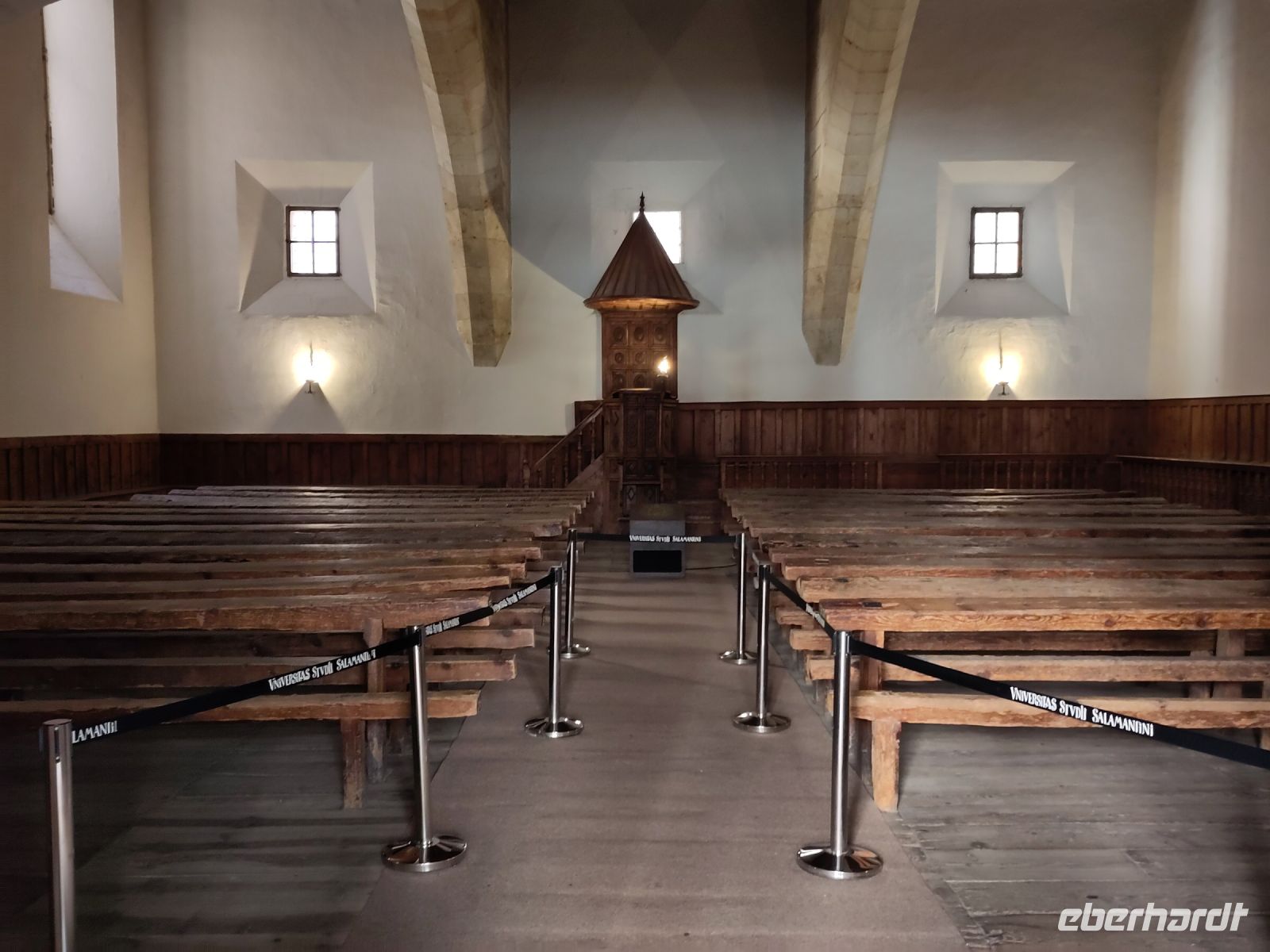 Wir sehen auch den Hörsaal, in dem Fray Luis de León lehrte. Der Augustinermönch hatte Teile der Bibel ins Spanische übersetzt und kam deswegen vor ein Inquisitionsgericht, zudem wurde dem Nachkommen von Konvertiten vorgeworfen zu judaisieren. Als er nach mehreren Jahren Gefängnis wieder zu seinen Studierenden zurückkam, soll er diese gefragt haben: "Wo waren wir gestern stehen geblieben?" (Lat.: "Dicebamus hesterna die - wir sagten am gestrigen Tag").