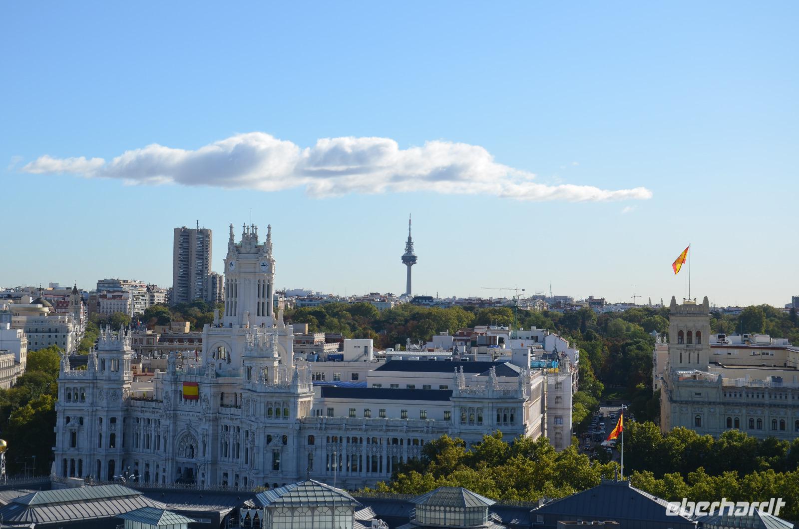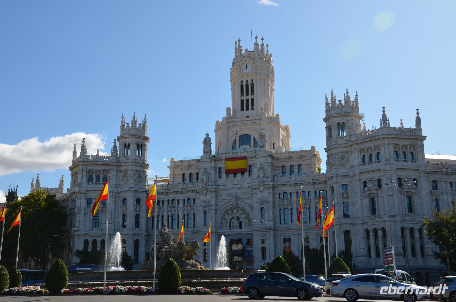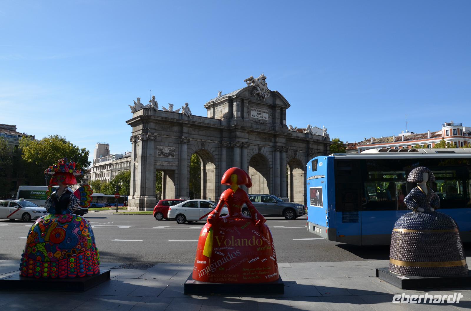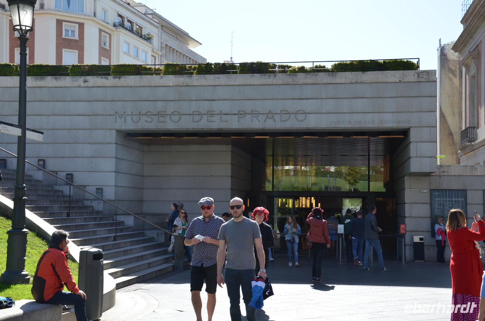 Unser erster Halt befindet sich am „Plaza del Carmen", wo wir gespannt Petras Ausführungen zur Stadtgeschichte lauschen und dabei die unzähligen Tauben beobachten. Als nächstes geht es hinunter zur „Puerta del Sol", oder zu dem Platz, der bei den „Madrilenen" kurz als „Sol", also Sonne, bekannt ist. Hier herrscht immer ein reges Treiben und somit ist es nicht verwunderlich, dass dies einer der meistbesuchten Plätze in ganz Madrid ist. Für das Platzbild prägend ist dabei das imposante „Casa de Correos", vor dem sich der Null-Kilometerstein der sechs Hauptnationalstraßen Spaniens befindet, die bekannte Werbung des „Tío Pepe" sowie das Reiterdenkmal zu Ehren von König Karl III. Da auf diesem Platz immer zahlreiche Darbietungen stattfinden, lohnt es sich, hier ein wenig zu verweilen und die Eindrücke auf sich wirken zu lassen. In unserem Fall ist es allerdings heute die große Demonstration der Senioren, die aus ganz Spanien hier zusammenkommen, um für bessere Renten einzustehen. Wir verweilen also nur kurz und gehen weiter durch die kleinen, bunten Gassen der Stadt Richtung Süden. Dabei fallen immer wieder die kunstvoll ausgestalteten Wandfließen auf, die zum einen die Straßennamen auflisten und zum anderen ganze Häuserfassaden zieren. Am „Plaza de Santa Ana" angekommen, erhaschen wir erstmalig freies Schussfeld auf eine „Menina" in einem ausgefallenem Jeanseinteiler und haben außerdem eine gute Sicht auf das historische und berühmte „Gran Hotel Reina Victoria", was in seiner weißen Pracht am Ende des Platzes prangt. Ihm gegenüber ist das „Spanische Nationaltheater" zu finden, vor dem eine Statue von keinem Geringerem als dem berühmten spanischen Schriftsteller „García Lorca" steht. Die namenhaften Virtuosen der Federführung werden uns von hier an stetig begleiten. So passieren wir als nächstes eine Gedenkstätte von „Miguel Cervantes", der laut Schriftzug in diesem Haus lebte und auch starb und gelangen wenig später zum „Casa Museo Lope de Vega", welcher in diesem Haus die letzten 25 Jahre seines Lebens verbrachte und welches heute als Museum seiner Werke und Wirkungsstätten fungiert. Wir schauen uns dabei nur den Innenhof an und lauschen gespannt den Geschichten von Lope de Vega als Frauenheld. Weiter geht es zum Abgeordneten Kongress, dem „Congreso de los Diputados". Das massive, weiße Gebäude mit seinen zwei Löwenstatuen am Eingang strahlt bereits Stärke aus. Die große, goldene Tür wird allerdings nur ein Mal im Jahr geöffnet und zwar wenn der König die neue Regierung vorstellt. Direkt hinter diesem Gebäude befindet sich das „Teatro de la Zarzuela" und schon sind wir im Anflug auf einen der Höhepunkte der heutigen Tour, der bis dato noch eine Überraschung ist. Wir begeben uns beim „Círculo de Bellas Artes" in luftige Höhen und genießen für die nächste Stunde bei einem Kaffee oder einem kleinen Snack den wundervollen Ausblick über die gesamte Stadt von der Dachterrasse aus. Von hier aus kann man sogar erkennen, dass die Berge des „Sierra Guarana" frisch weiß eingedeckt sind. Der perfekte Ort, um kurz zu verschnaufen und die warmen Sonnenstrahlen zu genießen. Frisch gestärkt und erholt geht es weiter zum „Plaza de Cibeles". Von hier aus sieht man gleich mehrere Wahrzeichen der Stadt. Inmitten des Platzes thront der berühmte Brunnen „Fuente de Cibeles". Umgeben wird dieser von dem imposanten Bau des Kulturzentrums „Palacio de Cibeles CentroCentro" sowie der „Banco de Espana". Bei diesem Platz lohnt es sich wirklich, ihn von mehreren Seiten zu besichtigen, da man immer wieder neue Fotomotive entdeckt. Das nächste große Wahrzeichen folgt prompt mit dem angrenzenden Tor „Puerta de Alcalá", welches sich auf dem „Unabhängigkeitsplatz" befindet und die einstige Stadtgrenze markiert. Nach diesem Fotostopp befinden wir uns schon fast im direkten Anflug auf unser eigentliches Ziel - dem „Museo Nacional del Prado" und stoppen nur kurz am „Neptun-Brunnen". Auf der Prachtstraße „Paseo del Prado" gibt es aber auch wirklich viel zu sehen. Bevor wir uns aber in die heiligen Hallen eines der größten und bedeutendsten Museen der Welt begeben, bestaunen wir noch die angrenzende Kirche „Iglesia de los Jerónimos", ein wirklich beeindruckender Bau. Danach heißt es wieder Headsets auf und schon befinden wir uns auf unserer Führung durch die bekanntesten Kunstwerke der spanischen Geschichte, aber auch des internationalen Kunstmarktes. So sehen wir sowohl Gemälde von Tizian oder Albrecht Dürer, als auch Werke von Velázquez, El Greco oder Goya. Eines der bekanntesten Werke im Museum ist dabei das bereits Erwähnte „Las Meninas" („Die Hoffräulein") von Diego Velázquez. Im Zentrum des Bildes befindet sich die fünfjährige Königstochter Margarita, die von Hoffräulein umringt zurechtgemacht wird. Diese Arbeit ist eine der Meistdiskutierten und Meistverehrten der Kunstgeschichte, in der sich der Maler auch selbst verewigt hat. Nicht zuletzt gilt Velázquez als DER größte Hofmaler aller Zeiten. Nach eineinhalb Stunden im Museum schwirrt uns der Kopf von den vielen Eindrücken und wir gönnen uns eine Pause im angrenzenden Retiro-Park. Bei einer Tasse Kaffee und einem Stück Kuchen lassen wir das Erlebte sacken und genießen diesen grünen Zufluchtsort der pulsierenden Stadt. Aber auch hier gibt es einiges zu besichtigen. Am bekanntesten ist dabei der „Kristallpalast", neben dem „Velázquez-Palast". Bei unserer ausführlichen Runde durch den einst königlichen Park, passieren wir auf unserem Weg zur U-Bahn noch das imposante „Monument Alfonso XII". Im See davor fahren zahlreiche Boote und in der Luft machen sich lautstark Mönchsittiche bemerkbar. Ein herrlicher, sommerlicher Tag geht dem Ende entgegen. Wir lassen ihn aber noch mit einem geselligen Restaurantbesuch im „El Barril de las Letras" ausklingen.