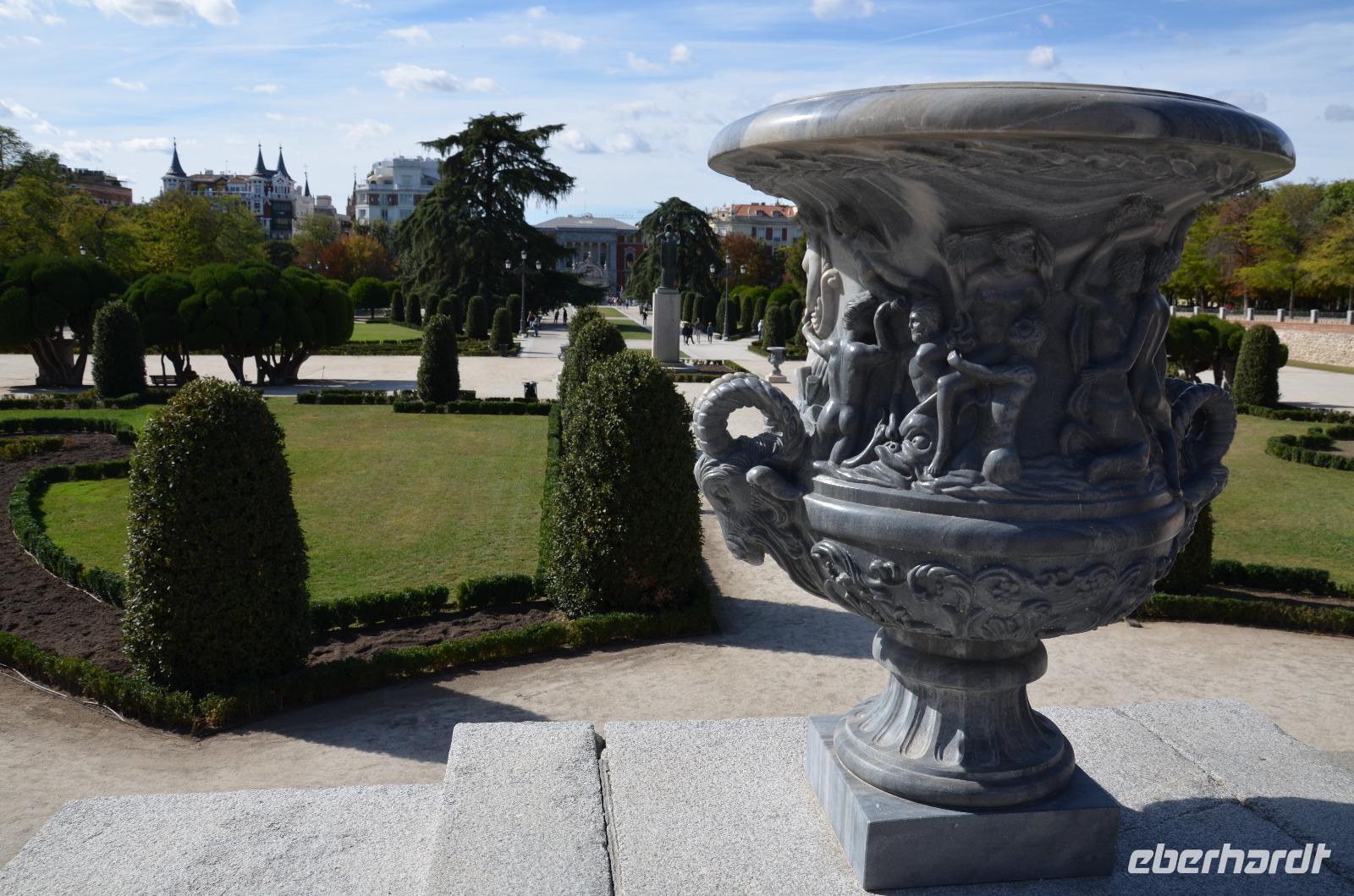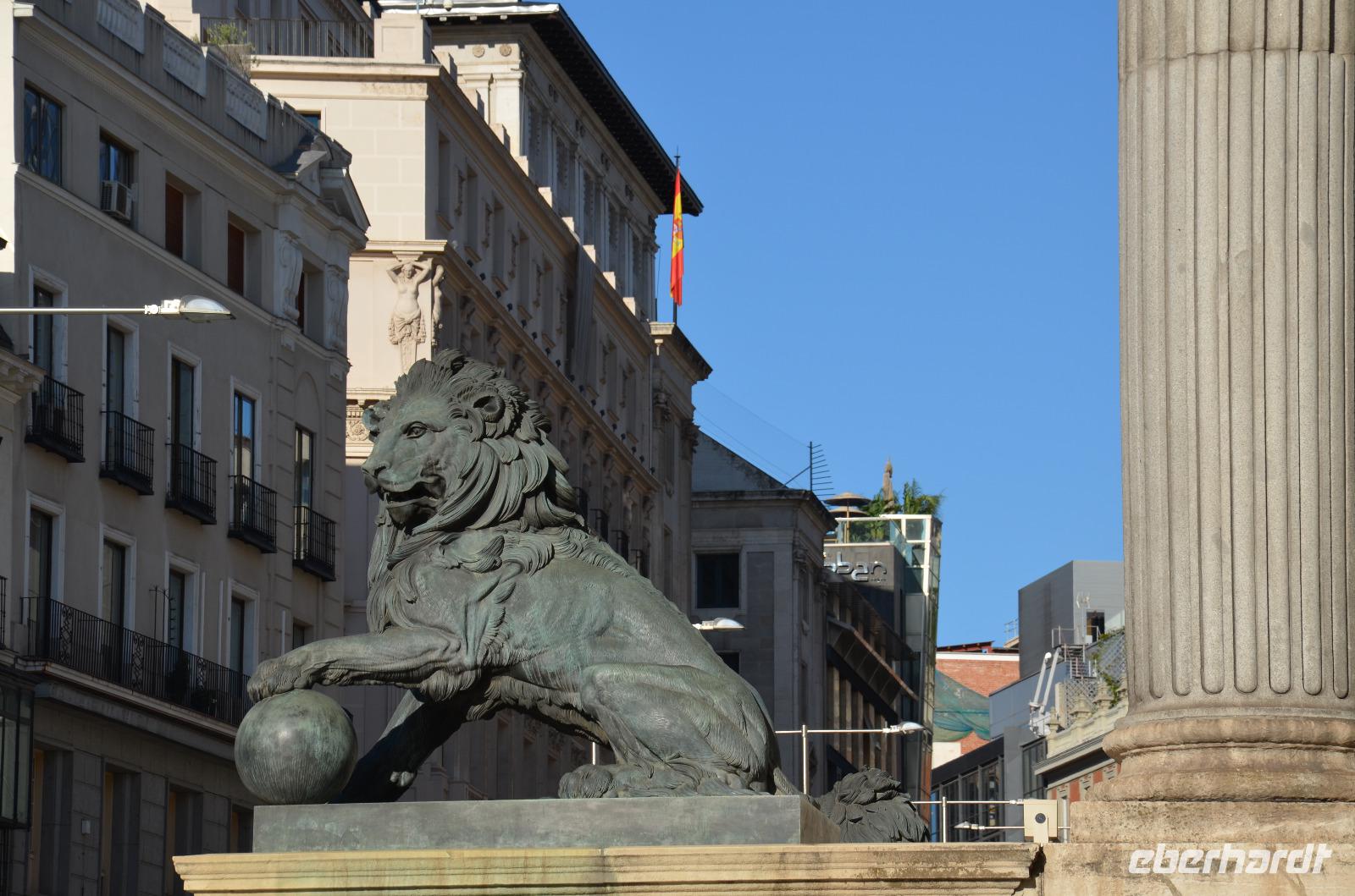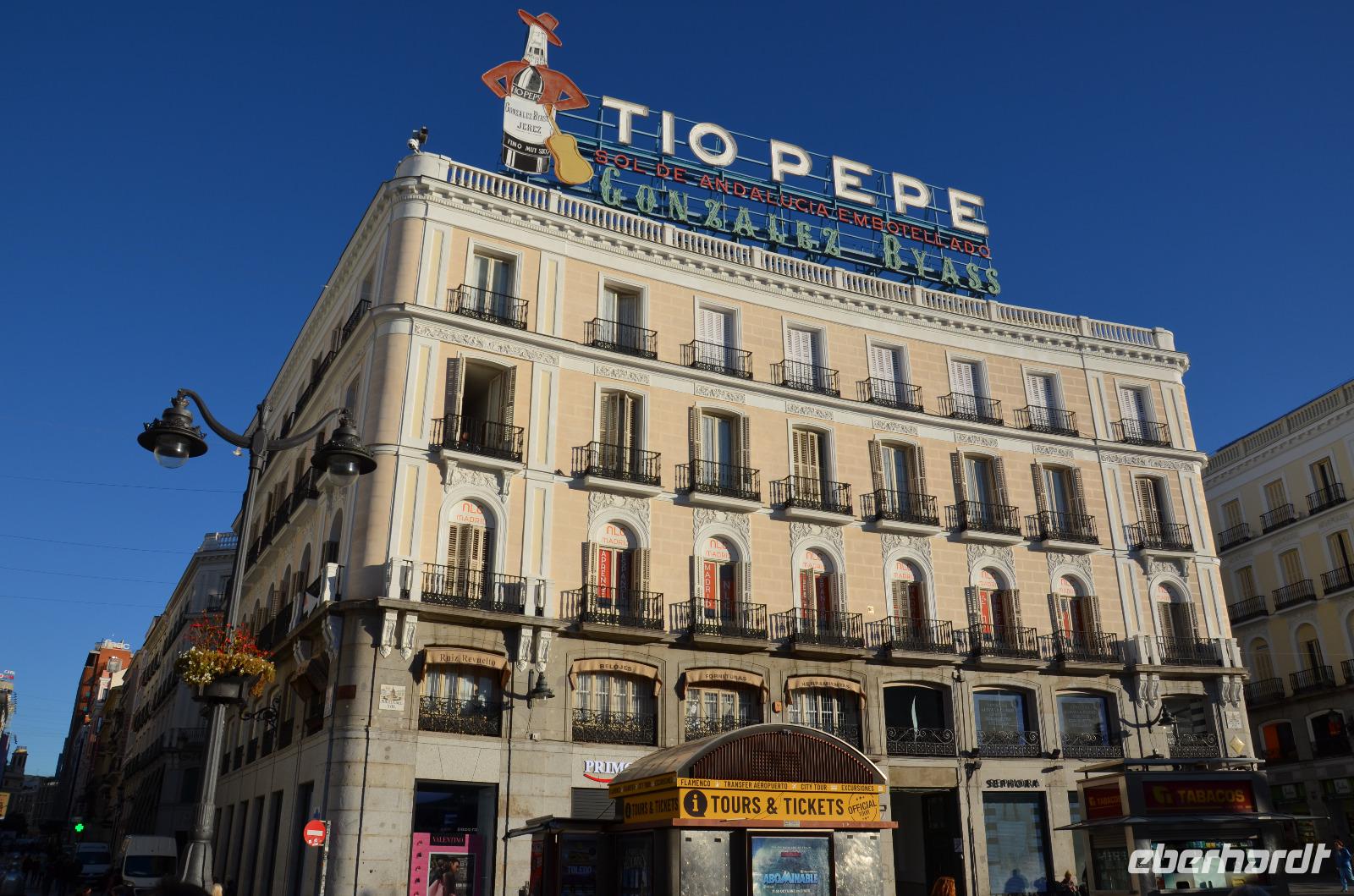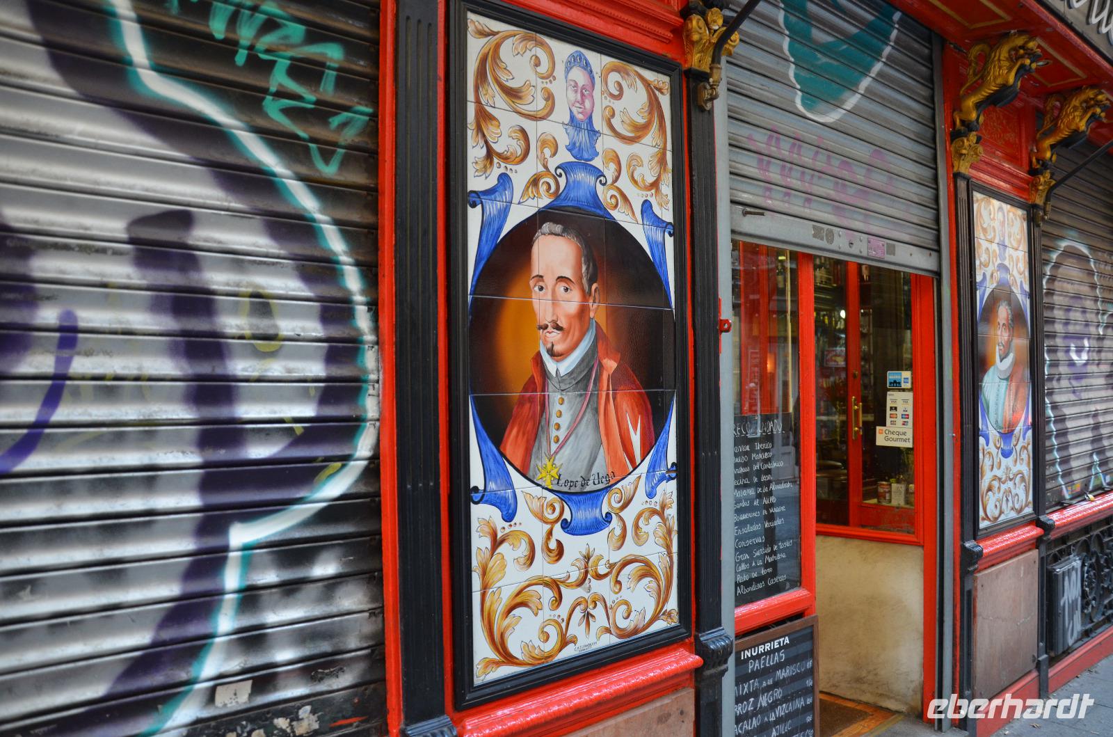Unser erster Halt befindet sich am „Plaza del Carmen", wo wir gespannt Petras Ausführungen zur Stadtgeschichte lauschen und dabei die unzähligen Tauben beobachten. Als nächstes geht es hinunter zur „Puerta del Sol", oder zu dem Platz, der bei den „Madrilenen" kurz als „Sol", also Sonne, bekannt ist. Hier herrscht immer ein reges Treiben und somit ist es nicht verwunderlich, dass dies einer der meistbesuchten Plätze in ganz Madrid ist. Für das Platzbild prägend ist dabei das imposante „Casa de Correos", vor dem sich der Null-Kilometerstein der sechs Hauptnationalstraßen Spaniens befindet, die bekannte Werbung des „Tío Pepe" sowie das Reiterdenkmal zu Ehren von König Karl III. Da auf diesem Platz immer zahlreiche Darbietungen stattfinden, lohnt es sich, hier ein wenig zu verweilen und die Eindrücke auf sich wirken zu lassen. In unserem Fall ist es allerdings heute die große Demonstration der Senioren, die aus ganz Spanien hier zusammenkommen, um für bessere Renten einzustehen. Wir verweilen also nur kurz und gehen weiter durch die kleinen, bunten Gassen der Stadt Richtung Süden. Dabei fallen immer wieder die kunstvoll ausgestalteten Wandfließen auf, die zum einen die Straßennamen auflisten und zum anderen ganze Häuserfassaden zieren. Am „Plaza de Santa Ana" angekommen, erhaschen wir erstmalig freies Schussfeld auf eine „Menina" in einem ausgefallenem Jeanseinteiler und haben außerdem eine gute Sicht auf das historische und berühmte „Gran Hotel Reina Victoria", was in seiner weißen Pracht am Ende des Platzes prangt. Ihm gegenüber ist das „Spanische Nationaltheater" zu finden, vor dem eine Statue von keinem Geringerem als dem berühmten spanischen Schriftsteller „García Lorca" steht. Die namenhaften Virtuosen der Federführung werden uns von hier an stetig begleiten. So passieren wir als nächstes eine Gedenkstätte von „Miguel Cervantes", der laut Schriftzug in diesem Haus lebte und auch starb und gelangen wenig später zum „Casa Museo Lope de Vega", welcher in diesem Haus die letzten 25 Jahre seines Lebens verbrachte und welches heute als Museum seiner Werke und Wirkungsstätten fungiert. Wir schauen uns dabei nur den Innenhof an und lauschen gespannt den Geschichten von Lope de Vega als Frauenheld. Weiter geht es zum Abgeordneten Kongress, dem „Congreso de los Diputados". Das massive, weiße Gebäude mit seinen zwei Löwenstatuen am Eingang strahlt bereits Stärke aus. Die große, goldene Tür wird allerdings nur ein Mal im Jahr geöffnet und zwar wenn der König die neue Regierung vorstellt. Direkt hinter diesem Gebäude befindet sich das „Teatro de la Zarzuela" und schon sind wir im Anflug auf einen der Höhepunkte der heutigen Tour, der bis dato noch eine Überraschung ist. Wir begeben uns beim „Círculo de Bellas Artes" in luftige Höhen und genießen für die nächste Stunde bei einem Kaffee oder einem kleinen Snack den wundervollen Ausblick über die gesamte Stadt von der Dachterrasse aus. Von hier aus kann man sogar erkennen, dass die Berge des „Sierra Guarana" frisch weiß eingedeckt sind. Der perfekte Ort, um kurz zu verschnaufen und die warmen Sonnenstrahlen zu genießen. Frisch gestärkt und erholt geht es weiter zum „Plaza de Cibeles". Von hier aus sieht man gleich mehrere Wahrzeichen der Stadt. Inmitten des Platzes thront der berühmte Brunnen „Fuente de Cibeles". Umgeben wird dieser von dem imposanten Bau des Kulturzentrums „Palacio de Cibeles CentroCentro" sowie der „Banco de Espana". Bei diesem Platz lohnt es sich wirklich, ihn von mehreren Seiten zu besichtigen, da man immer wieder neue Fotomotive entdeckt. Das nächste große Wahrzeichen folgt prompt mit dem angrenzenden Tor „Puerta de Alcalá", welches sich auf dem „Unabhängigkeitsplatz" befindet und die einstige Stadtgrenze markiert. Nach diesem Fotostopp befinden wir uns schon fast im direkten Anflug auf unser eigentliches Ziel - dem „Museo Nacional del Prado" und stoppen nur kurz am „Neptun-Brunnen". Auf der Prachtstraße „Paseo del Prado" gibt es aber auch wirklich viel zu sehen. Bevor wir uns aber in die heiligen Hallen eines der größten und bedeutendsten Museen der Welt begeben, bestaunen wir noch die angrenzende Kirche „Iglesia de los Jerónimos", ein wirklich beeindruckender Bau. Danach heißt es wieder Headsets auf und schon befinden wir uns auf unserer Führung durch die bekanntesten Kunstwerke der spanischen Geschichte, aber auch des internationalen Kunstmarktes. So sehen wir sowohl Gemälde von Tizian oder Albrecht Dürer, als auch Werke von Velázquez, El Greco oder Goya. Eines der bekanntesten Werke im Museum ist dabei das bereits Erwähnte „Las Meninas" („Die Hoffräulein") von Diego Velázquez. Im Zentrum des Bildes befindet sich die fünfjährige Königstochter Margarita, die von Hoffräulein umringt zurechtgemacht wird. Diese Arbeit ist eine der Meistdiskutierten und Meistverehrten der Kunstgeschichte, in der sich der Maler auch selbst verewigt hat. Nicht zuletzt gilt Velázquez als DER größte Hofmaler aller Zeiten. Nach eineinhalb Stunden im Museum schwirrt uns der Kopf von den vielen Eindrücken und wir gönnen uns eine Pause im angrenzenden Retiro-Park. Bei einer Tasse Kaffee und einem Stück Kuchen lassen wir das Erlebte sacken und genießen diesen grünen Zufluchtsort der pulsierenden Stadt. Aber auch hier gibt es einiges zu besichtigen. Am bekanntesten ist dabei der „Kristallpalast", neben dem „Velázquez-Palast". Bei unserer ausführlichen Runde durch den einst königlichen Park, passieren wir auf unserem Weg zur U-Bahn noch das imposante „Monument Alfonso XII". Im See davor fahren zahlreiche Boote und in der Luft machen sich lautstark Mönchsittiche bemerkbar. Ein herrlicher, sommerlicher Tag geht dem Ende entgegen. Wir lassen ihn aber noch mit einem geselligen Restaurantbesuch im „El Barril de las Letras" ausklingen.