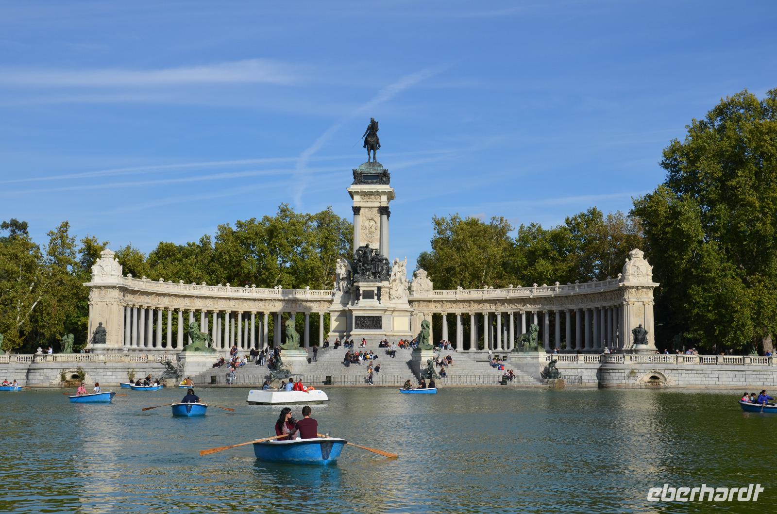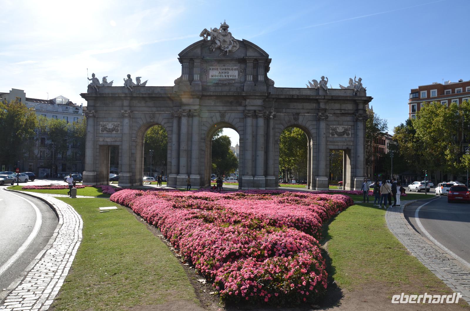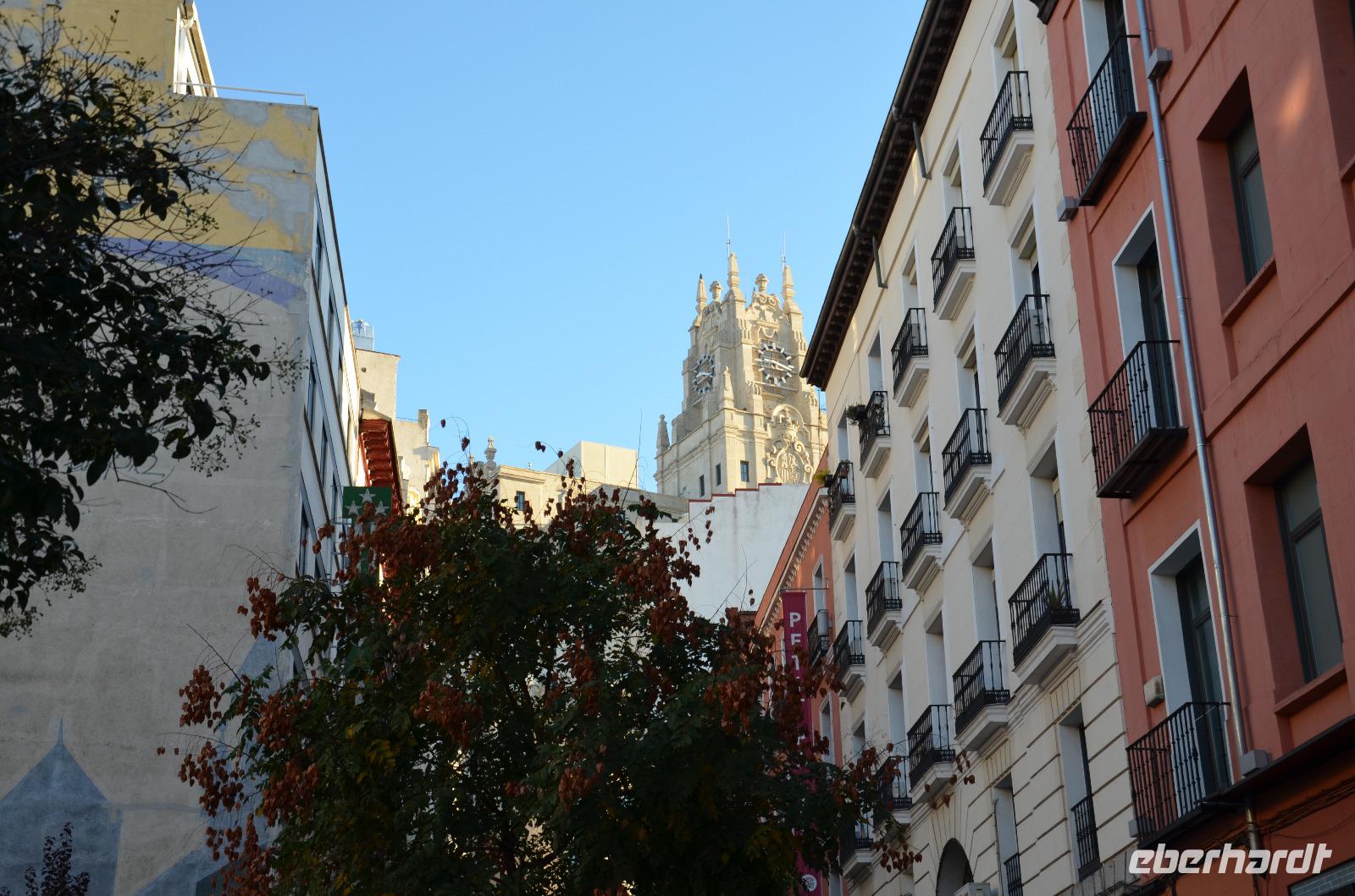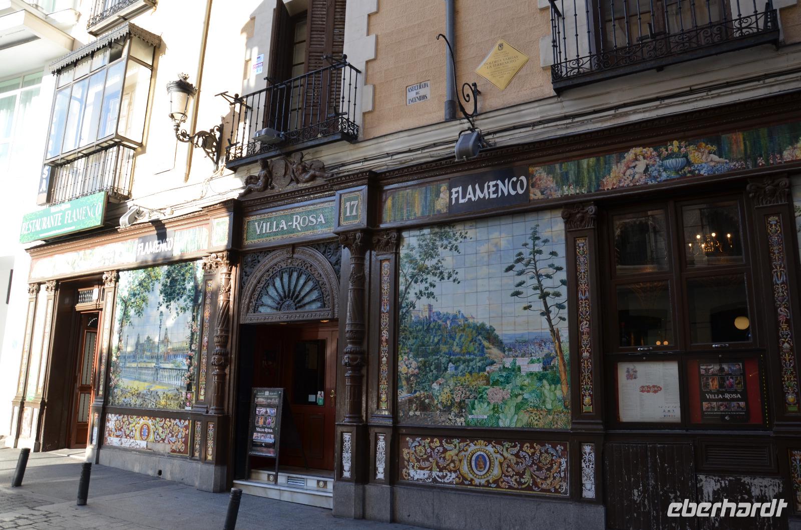 Unser erster Halt befindet sich am „Plaza del Carmen", wo wir gespannt Petras Ausführungen zur Stadtgeschichte lauschen und dabei die unzähligen Tauben beobachten. Als nächstes geht es hinunter zur „Puerta del Sol", oder zu dem Platz, der bei den „Madrilenen" kurz als „Sol", also Sonne, bekannt ist. Hier herrscht immer ein reges Treiben und somit ist es nicht verwunderlich, dass dies einer der meistbesuchten Plätze in ganz Madrid ist. Für das Platzbild prägend ist dabei das imposante „Casa de Correos", vor dem sich der Null-Kilometerstein der sechs Hauptnationalstraßen Spaniens befindet, die bekannte Werbung des „Tío Pepe" sowie das Reiterdenkmal zu Ehren von König Karl III. Da auf diesem Platz immer zahlreiche Darbietungen stattfinden, lohnt es sich, hier ein wenig zu verweilen und die Eindrücke auf sich wirken zu lassen. In unserem Fall ist es allerdings heute die große Demonstration der Senioren, die aus ganz Spanien hier zusammenkommen, um für bessere Renten einzustehen. Wir verweilen also nur kurz und gehen weiter durch die kleinen, bunten Gassen der Stadt Richtung Süden. Dabei fallen immer wieder die kunstvoll ausgestalteten Wandfließen auf, die zum einen die Straßennamen auflisten und zum anderen ganze Häuserfassaden zieren. Am „Plaza de Santa Ana" angekommen, erhaschen wir erstmalig freies Schussfeld auf eine „Menina" in einem ausgefallenem Jeanseinteiler und haben außerdem eine gute Sicht auf das historische und berühmte „Gran Hotel Reina Victoria", was in seiner weißen Pracht am Ende des Platzes prangt. Ihm gegenüber ist das „Spanische Nationaltheater" zu finden, vor dem eine Statue von keinem Geringerem als dem berühmten spanischen Schriftsteller „García Lorca" steht. Die namenhaften Virtuosen der Federführung werden uns von hier an stetig begleiten. So passieren wir als nächstes eine Gedenkstätte von „Miguel Cervantes", der laut Schriftzug in diesem Haus lebte und auch starb und gelangen wenig später zum „Casa Museo Lope de Vega", welcher in diesem Haus die letzten 25 Jahre seines Lebens verbrachte und welches heute als Museum seiner Werke und Wirkungsstätten fungiert. Wir schauen uns dabei nur den Innenhof an und lauschen gespannt den Geschichten von Lope de Vega als Frauenheld. Weiter geht es zum Abgeordneten Kongress, dem „Congreso de los Diputados". Das massive, weiße Gebäude mit seinen zwei Löwenstatuen am Eingang strahlt bereits Stärke aus. Die große, goldene Tür wird allerdings nur ein Mal im Jahr geöffnet und zwar wenn der König die neue Regierung vorstellt. Direkt hinter diesem Gebäude befindet sich das „Teatro de la Zarzuela" und schon sind wir im Anflug auf einen der Höhepunkte der heutigen Tour, der bis dato noch eine Überraschung ist. Wir begeben uns beim „Círculo de Bellas Artes" in luftige Höhen und genießen für die nächste Stunde bei einem Kaffee oder einem kleinen Snack den wundervollen Ausblick über die gesamte Stadt von der Dachterrasse aus. Von hier aus kann man sogar erkennen, dass die Berge des „Sierra Guarana" frisch weiß eingedeckt sind. Der perfekte Ort, um kurz zu verschnaufen und die warmen Sonnenstrahlen zu genießen. Frisch gestärkt und erholt geht es weiter zum „Plaza de Cibeles". Von hier aus sieht man gleich mehrere Wahrzeichen der Stadt. Inmitten des Platzes thront der berühmte Brunnen „Fuente de Cibeles". Umgeben wird dieser von dem imposanten Bau des Kulturzentrums „Palacio de Cibeles CentroCentro" sowie der „Banco de Espana". Bei diesem Platz lohnt es sich wirklich, ihn von mehreren Seiten zu besichtigen, da man immer wieder neue Fotomotive entdeckt. Das nächste große Wahrzeichen folgt prompt mit dem angrenzenden Tor „Puerta de Alcalá", welches sich auf dem „Unabhängigkeitsplatz" befindet und die einstige Stadtgrenze markiert. Nach diesem Fotostopp befinden wir uns schon fast im direkten Anflug auf unser eigentliches Ziel - dem „Museo Nacional del Prado" und stoppen nur kurz am „Neptun-Brunnen". Auf der Prachtstraße „Paseo del Prado" gibt es aber auch wirklich viel zu sehen. Bevor wir uns aber in die heiligen Hallen eines der größten und bedeutendsten Museen der Welt begeben, bestaunen wir noch die angrenzende Kirche „Iglesia de los Jerónimos", ein wirklich beeindruckender Bau. Danach heißt es wieder Headsets auf und schon befinden wir uns auf unserer Führung durch die bekanntesten Kunstwerke der spanischen Geschichte, aber auch des internationalen Kunstmarktes. So sehen wir sowohl Gemälde von Tizian oder Albrecht Dürer, als auch Werke von Velázquez, El Greco oder Goya. Eines der bekanntesten Werke im Museum ist dabei das bereits Erwähnte „Las Meninas" („Die Hoffräulein") von Diego Velázquez. Im Zentrum des Bildes befindet sich die fünfjährige Königstochter Margarita, die von Hoffräulein umringt zurechtgemacht wird. Diese Arbeit ist eine der Meistdiskutierten und Meistverehrten der Kunstgeschichte, in der sich der Maler auch selbst verewigt hat. Nicht zuletzt gilt Velázquez als DER größte Hofmaler aller Zeiten. Nach eineinhalb Stunden im Museum schwirrt uns der Kopf von den vielen Eindrücken und wir gönnen uns eine Pause im angrenzenden Retiro-Park. Bei einer Tasse Kaffee und einem Stück Kuchen lassen wir das Erlebte sacken und genießen diesen grünen Zufluchtsort der pulsierenden Stadt. Aber auch hier gibt es einiges zu besichtigen. Am bekanntesten ist dabei der „Kristallpalast", neben dem „Velázquez-Palast". Bei unserer ausführlichen Runde durch den einst königlichen Park, passieren wir auf unserem Weg zur U-Bahn noch das imposante „Monument Alfonso XII". Im See davor fahren zahlreiche Boote und in der Luft machen sich lautstark Mönchsittiche bemerkbar. Ein herrlicher, sommerlicher Tag geht dem Ende entgegen. Wir lassen ihn aber noch mit einem geselligen Restaurantbesuch im „El Barril de las Letras" ausklingen.