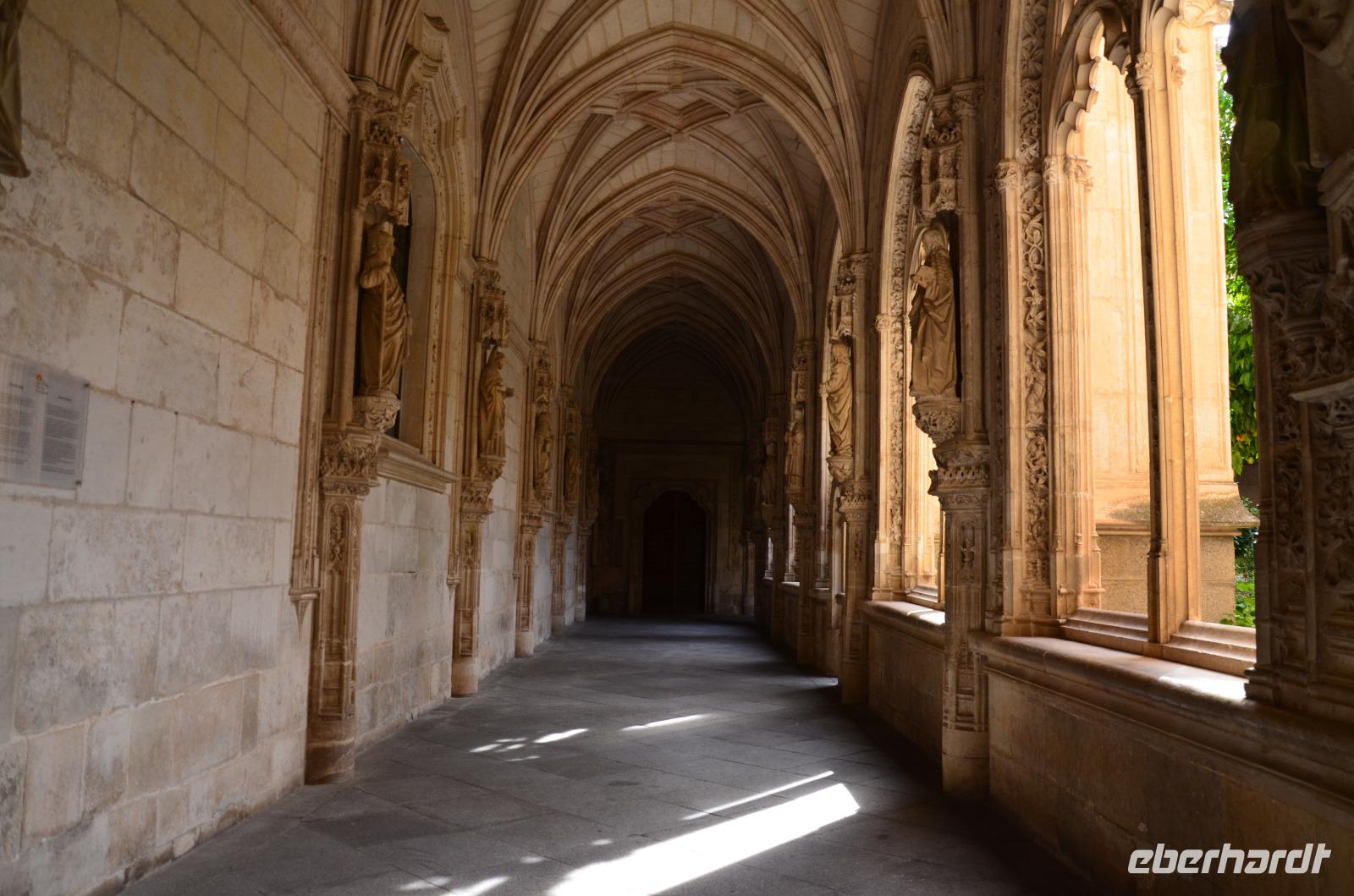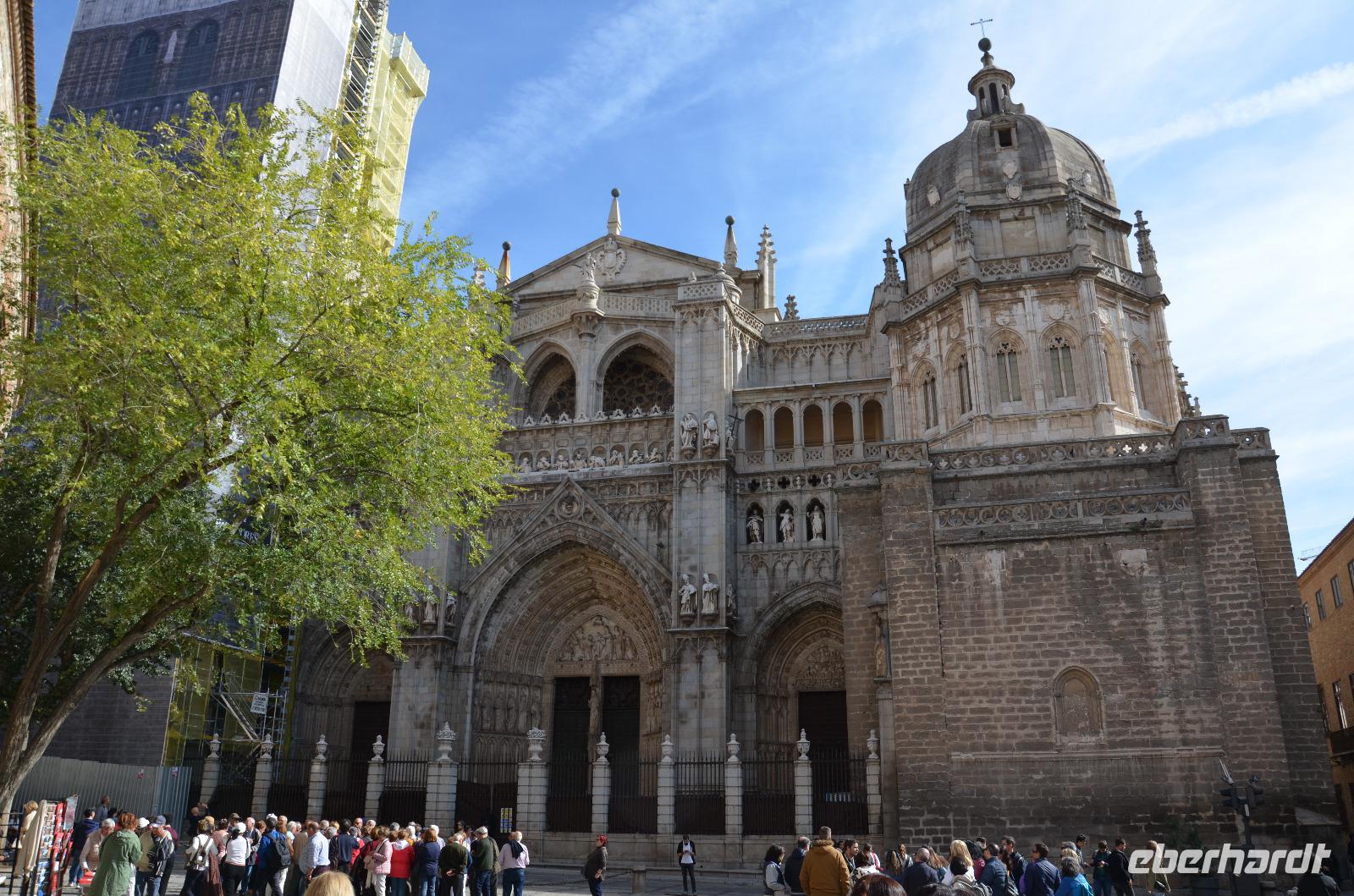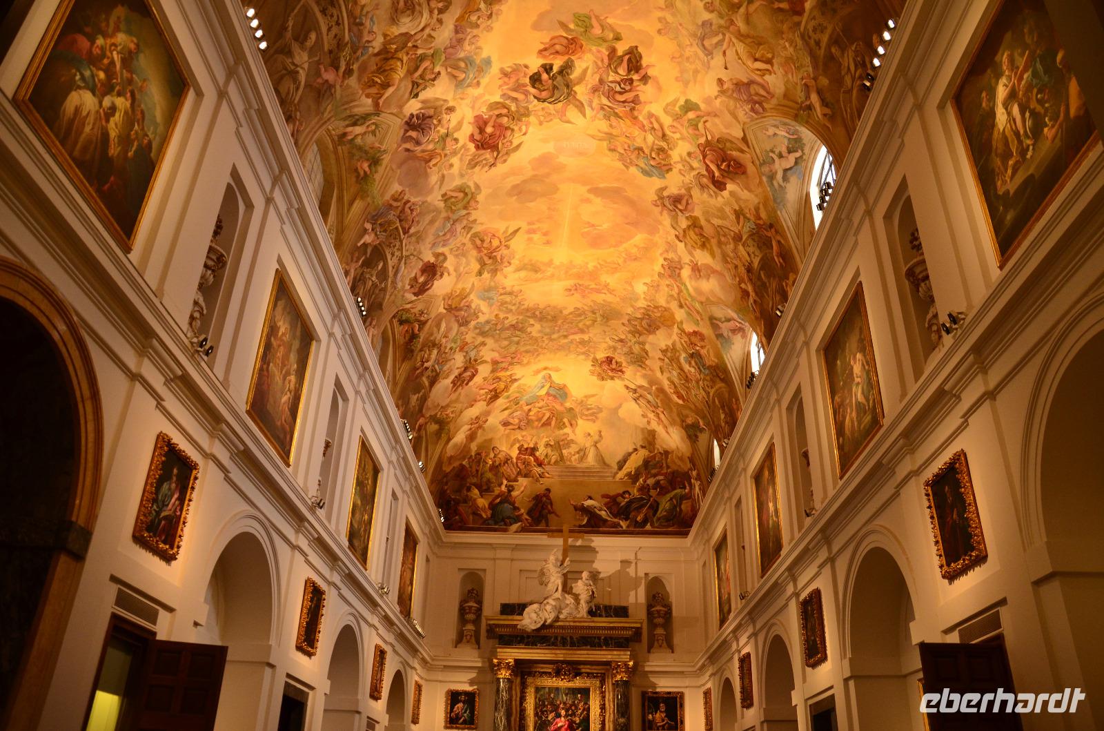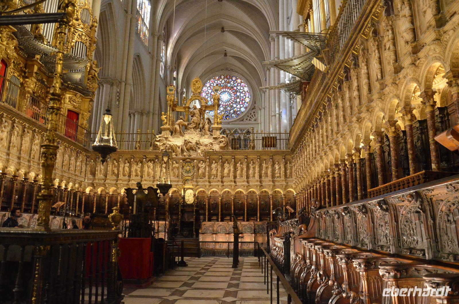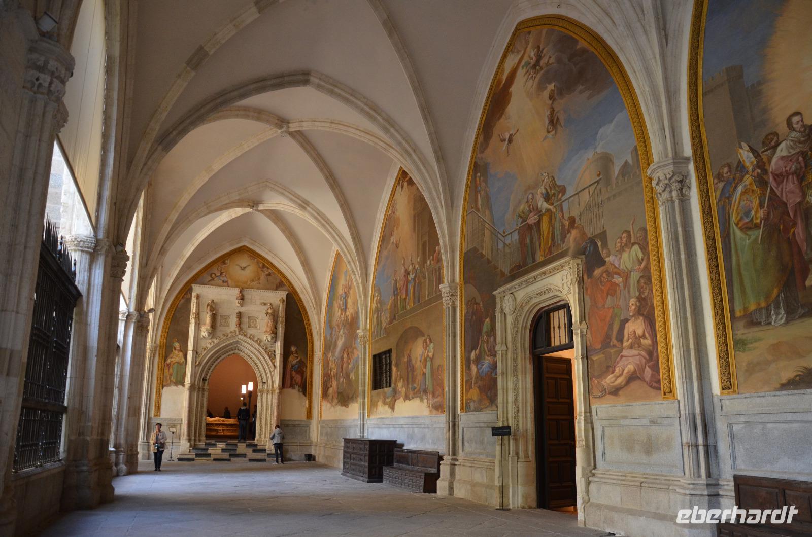 Toledo - am Fluss Tajo gelegen, ist eine facettenreiche Kulturstadt mit insgesamt 16 „Barrios". Hier kommen drei Weltreligionen zusammen, die den größten Teil der Geschichtsschreibung friedlich nebeneinander bestanden haben. Unser erster Eindruck bildet sich, als wir einen Fotostopp auf einer Anhöhe außerhalb der Stadt machen und einen spektakulären Blick auf die Stadtkulisse genießen können. Im Anschluss beginnen wir unseren ereignisreichen Stadtrundgang am „Bisagra Tor". Nach einer Fahrt mit den unzähligen Rolltreppen, schlängeln wir uns durch die kleinen, süßen Gassen der Stadt, die immer wieder mit traditionellen Läden gesäumt sind. Die Haupthandwerke sind dabei die Töpfereikunst, die Marzipanherstellung, die Goldschmiedekunst und insbesondere die Damaszener Edelmetallkunst sowie die Stahlherstellung und -verarbeitung zu edlen und kunstvollen Produkten wie Dolchen oder Messern. Was also Souvenir-Einkäufe anbelangt, bleibt hier kein Wunsch unerfüllt und man könnte mit Leichtigkeit einige Tage hier verbringen, ohne sich zu langweilen. Kulturell sticht Toledo ebenso hervor. Hier steigen wir mit der „Kathedrale von Toledo" ein oder der „Catedral de Santa María de la Asunción de Toledo", wie sie im Spanischen heißt, die als Hauptwerk der spanischen Gotik gilt. Auch hier könnte man sich in den zahlreichen, prunkvoll ausgestatteten Räumen über Stunden verlieren, wobei jede Passage des Anwesens ganz anders gestaltet ist. Wir erleben einen Abriss und besichtigen unter anderem den Hauptaltar, den Chorraum mit seinen eindrucksvollen Orgeln, das Bischofsgrab und zahlreiche Nebenräume, die von ausgeklügelten Deckenmalereien geprägt sind. Durch die große Bedeutung dieser Kathedrale hängen in vielen Räumlichkeiten auch Kunstschätze großer, spanischer Maler. Der Haupteingang des eindrucksvollen Bauwerks öffnet nur ein Mal im Jahr an Fronleichnam seine massiven Türen. Direkt gegenüber auf dem „Plaza del Consistorio" befindet sich das Rathaus von Toledo. Nach einer ausgiebigen Besichtigung der Kathedrale begeben wir uns ins „Jüdische Viertel" der Stadt, welches unübersehbar auf den Pflastersteinen der Straße vermerkt ist. Hier stoppen wir in einem Juweliergeschäft und können einem Meister seiner Kunst hautnah über die Schulter schauen. Das Handwerk der Damaszener Edelmetallkunst ist vom Aussterben bedroht, da sich die Jugend wenig für diese filigrane und anspruchsvolle Arbeit begeistern kann. Schön anzuschauen ist der Schmuck auf jeden Fall! Von der Qualität der Töpfereikunst können wir uns im folgenden Laden überzeugen und schon geht es weiter zum nächsten kulturellen Höhepunkt - der Synagoge „Santa María La Blanca". Ganz einfach und ganz schlicht erstrahlt sie in einem völlig anderen Licht, als die prunkvolle Kathedrale. Der Gegensatz könnte nicht größer sein. Die einstige Synagoge wurde zu Anfang des 15. Jahrhunderts nach zahlreichen Übergriffen auf das Jüdische Viertel, die die Abwanderung seiner Bewohner zur Folge hatte, an den Calatravaorden übergeben und avancierte somit zur katholischen Kirche. Heute dient sie ausschließlich als Museum.