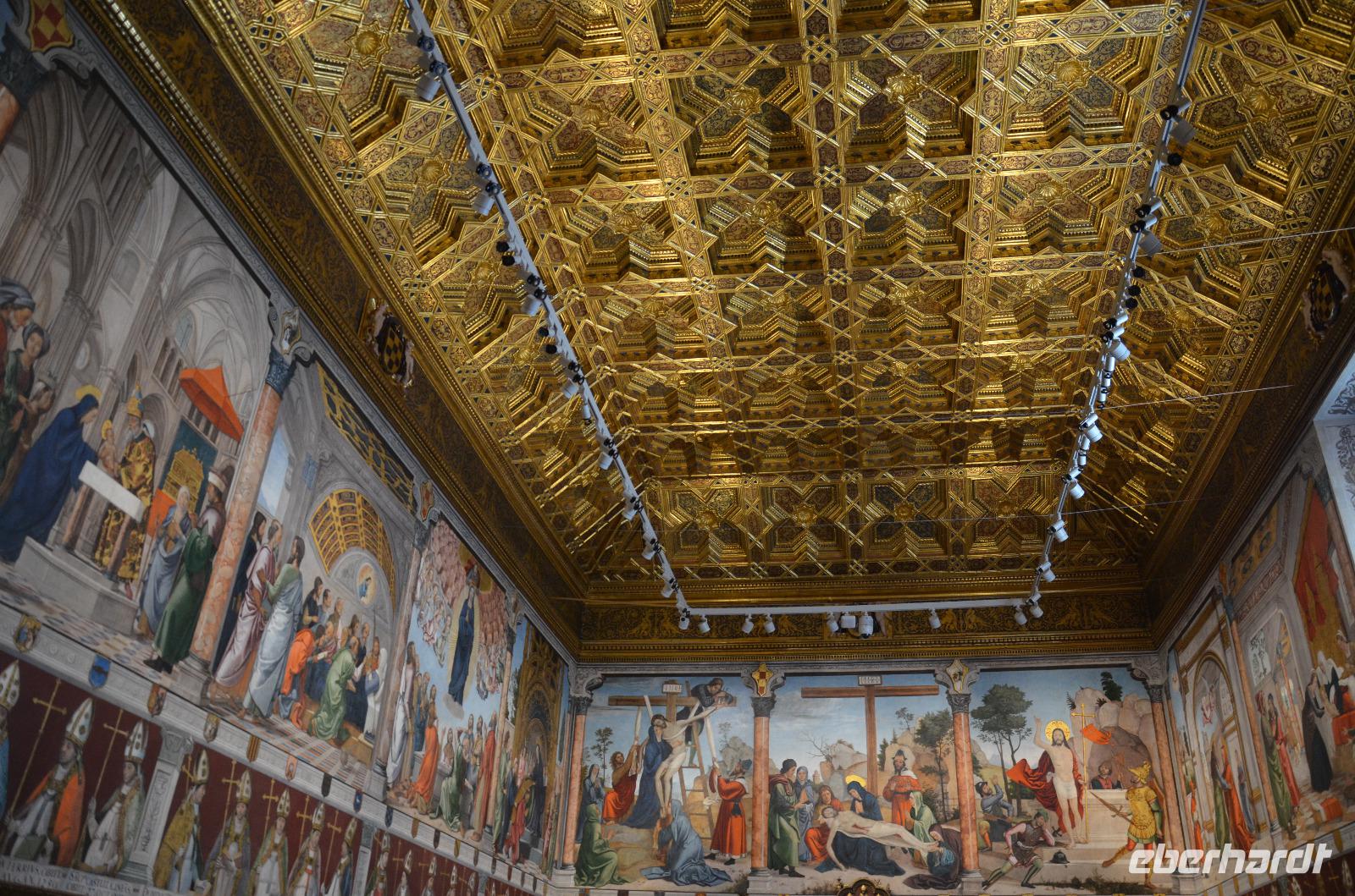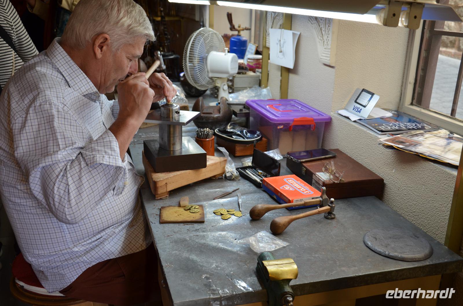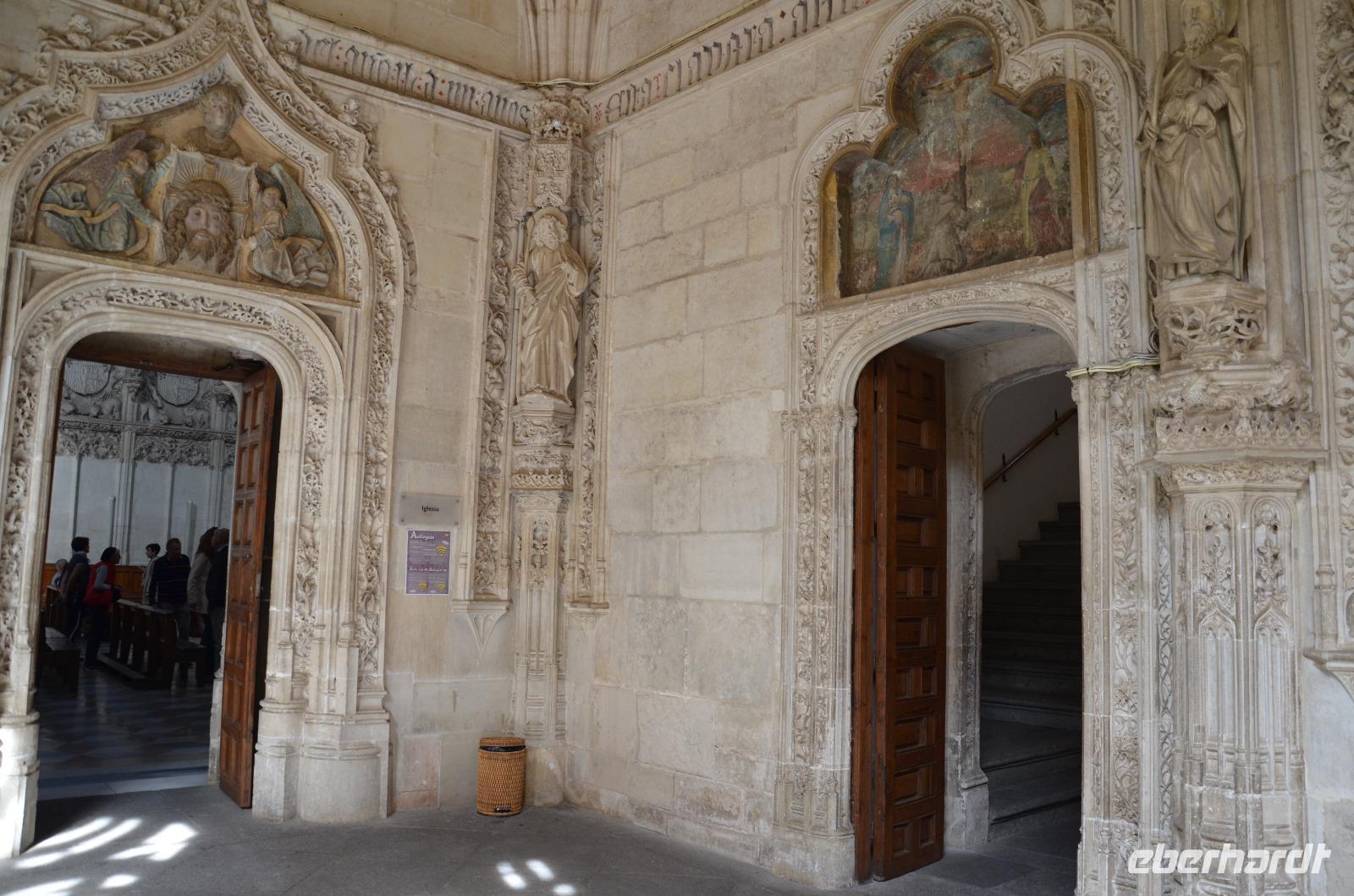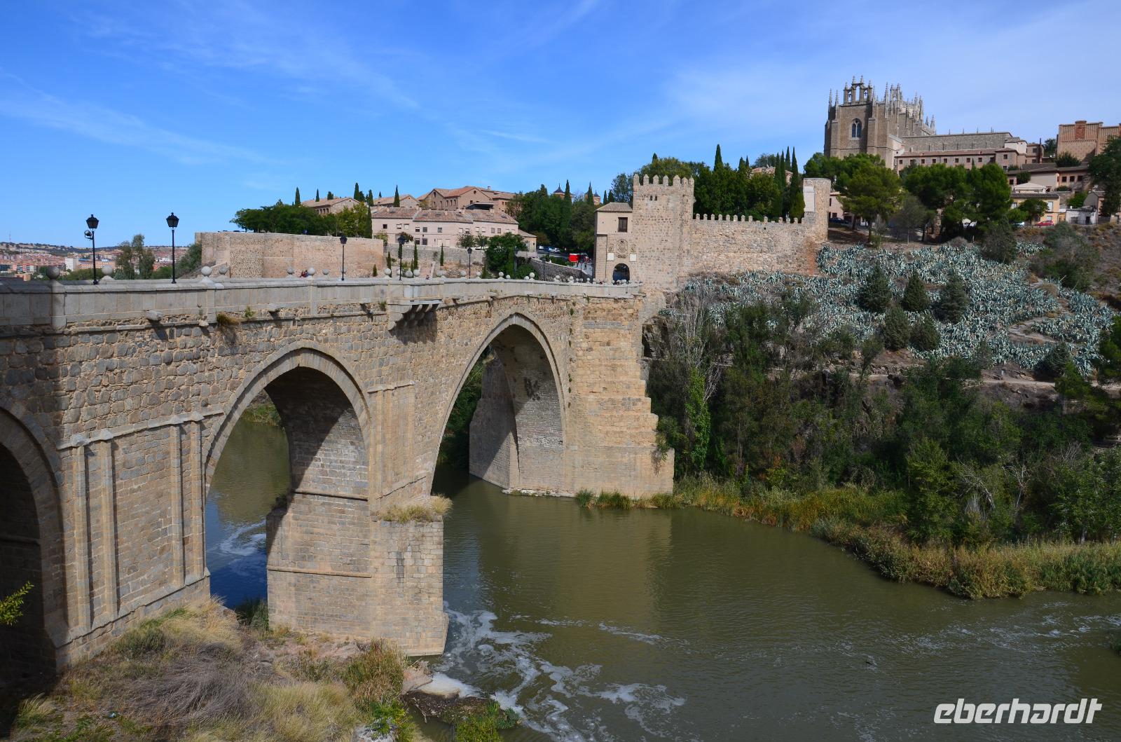 Toledo - am Fluss Tajo gelegen, ist eine facettenreiche Kulturstadt mit insgesamt 16 „Barrios". Hier kommen drei Weltreligionen zusammen, die den größten Teil der Geschichtsschreibung friedlich nebeneinander bestanden haben. Unser erster Eindruck bildet sich, als wir einen Fotostopp auf einer Anhöhe außerhalb der Stadt machen und einen spektakulären Blick auf die Stadtkulisse genießen können. Im Anschluss beginnen wir unseren ereignisreichen Stadtrundgang am „Bisagra Tor". Nach einer Fahrt mit den unzähligen Rolltreppen, schlängeln wir uns durch die kleinen, süßen Gassen der Stadt, die immer wieder mit traditionellen Läden gesäumt sind. Die Haupthandwerke sind dabei die Töpfereikunst, die Marzipanherstellung, die Goldschmiedekunst und insbesondere die Damaszener Edelmetallkunst sowie die Stahlherstellung und -verarbeitung zu edlen und kunstvollen Produkten wie Dolchen oder Messern. Was also Souvenir-Einkäufe anbelangt, bleibt hier kein Wunsch unerfüllt und man könnte mit Leichtigkeit einige Tage hier verbringen, ohne sich zu langweilen. Kulturell sticht Toledo ebenso hervor. Hier steigen wir mit der „Kathedrale von Toledo" ein oder der „Catedral de Santa María de la Asunción de Toledo", wie sie im Spanischen heißt, die als Hauptwerk der spanischen Gotik gilt. Auch hier könnte man sich in den zahlreichen, prunkvoll ausgestatteten Räumen über Stunden verlieren, wobei jede Passage des Anwesens ganz anders gestaltet ist. Wir erleben einen Abriss und besichtigen unter anderem den Hauptaltar, den Chorraum mit seinen eindrucksvollen Orgeln, das Bischofsgrab und zahlreiche Nebenräume, die von ausgeklügelten Deckenmalereien geprägt sind. Durch die große Bedeutung dieser Kathedrale hängen in vielen Räumlichkeiten auch Kunstschätze großer, spanischer Maler. Der Haupteingang des eindrucksvollen Bauwerks öffnet nur ein Mal im Jahr an Fronleichnam seine massiven Türen. Direkt gegenüber auf dem „Plaza del Consistorio" befindet sich das Rathaus von Toledo. Nach einer ausgiebigen Besichtigung der Kathedrale begeben wir uns ins „Jüdische Viertel" der Stadt, welches unübersehbar auf den Pflastersteinen der Straße vermerkt ist. Hier stoppen wir in einem Juweliergeschäft und können einem Meister seiner Kunst hautnah über die Schulter schauen. Das Handwerk der Damaszener Edelmetallkunst ist vom Aussterben bedroht, da sich die Jugend wenig für diese filigrane und anspruchsvolle Arbeit begeistern kann. Schön anzuschauen ist der Schmuck auf jeden Fall! Von der Qualität der Töpfereikunst können wir uns im folgenden Laden überzeugen und schon geht es weiter zum nächsten kulturellen Höhepunkt - der Synagoge „Santa María La Blanca". Ganz einfach und ganz schlicht erstrahlt sie in einem völlig anderen Licht, als die prunkvolle Kathedrale. Der Gegensatz könnte nicht größer sein. Die einstige Synagoge wurde zu Anfang des 15. Jahrhunderts nach zahlreichen Übergriffen auf das Jüdische Viertel, die die Abwanderung seiner Bewohner zur Folge hatte, an den Calatravaorden übergeben und avancierte somit zur katholischen Kirche. Heute dient sie ausschließlich als Museum.