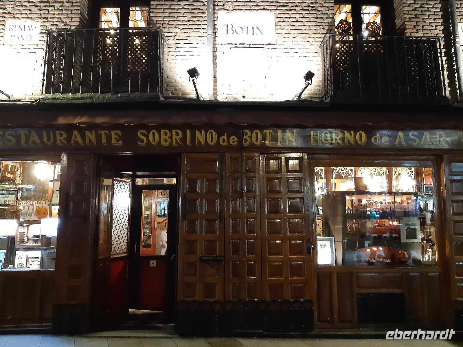 Als wir am späten Nachmittag wieder im Hotel in Madrid eintreffen, gibt es noch etwas Freizeit bevor wir uns zur letzten Etappe dieser Reise aufmachen. Mit stolz geschwellter Brust können wir behaupten, im ältesten Restaurant der Welt dinieren zu dürfen. Die Spezialität des Hauses „Botín" ist dabei ein ganzes Spanferkel. Der Wein fließt in Strömen, das Essen ist reichlich und reichhaltig und die Stimmung wird immer ausgelassener. Ein perfekter letzter Abend bevor wir morgen die Heimreise antreten. Dann bleiben mir nur noch die abschließenden Worte - Schön wars! Und hoffentlich auf bald!
