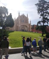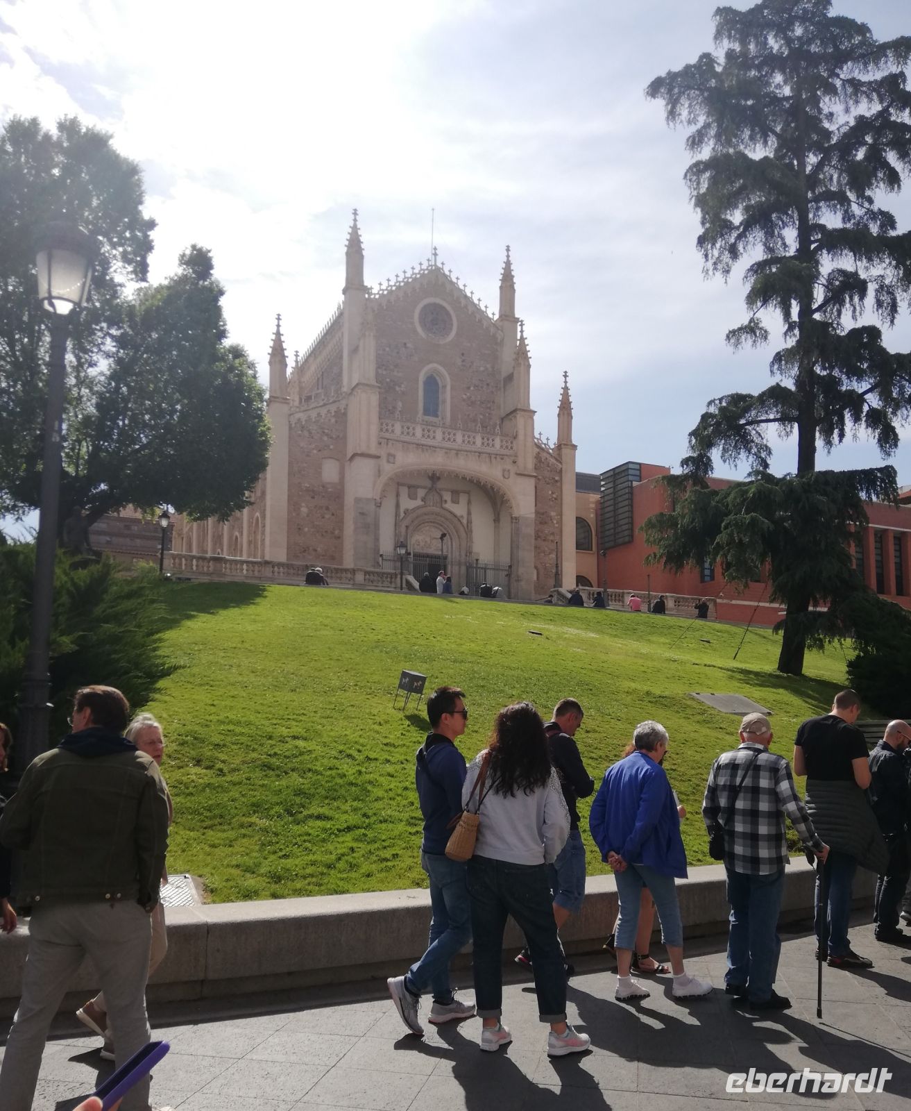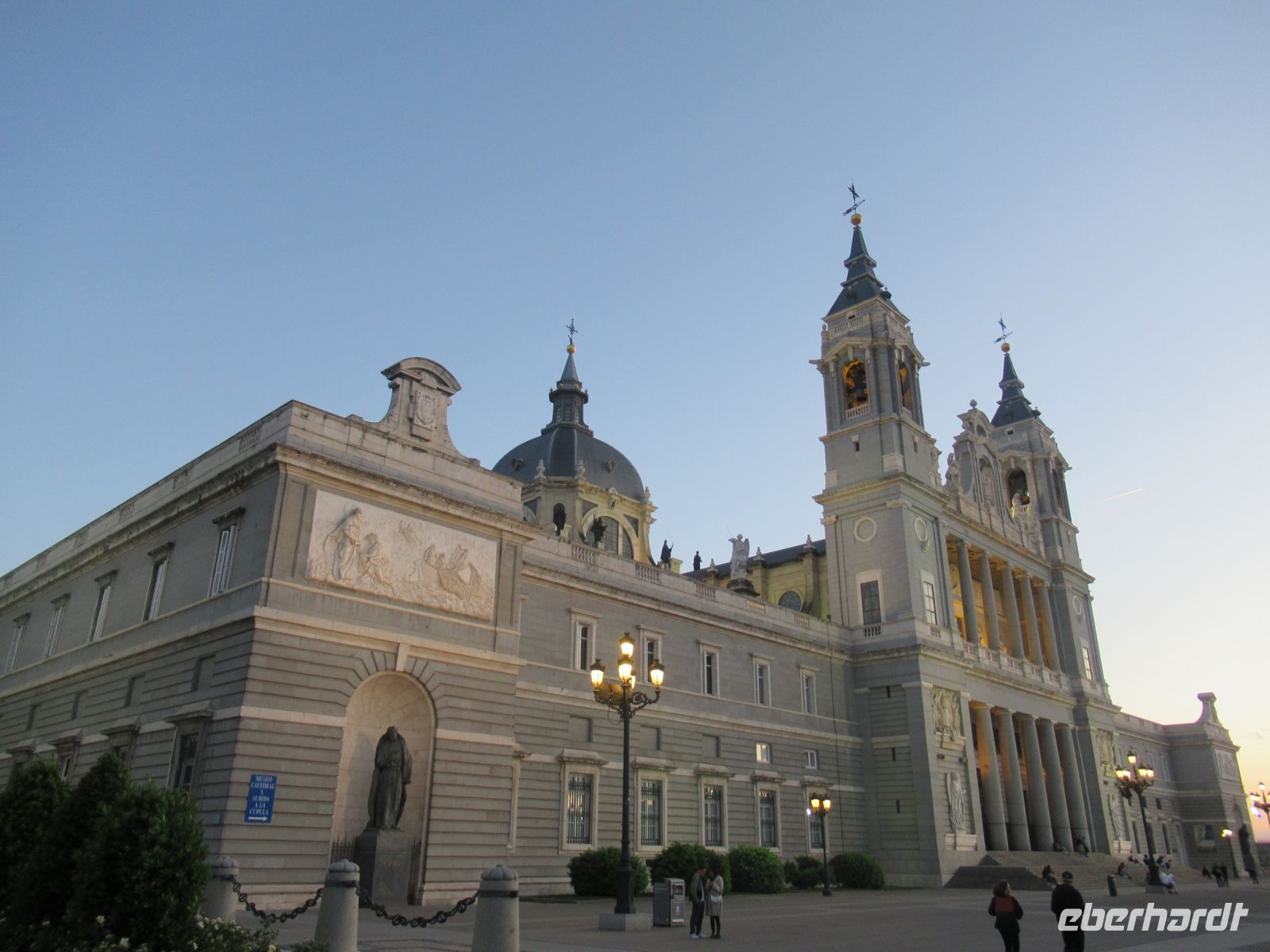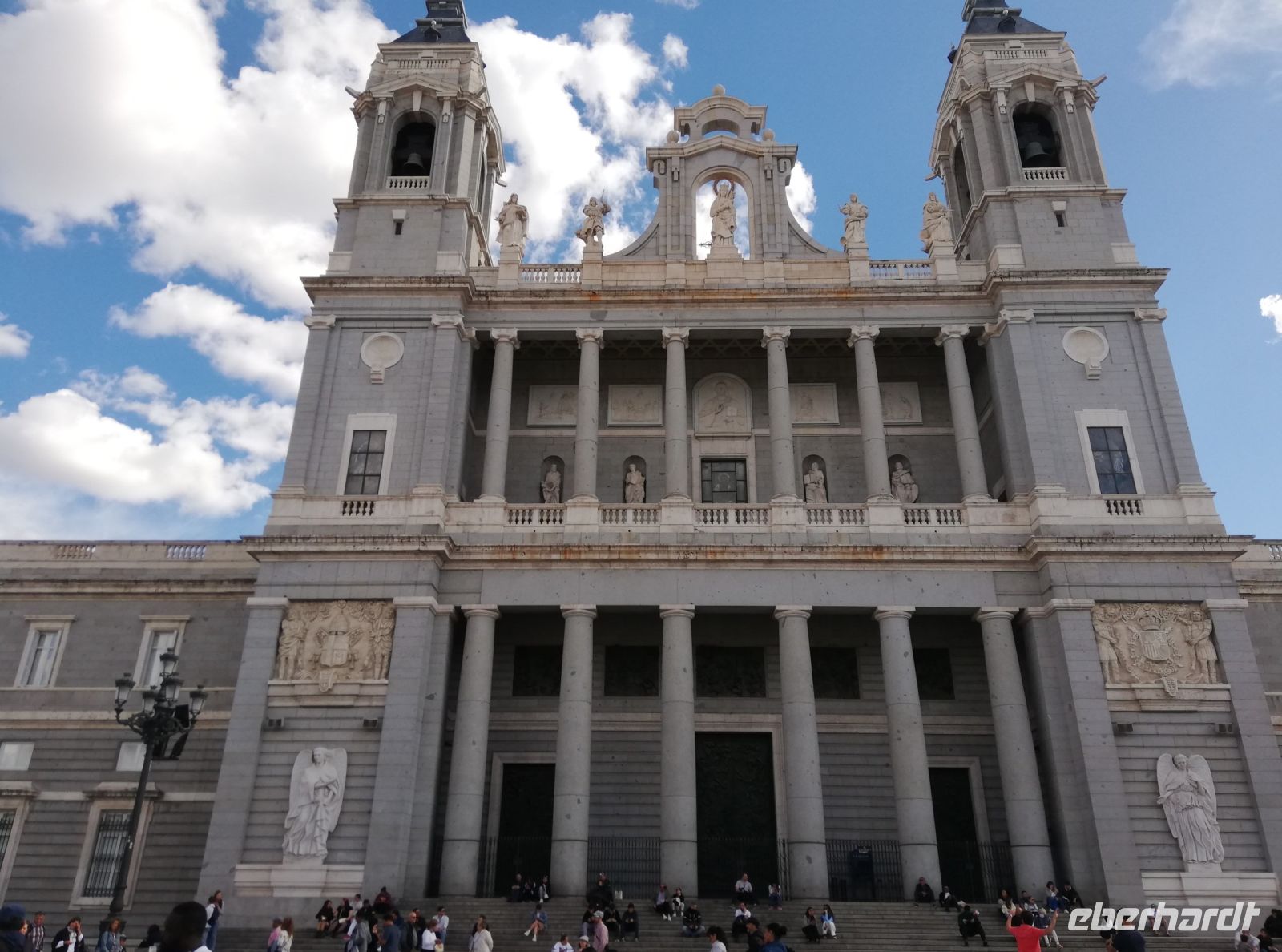 Wir besichtigen die Almudena Kathedrale. Die Geschichte des Baus; „Ende des 19. Jahrhunderts wurde begonnen, auf der alten Kirche Santa María la Mayor die Almudena-Kathedrale zu errichten, die der Schutzpatronin der Stadt Madrid geweiht ist. Im Jahre 1883 wurde der Grundstein für dieses eindrucksvolle Bauwerk gelegt. Die Kathedrale wurde nach vielen Jahren dann endlich im Jahre 1993 vom Papst Johannes Paul II. geweiht. Im Inneren der Kirche wird ein gotischer Stil bewahrt, auch wenn sie von außen klassizistisch ist.“ Wir verweilen in der Kathedrale und bewundern die unterschiedlichen Stile der wunderschönen „heiligen Stätte“. Und wir hatten Glück - es begann die Heilige Messe - der Pfarrer ging durch alle Gänge der Kirche und hat mit Weihung und mit Orgelklängen im Hintergrund die heilige Messe begonnen. Viele Gäste verweilen an den Bänken, genossen die Stille und die wunderschöne historische Kulisse der Almudena Kathedrale.