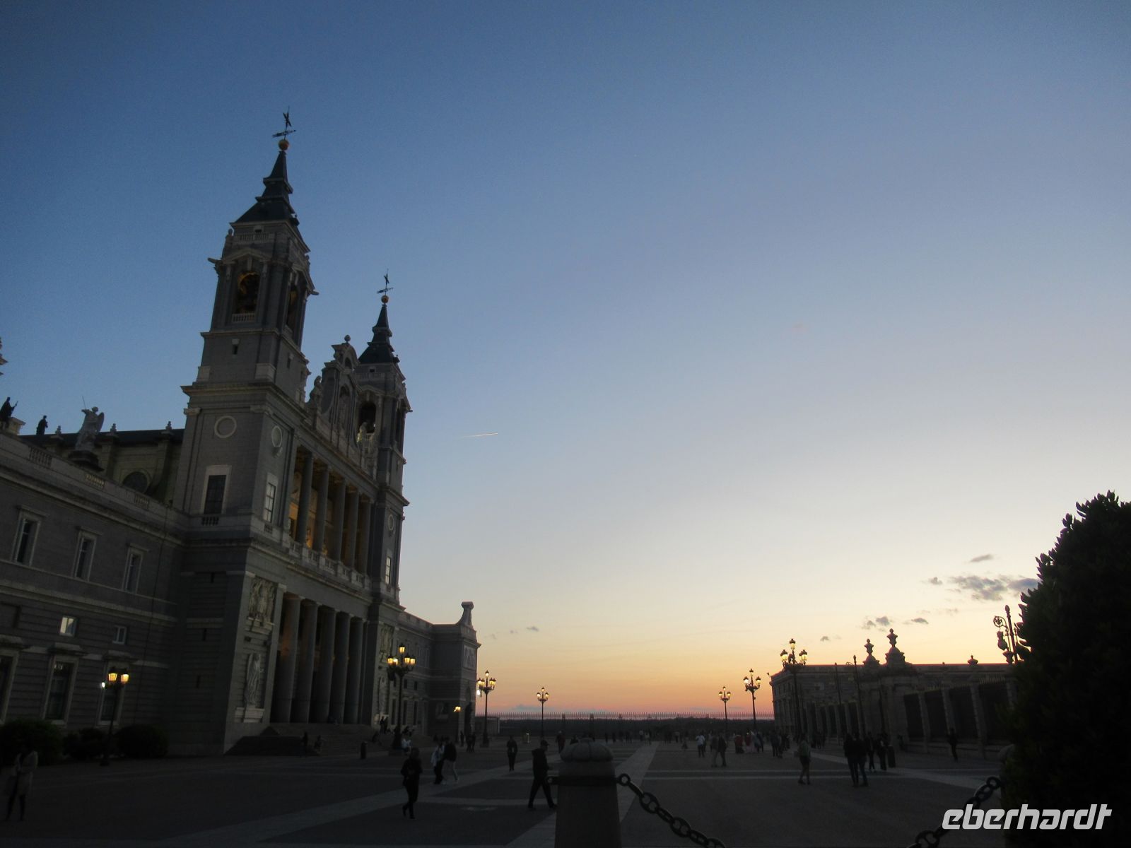 So endet wieder ein wunderschöner Tag in Madrid mit anschließendem Spaziergang zurück ins Hotel bei Sonnenuntergang hinter der „Almudena“.