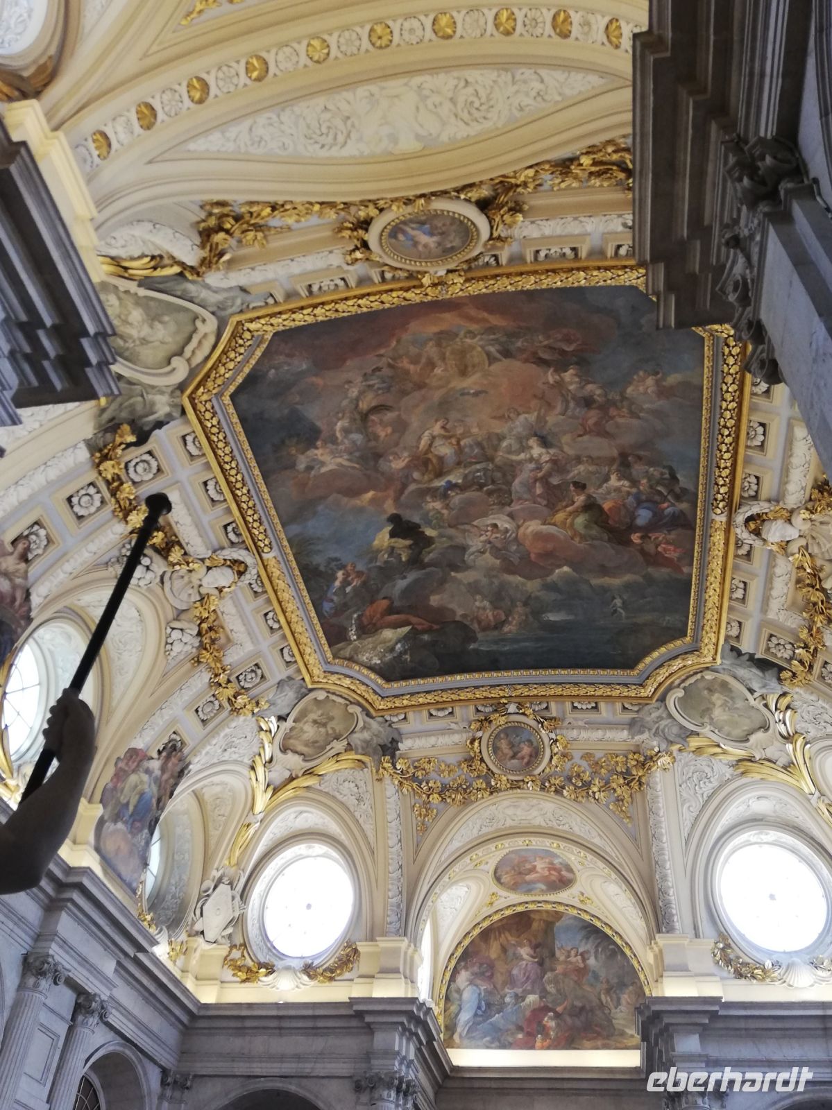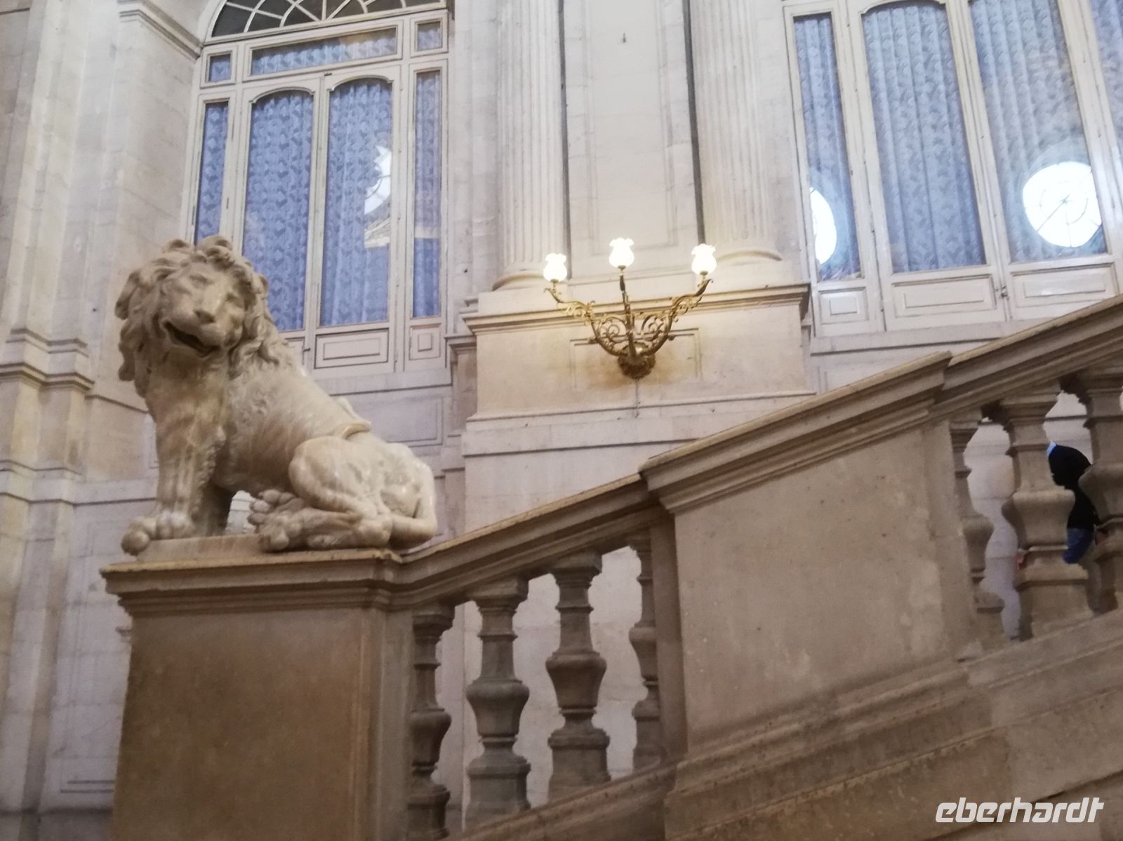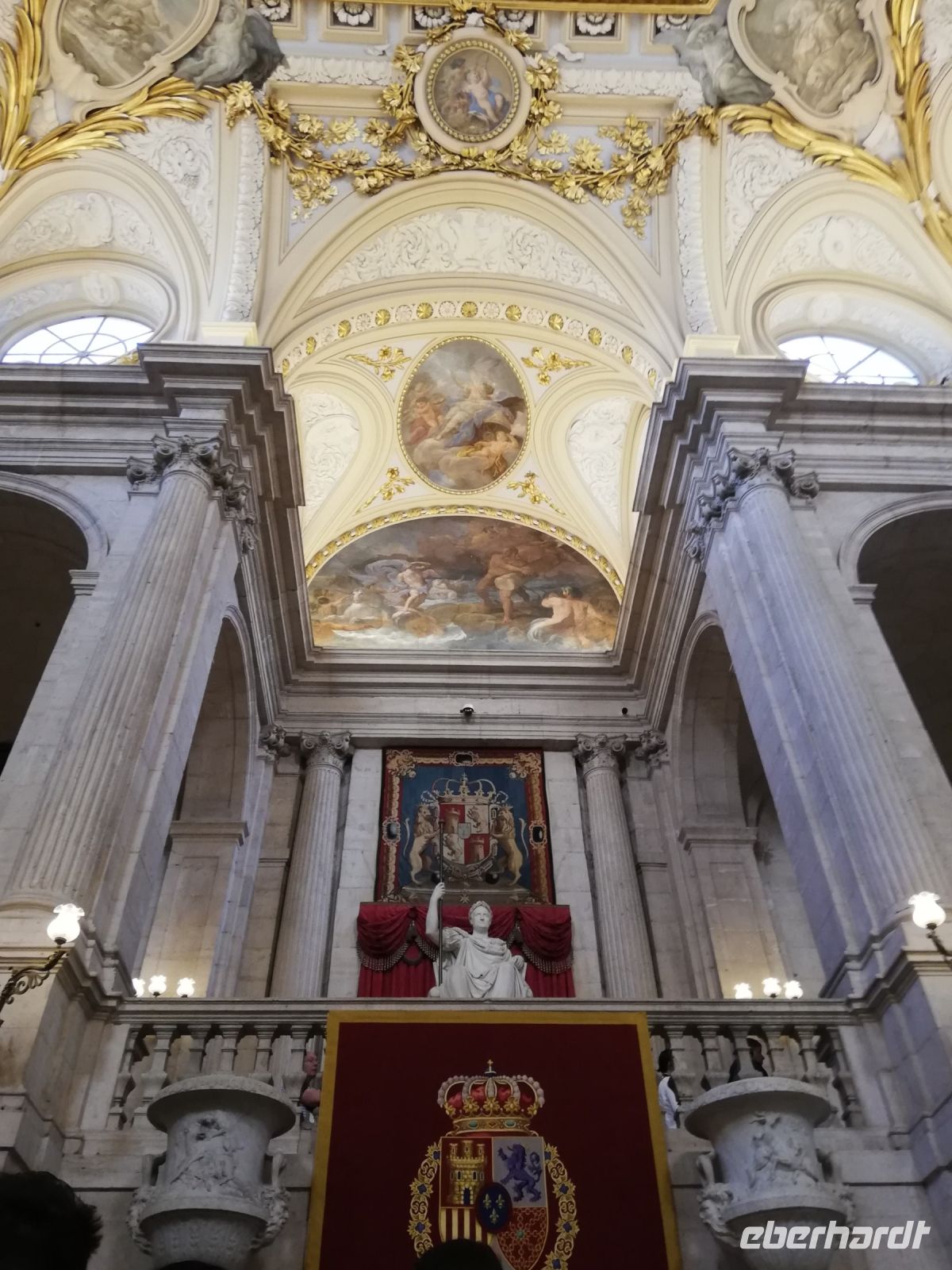 Wir beschreiten über die mondänen Treppen die ersten Säle und besichtigen einen Saal nach dem anderen und kamen aus dem Staunen gar nicht raus. Überwältigender Prunk, Gold, Seidentapeten, Statuen und die wunderschöne Luster schmücken auf unterschiedliche Weise die Säle. Einige davon werden auch heute noch von Königsfamilie für die Staatsempfänge genutzt. Hier in den historischen Palacio wurde auch der Beitritt Spaniens zur EU im Jahre 1984 unterzeichnet.