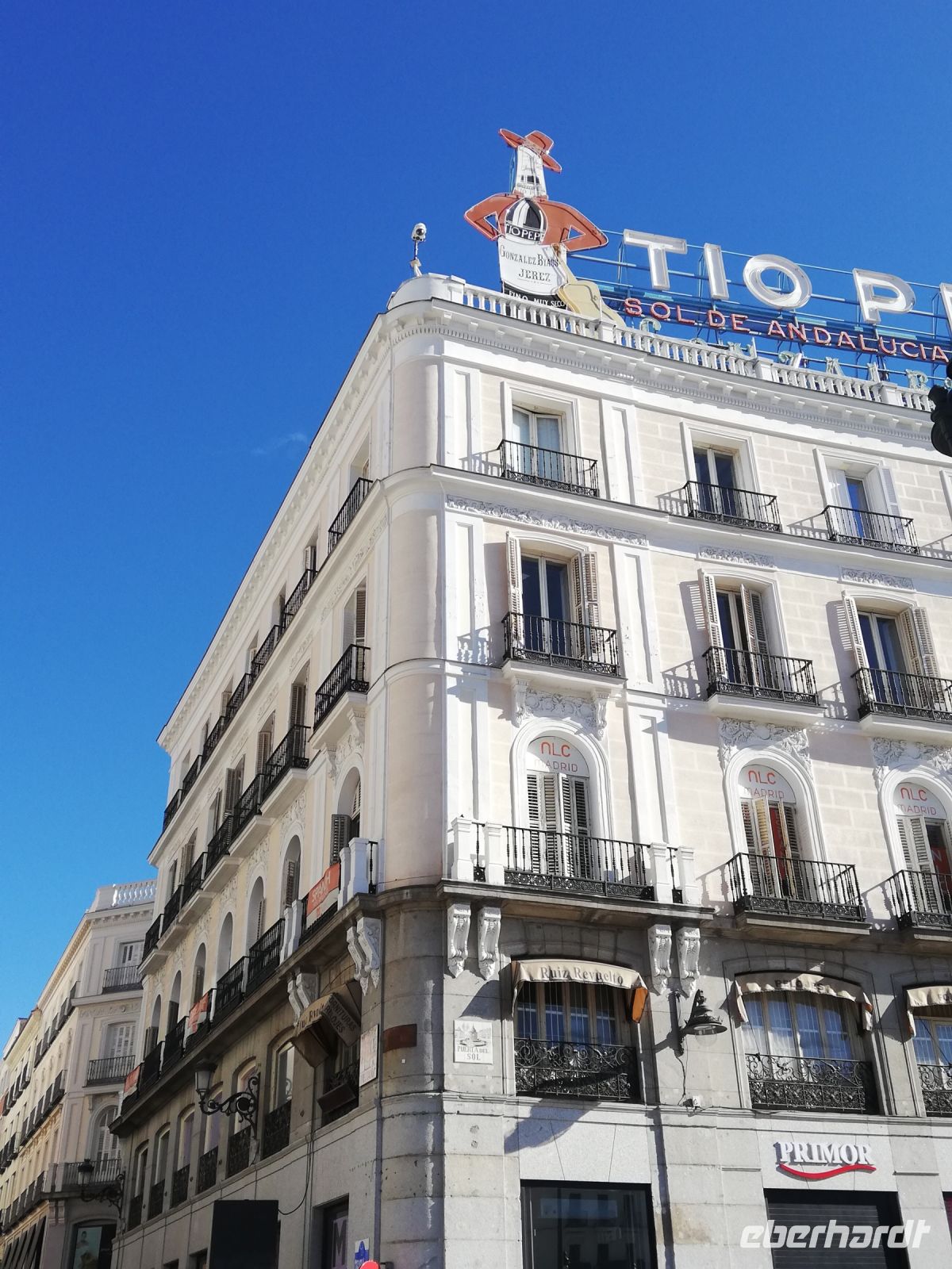 „El letrero de Schweppes“, Cine Callao, mit mehr als 1.200 Sitzplätzen das größte Kino und zu Puerta del Sol. „Puerta del Sol“ als altes Stadttor mit Sinnensymbol existiert seit dem 16. Jahrhundert nicht mehr – der Name ist geblieben. Heute ist es ein soziales Zentrum der Stadt. An dem Glockenturm des früheren Postamtes feiern die Madrilenen bei den letzten 12 Glockenschlägen das Ende des Jahres, indem man bei jedem Glockenschlag eine Traube essen muss.