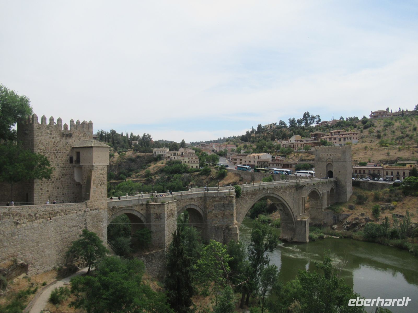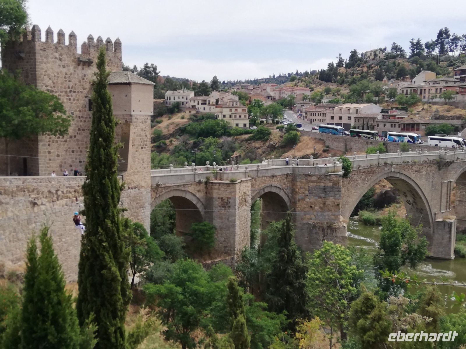 So verlassen wir voller Eindrücke langsam die Altstadt und laufen zu der „Alcantara Brücke“ einer römischen Steinbogenbrücke. Hier können wir den mutigen Jugendlichen die mit Seilschlitten – „Fly Toledo“ über die Schlucht schweben, zuschauen. Wir laufen lieber zu Fuß über die Brücke – noch die schönen Bilder in unsere Handys oder Fotoapparate einfangen, um die wunderschönen Bilder von Toledo als Erinnerung zu verewigen. Der Bus wartete dort schon auf uns.