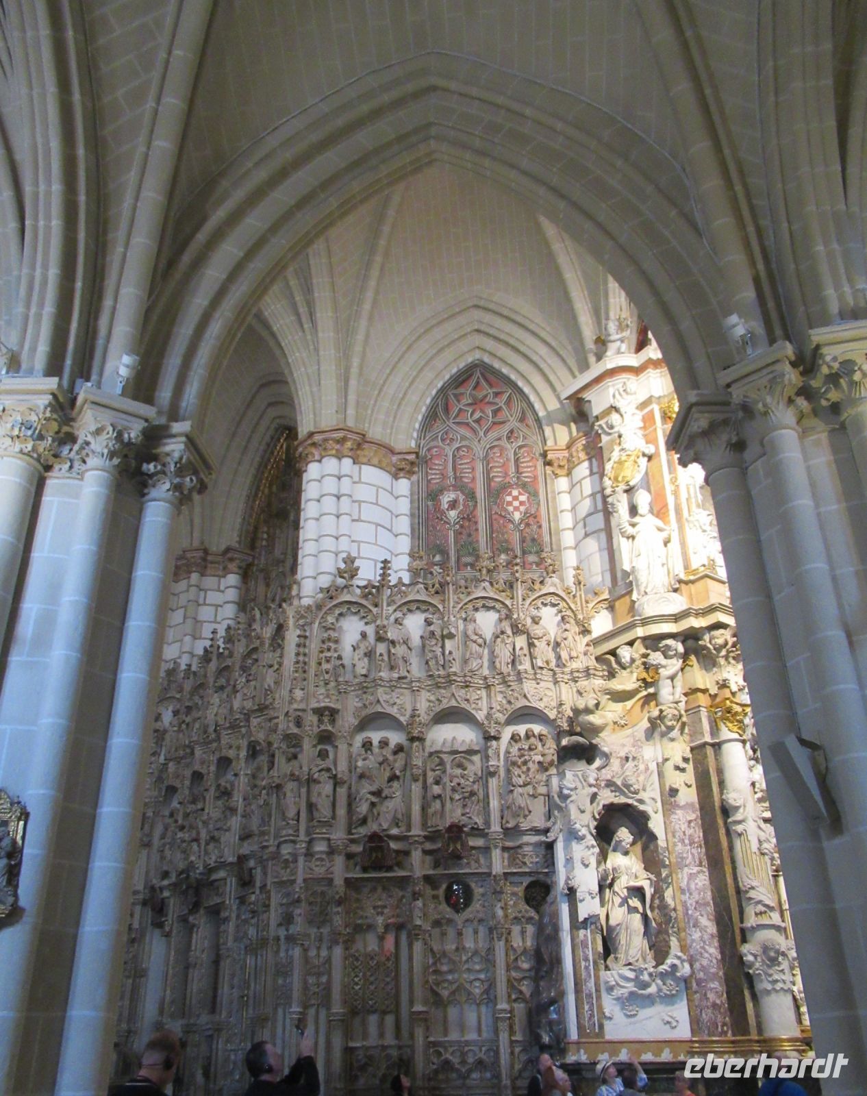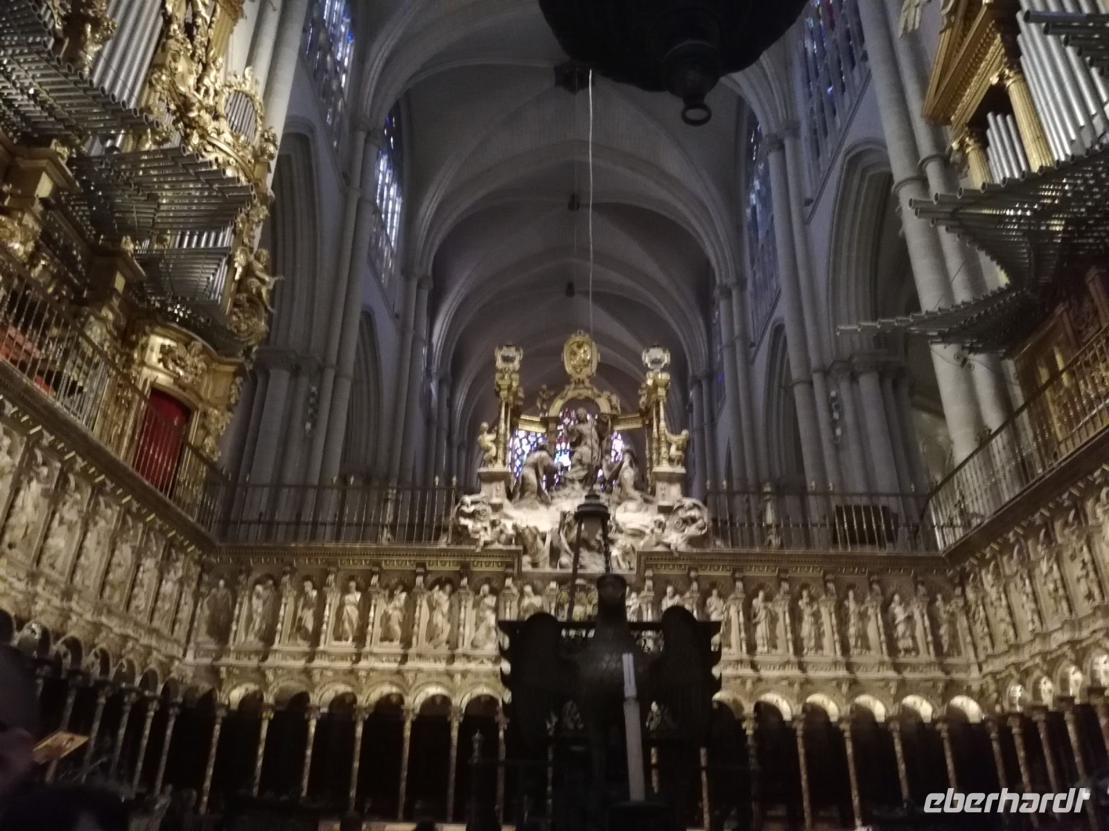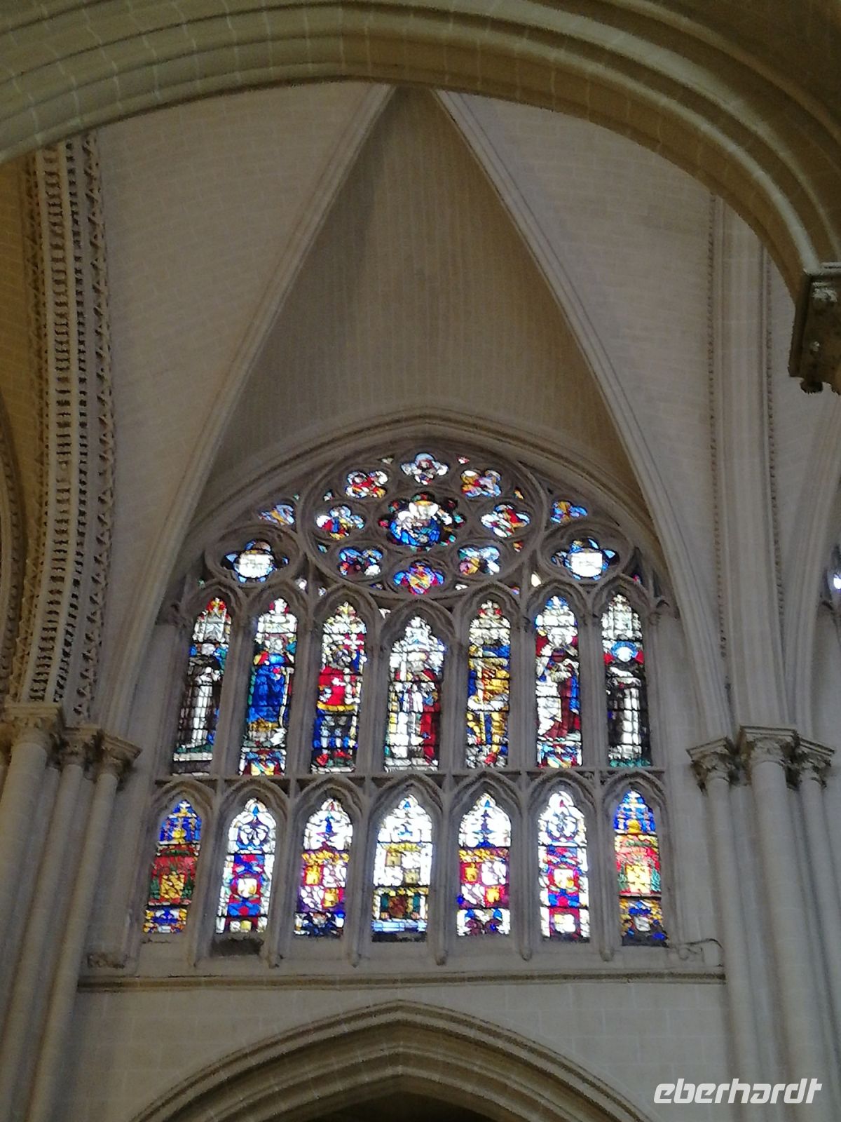 Wir schlendern weiter durch die verwinkelten Gassen der Altstadt und gelangen zu der Kathedrale Santa María. Die Kirche hat gewaltige Ausmaße: 112 m lang, 56 Meter breit und 44 Meter hoch. Die Kathedrale hat aufgrund der langen Bauzeit zwischen 1227 und 1493 unterschiedlicher Baustile, dennoch gilt sie als eine der wichtigsten gotischen Kirchen in Spanien. Die fünfschiffige Kathedrale mit zwei Orgeln gilt als zweitgrößte gotische Kathedrale in Spanien. Thomas erklärt uns die einzelnen Altäre und den Hauptaltar. Die Kirche hat 32 Kapellen. In der der Sakristei konnten wir die Werke von El Greco - „Entkleidung Christi“ und Werke von Goya, Ribera, Raffael und van Dyk bewundern.