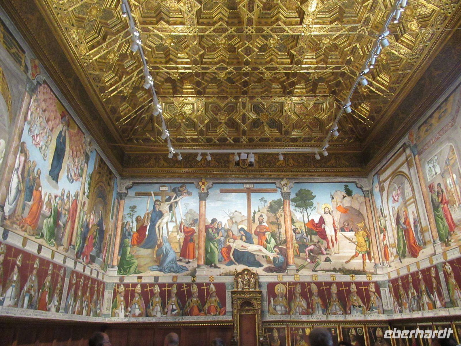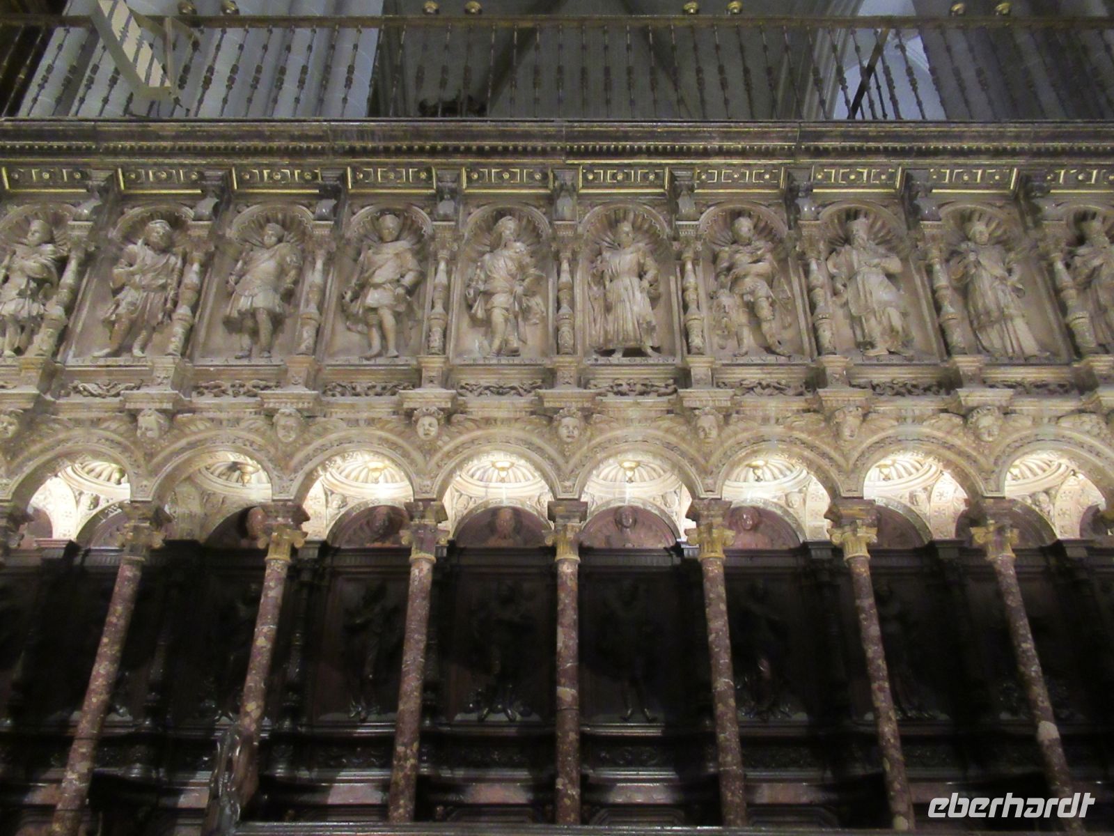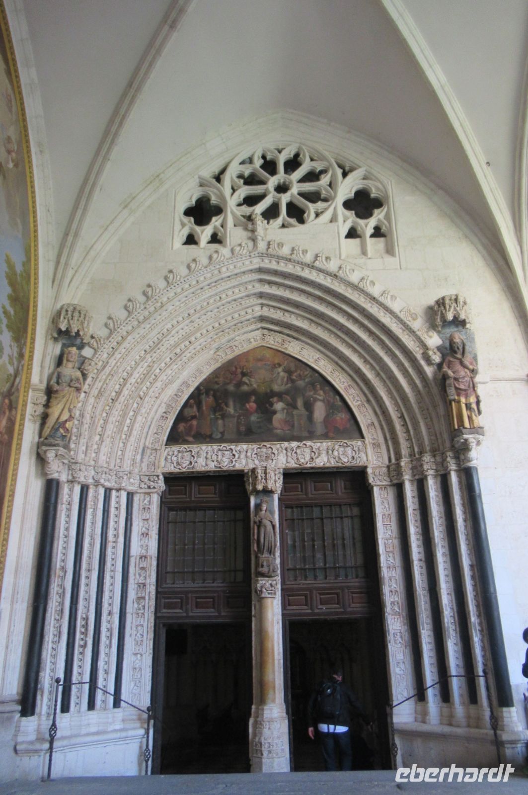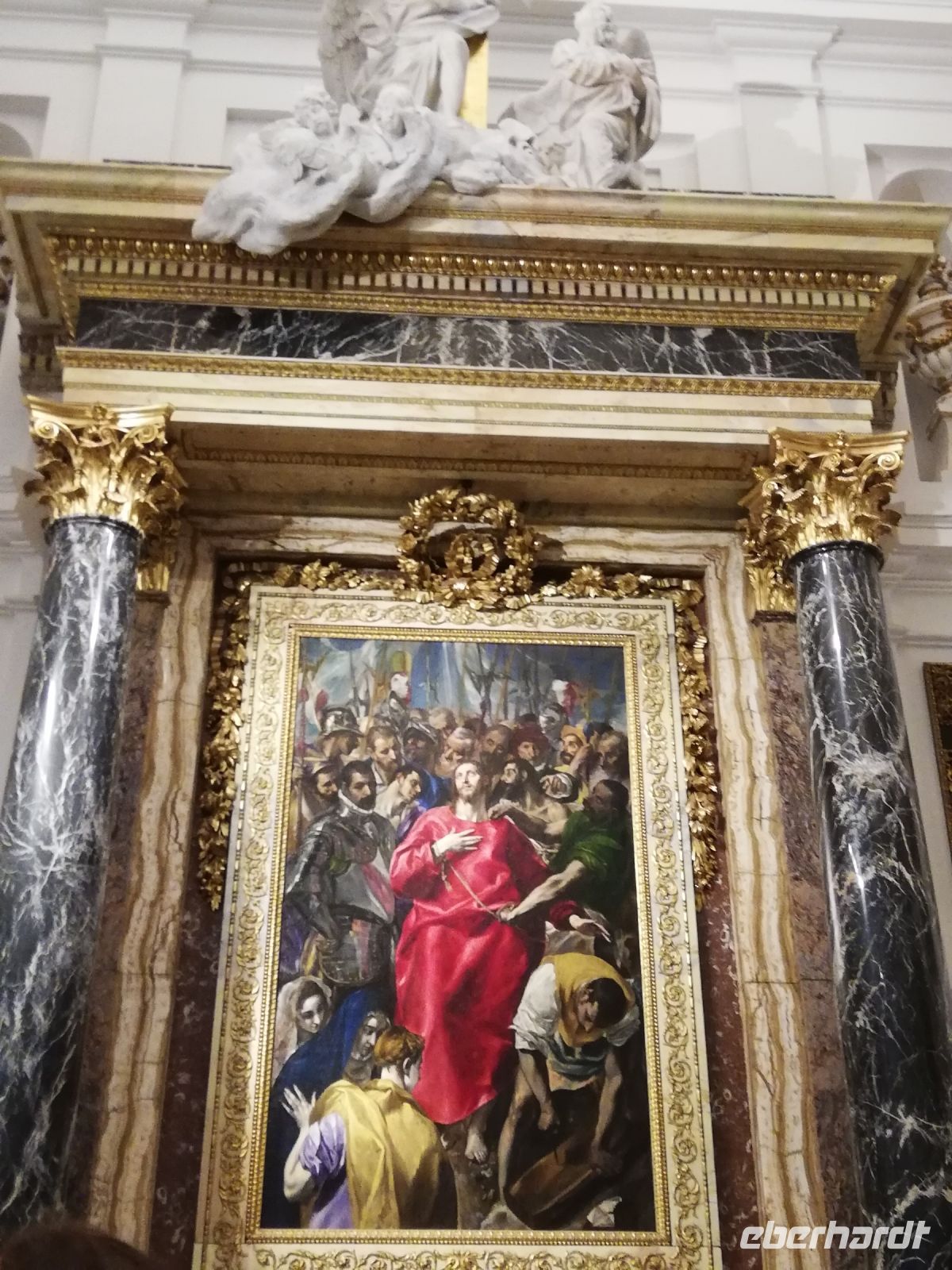 Wir schlendern weiter durch die verwinkelten Gassen der Altstadt und gelangen zu der Kathedrale Santa María. Die Kirche hat gewaltige Ausmaße: 112 m lang, 56 Meter breit und 44 Meter hoch. Die Kathedrale hat aufgrund der langen Bauzeit zwischen 1227 und 1493 unterschiedlicher Baustile, dennoch gilt sie als eine der wichtigsten gotischen Kirchen in Spanien. Die fünfschiffige Kathedrale mit zwei Orgeln gilt als zweitgrößte gotische Kathedrale in Spanien. Thomas erklärt uns die einzelnen Altäre und den Hauptaltar. Die Kirche hat 32 Kapellen. In der der Sakristei konnten wir die Werke von El Greco - „Entkleidung Christi“ und Werke von Goya, Ribera, Raffael und van Dyk bewundern.