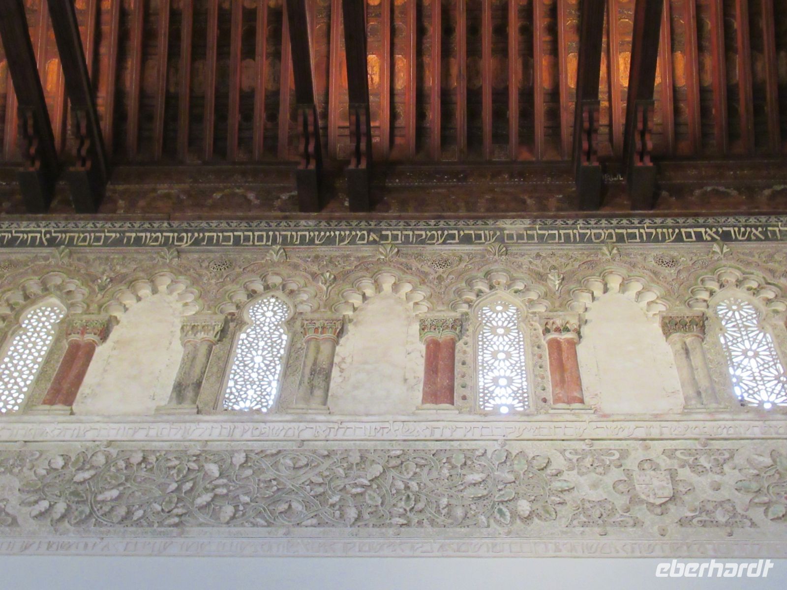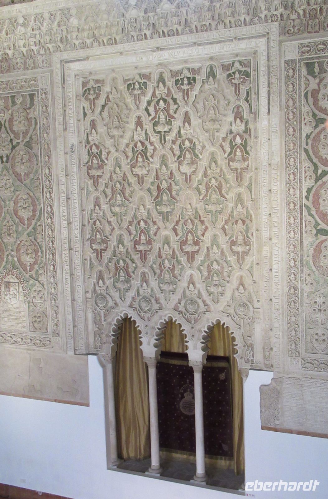 Nach einer sehr angenehmen Pause mit Mittagssnack in einem Café gehen wir weiter durch die Stadt, und besuchen die jüdische Synagoge und Museum im ehemaligen Judenviertel - Juderia „Sinagoga del Tránsito“. In der „Sinagoga“ konnten wir die wunderschönen maurische Stuckarbeiten und Fenster bewundern. Die Synagoge wurde im 1356-1357 erbaut. Seit 1964 befindet sich in der ehemaligen Synagoge das „Museo Sefardí“, ein Museum zur Geschichte der Juden in Spanien.