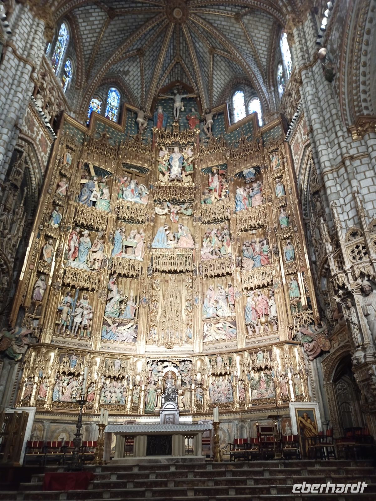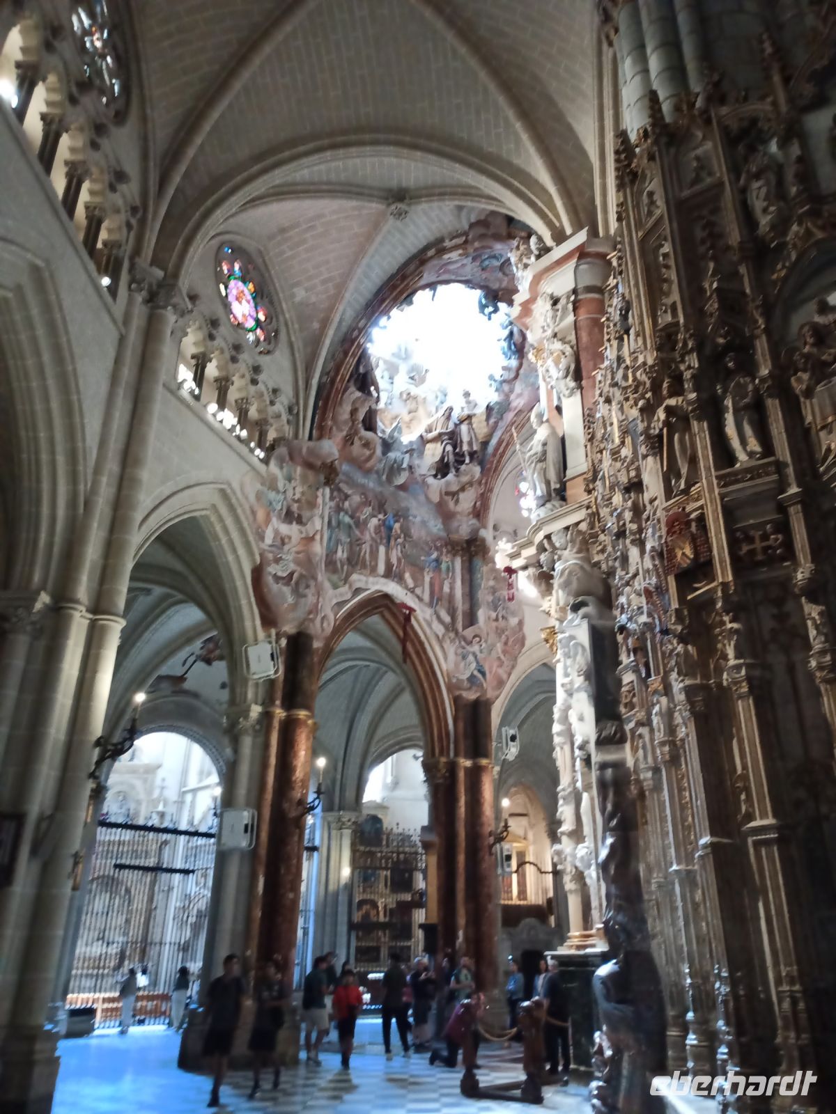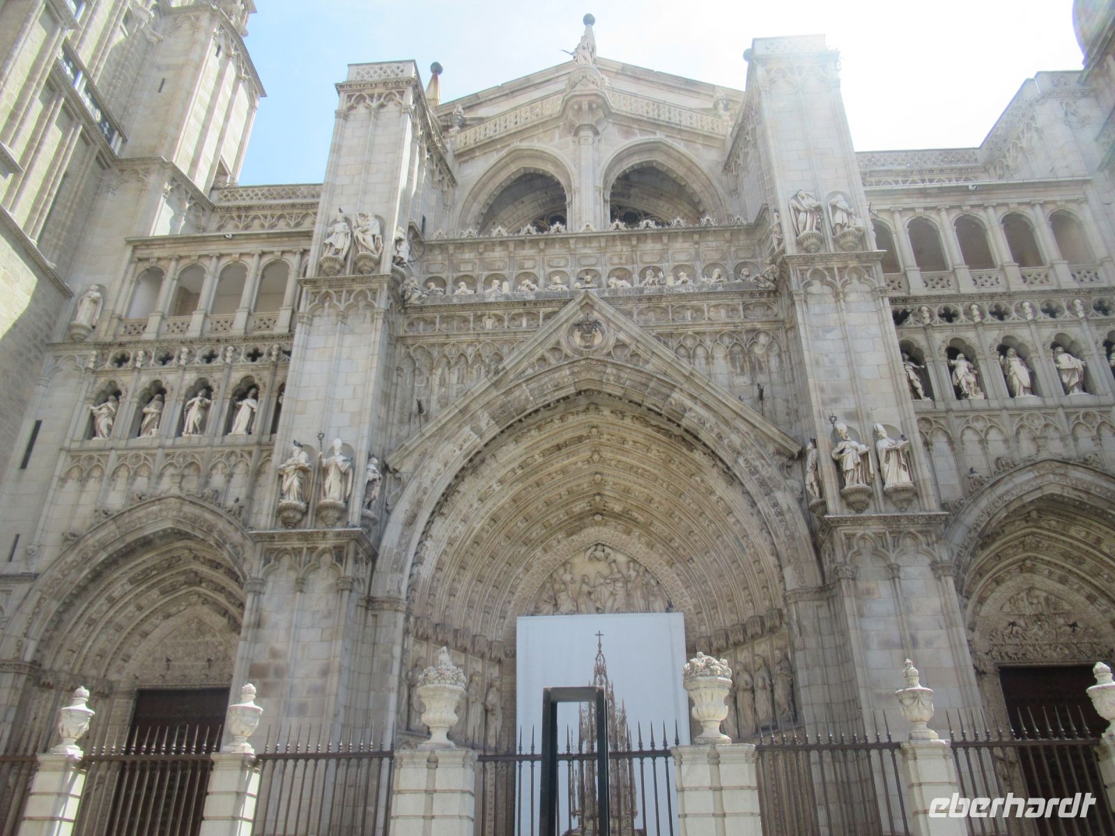 Unser Rundgang führt uns schließlich auf den Hauptplatz vor die Kathedrale von Toledo - Catedral Primada de Santa María de Toledo, die als eine der bedeutendsten gotischen Kathedralen Spaniens gilt. Der Bau begann im Jahr 1226 auf den Resten einer früheren Moschee und dauerte über zwei Jahrhunderte. Die Kathedrale ist ein Meisterwerk gotischer Baukunst mit späteren Renaissance- und barocken Ergänzungen. Sie beherbergt beeindruckende Altäre, Kapellen, Gemälde von El Greco, Velázquez und Goya – und wirkt mit ihren vielen Seitenschiffen und Anbauten fast wie eine eigene Stadt innerhalb der Stadt.
