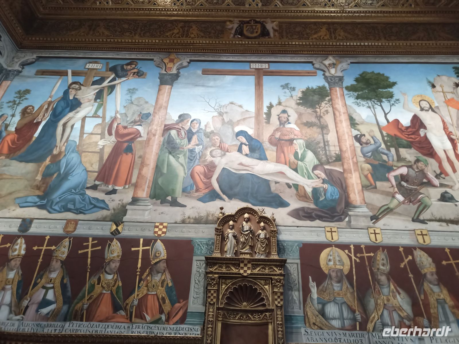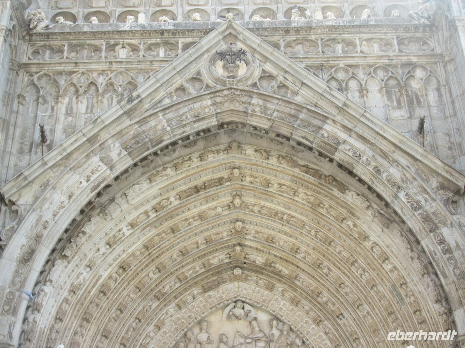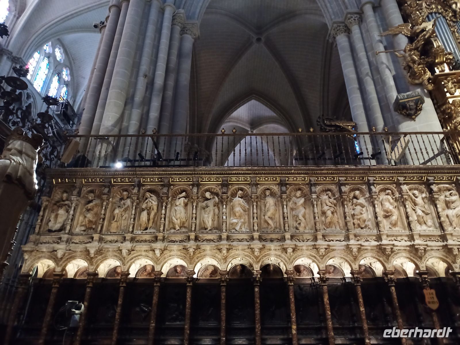 Unser Rundgang führt uns schließlich auf den Hauptplatz vor die Kathedrale von Toledo - Catedral Primada de Santa María de Toledo, die als eine der bedeutendsten gotischen Kathedralen Spaniens gilt. Der Bau begann im Jahr 1226 auf den Resten einer früheren Moschee und dauerte über zwei Jahrhunderte. Die Kathedrale ist ein Meisterwerk gotischer Baukunst mit späteren Renaissance- und barocken Ergänzungen. Sie beherbergt beeindruckende Altäre, Kapellen, Gemälde von El Greco, Velázquez und Goya – und wirkt mit ihren vielen Seitenschiffen und Anbauten fast wie eine eigene Stadt innerhalb der Stadt.