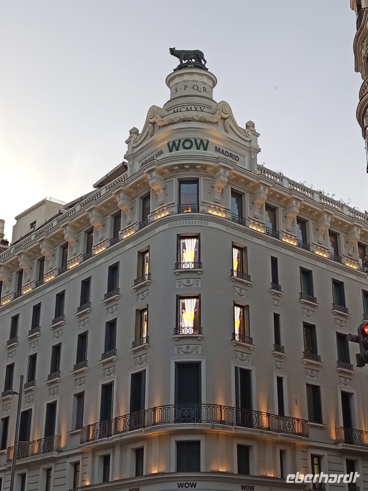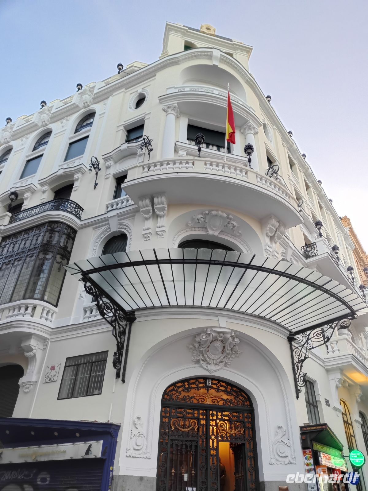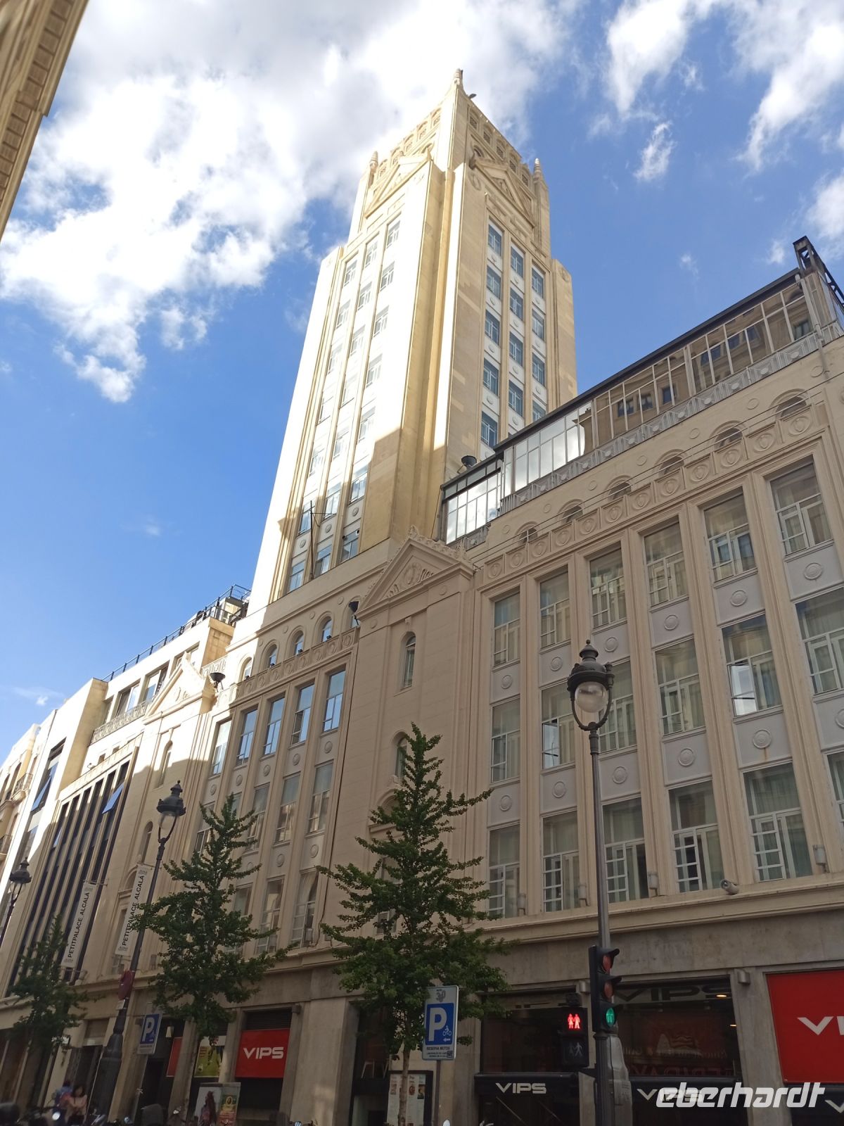 Weiter entlang der Straße bewunderten wir die eleganten Fassaden zahlreicher Hotels, Theater und Bürogebäude, viele im Stil des Eklektizismus, Jugendstils oder Art Déco gehalten, sowie das markante Telefónica-Gebäude, eines der ersten Hochhäuser Europas, das mit seinem nüchternen Stil an amerikanische Wolkenkratzer erinnert.