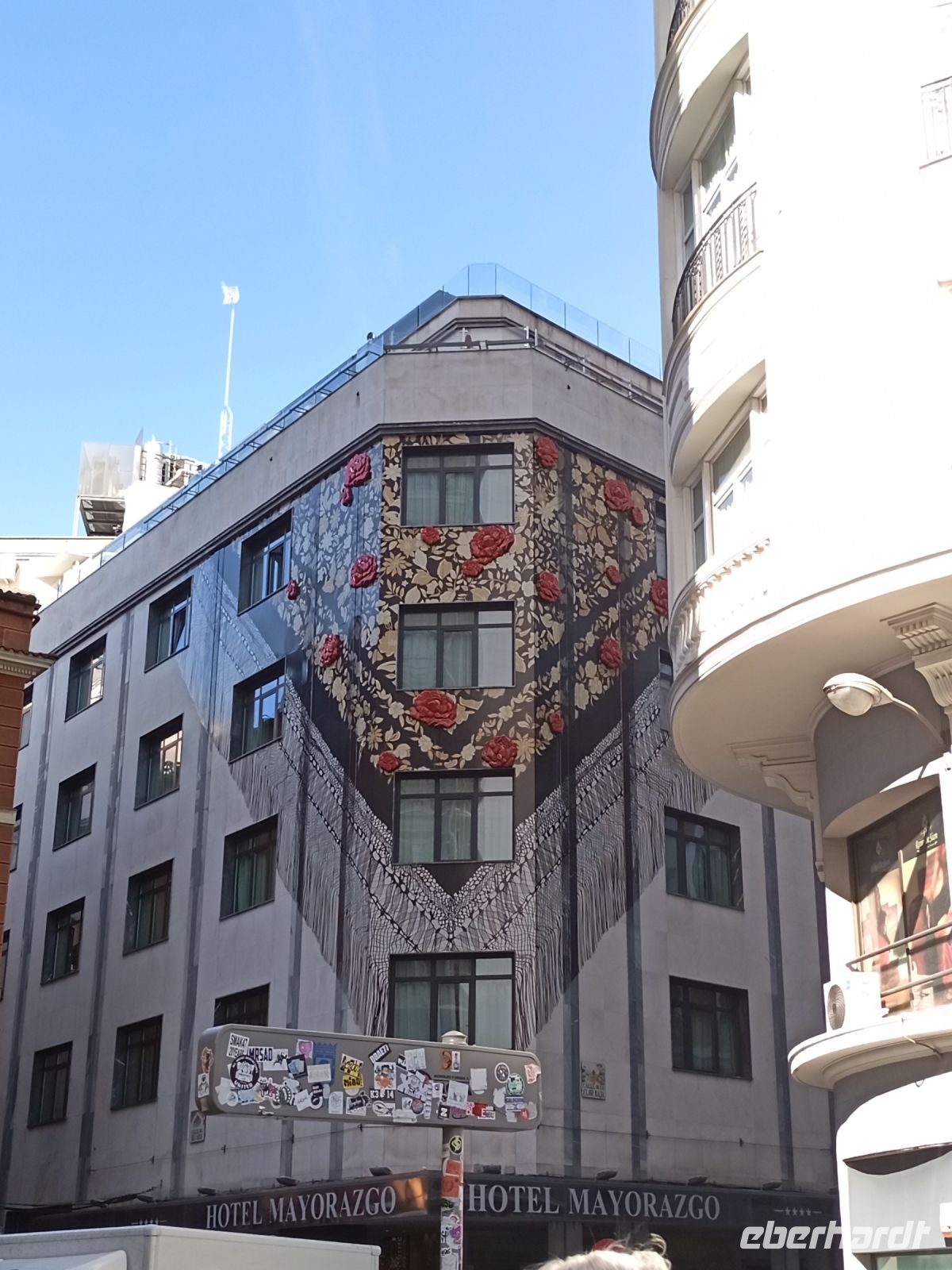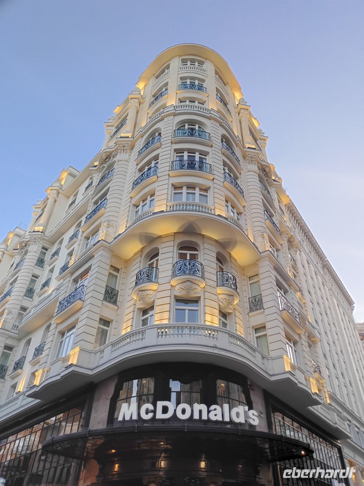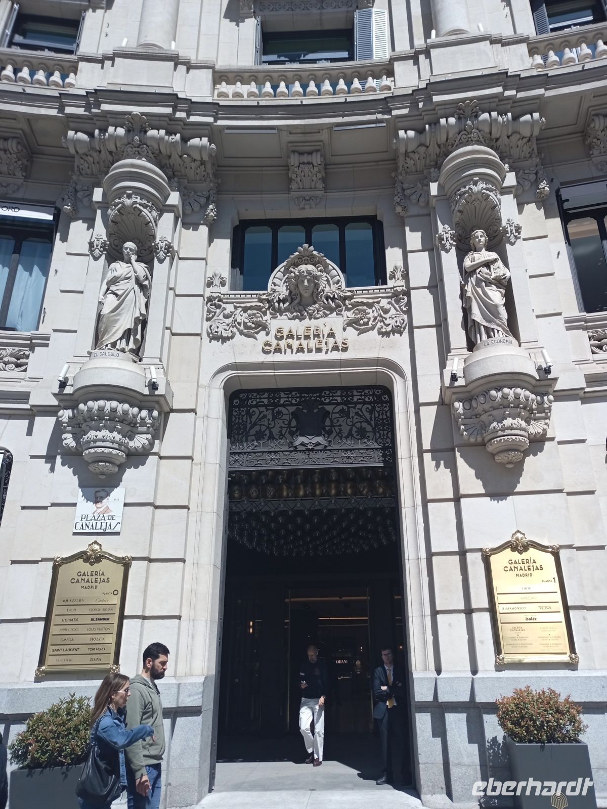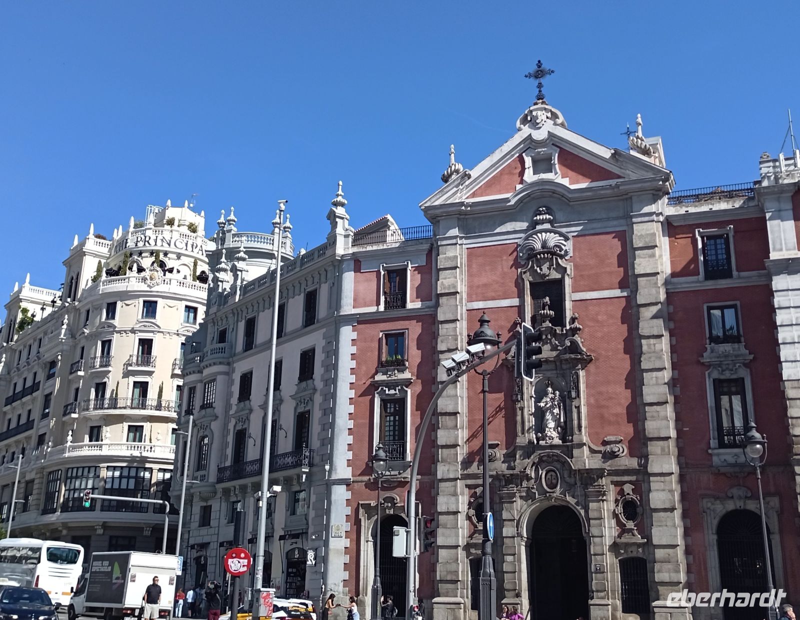 Weiter entlang der Straße bewunderten wir die eleganten Fassaden zahlreicher Hotels, Theater und Bürogebäude, viele im Stil des Eklektizismus, Jugendstils oder Art Déco gehalten, sowie das markante Telefónica-Gebäude, eines der ersten Hochhäuser Europas, das mit seinem nüchternen Stil an amerikanische Wolkenkratzer erinnert.