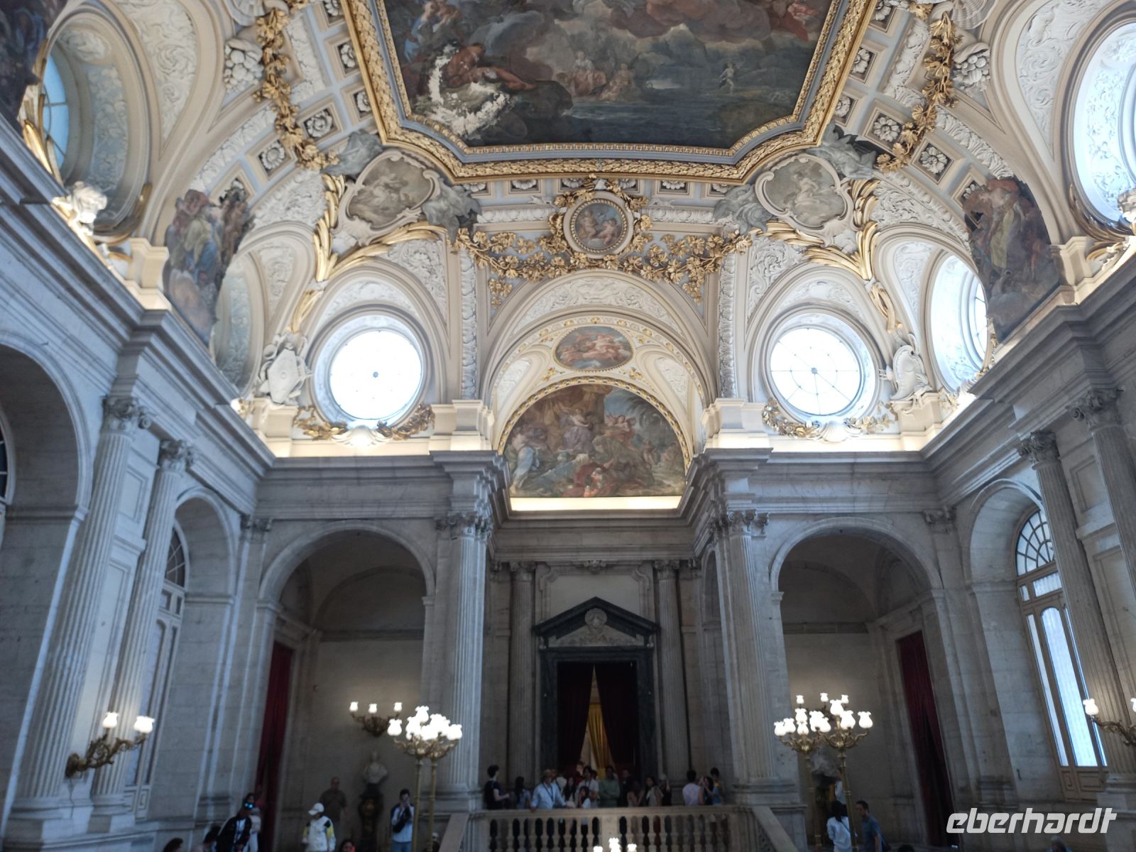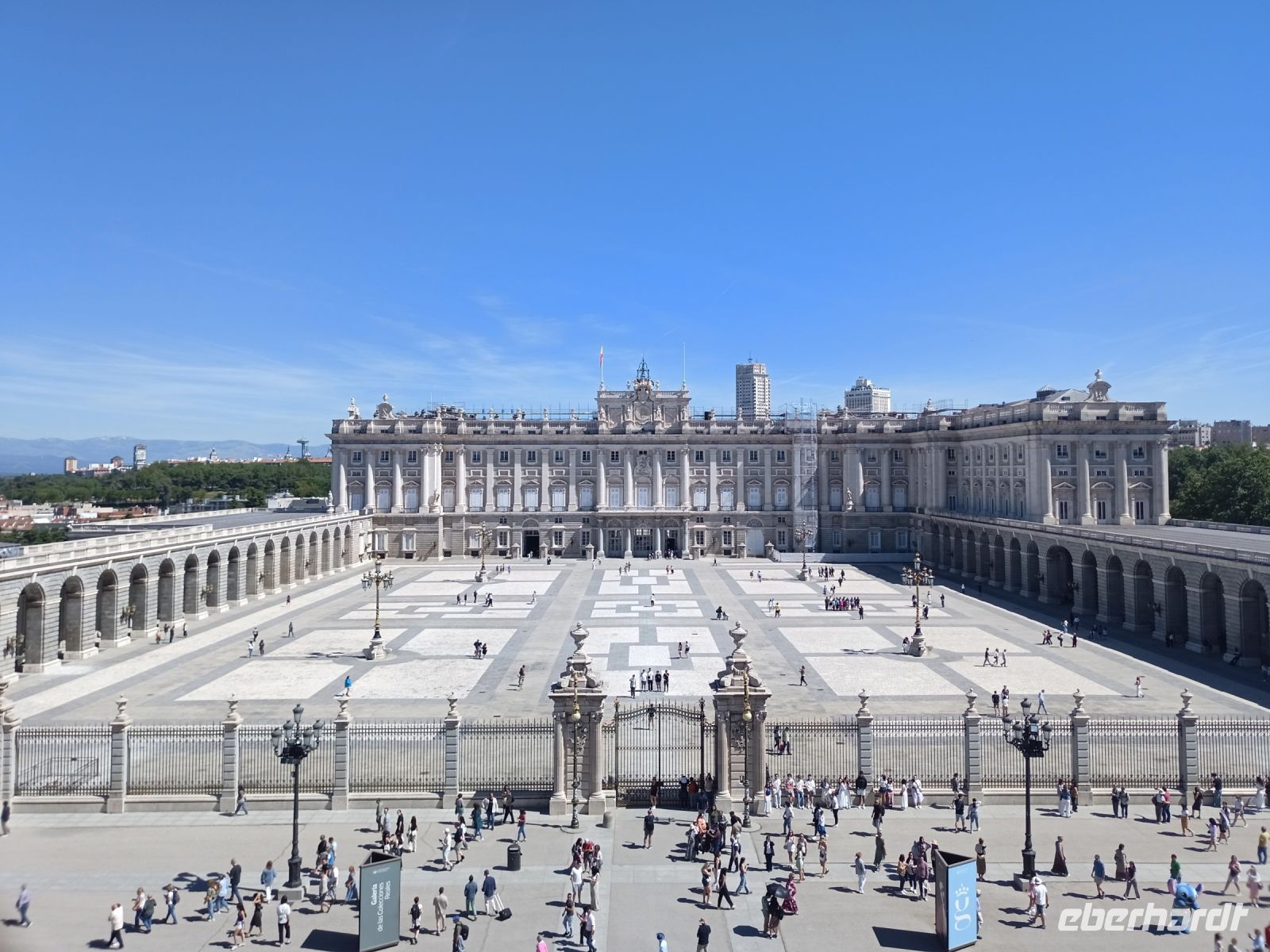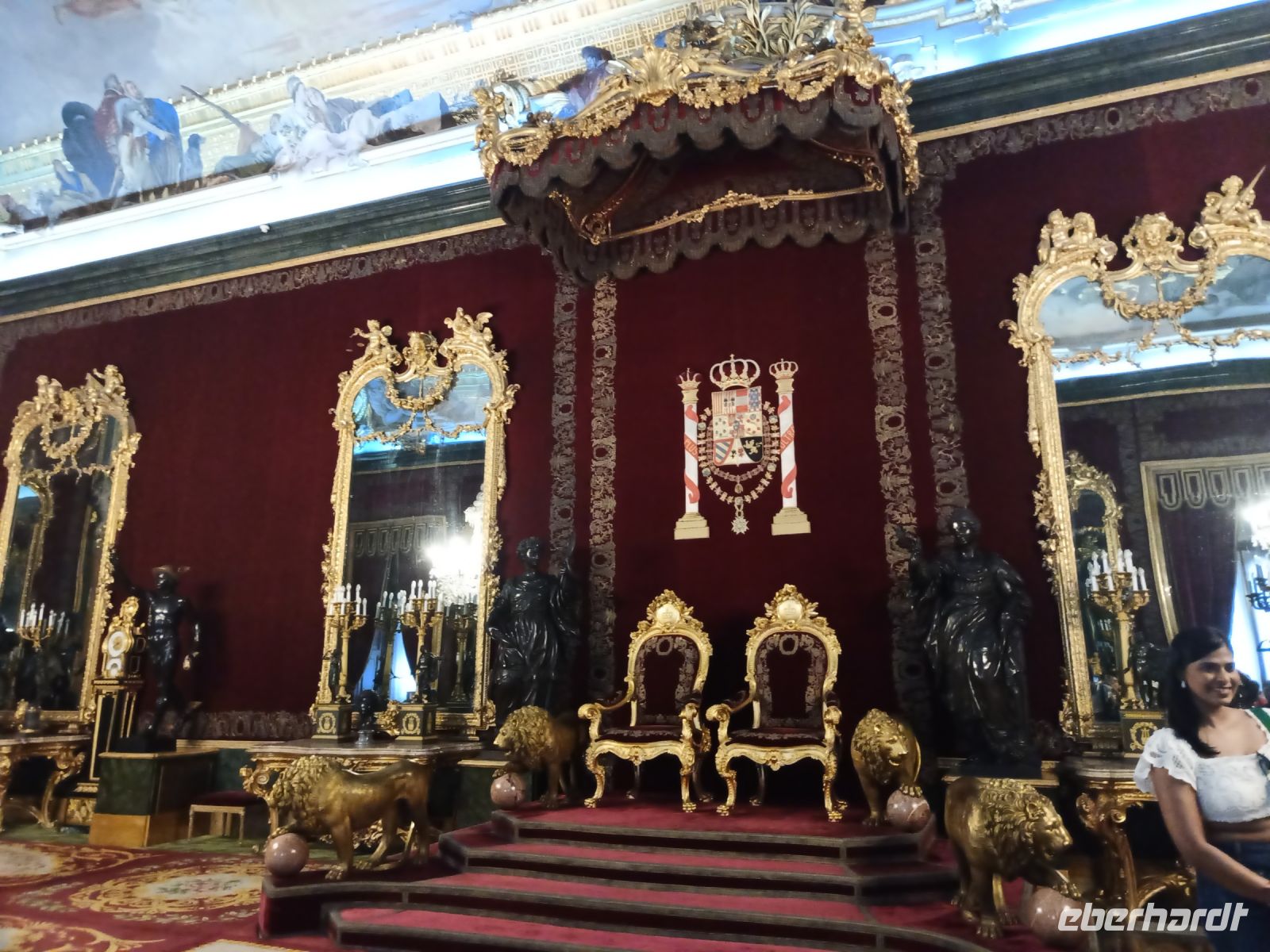 Da der Palast an den Tagen zuvor geschlossen war, ist der Andrang heute groß. Dennoch gelingt es uns, die kunstvollen Marmorböden, Seidentapeten, vergoldeten Möbel und zahlreichen Gemälde in Ruhe zu betrachten. Werke berühmter Künstler wie Velázquez, Goya und Caravaggio schmücken die Wände und geben einen Einblick in die kulturelle Bedeutung des spanischen Königshauses.