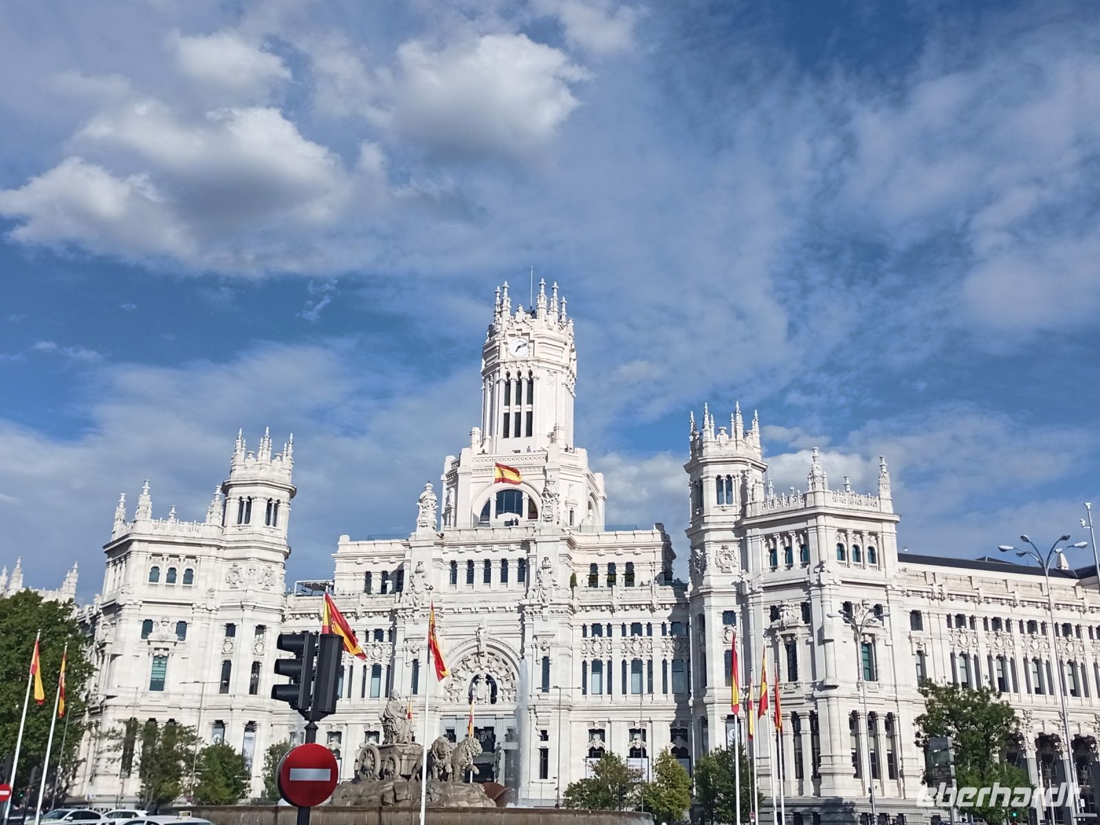 Weiter ging es über die elegante Calle de Alcalá, wo wir die eindrucksvolle Architektur der umliegenden Gebäude bewunderten. Vorbei am Haus von Cervantes und entlang der Banco de España erreichten wir schließlich die prachtvolle Plaza de Cibeles. In strahlender Sonne erstrahlte der Platz in voller Schönheit – ein lebendiger Verkehrsknotenpunkt und zugleich ein architektonisches Highlight Madrids. Ein prachtvolles Gebäude mit markanter neogotischer Fassade, das ursprünglich als zentraler Post- und Telegrafenpalast errichtet wurde. Seit 2007 dient es als Rathaus von Madrid.