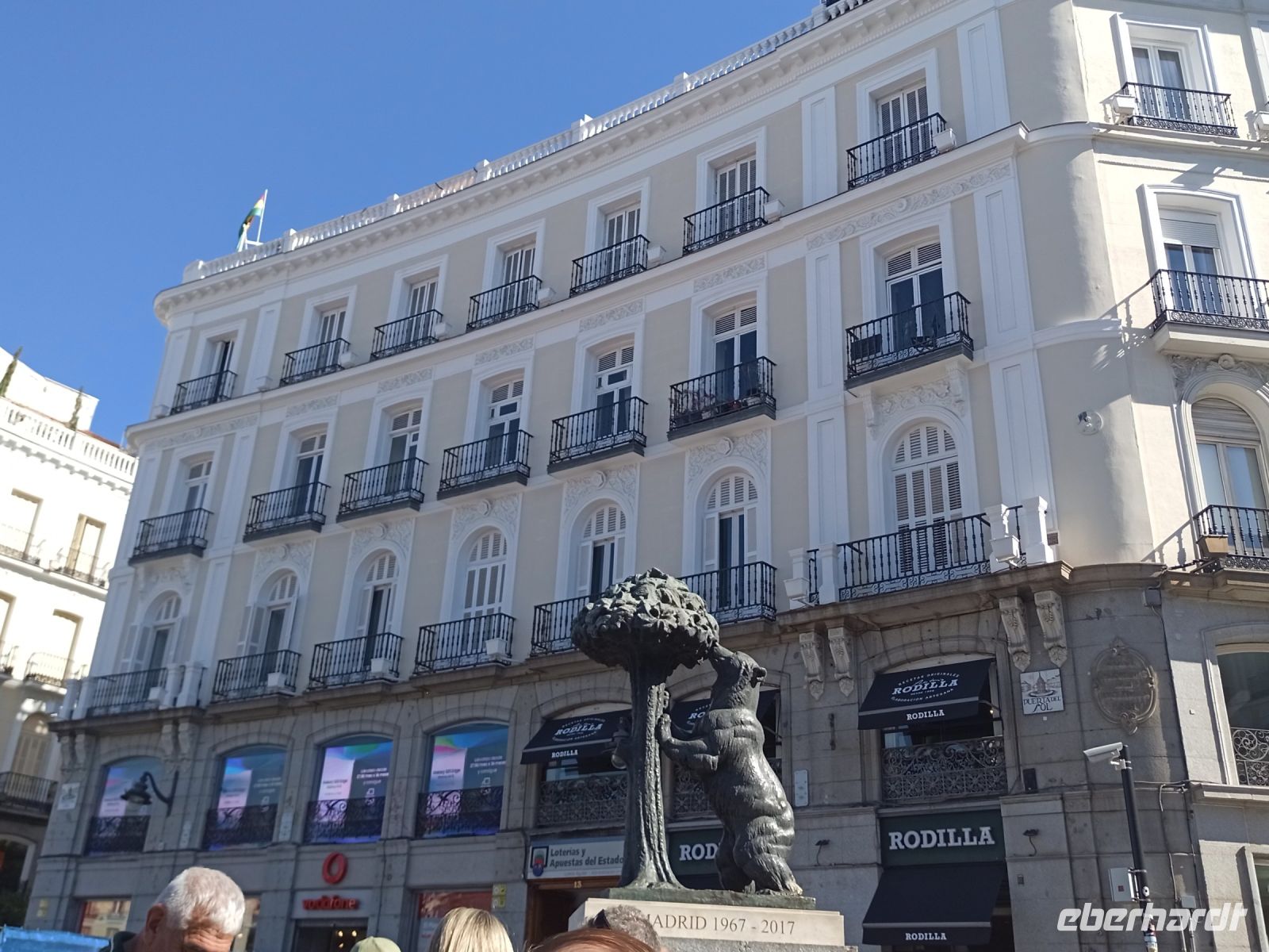 berühmte Null-Kilometer-Zeichen, von den Touristen heiß begehrt…sowie das bekannte Wahrzeichen "El Oso y el Madroño" – der Bär mit dem Erdbeerbaum.