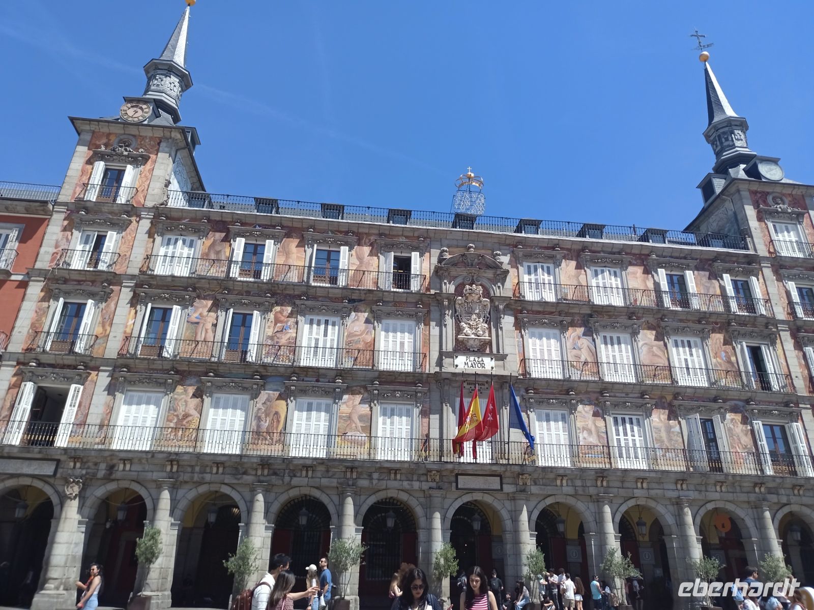 Zurück in der Innenstadt machen wir eine kleine Pause in einer gemütlichen Caféteria an der Plaza de Canalejas, in der Nähe der Plaza Mayor. Nach der erholsamen Pause erreichen wir schließlich die berühmte Plaza Mayor.