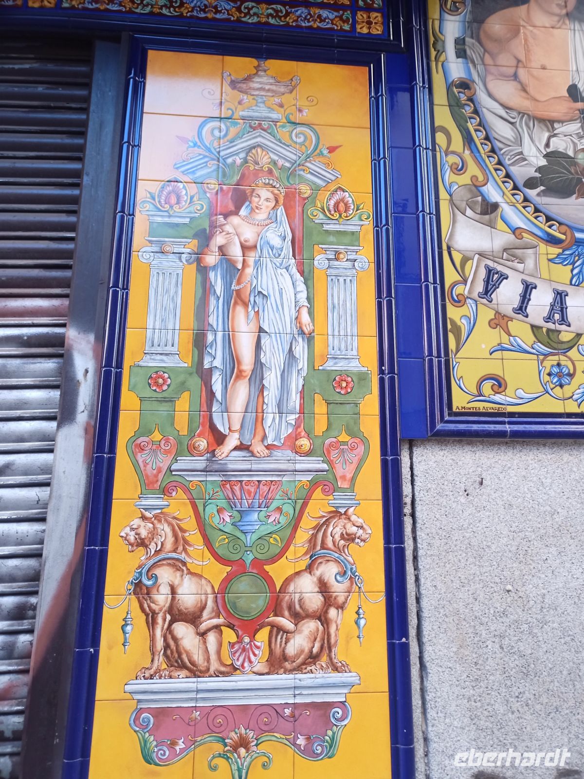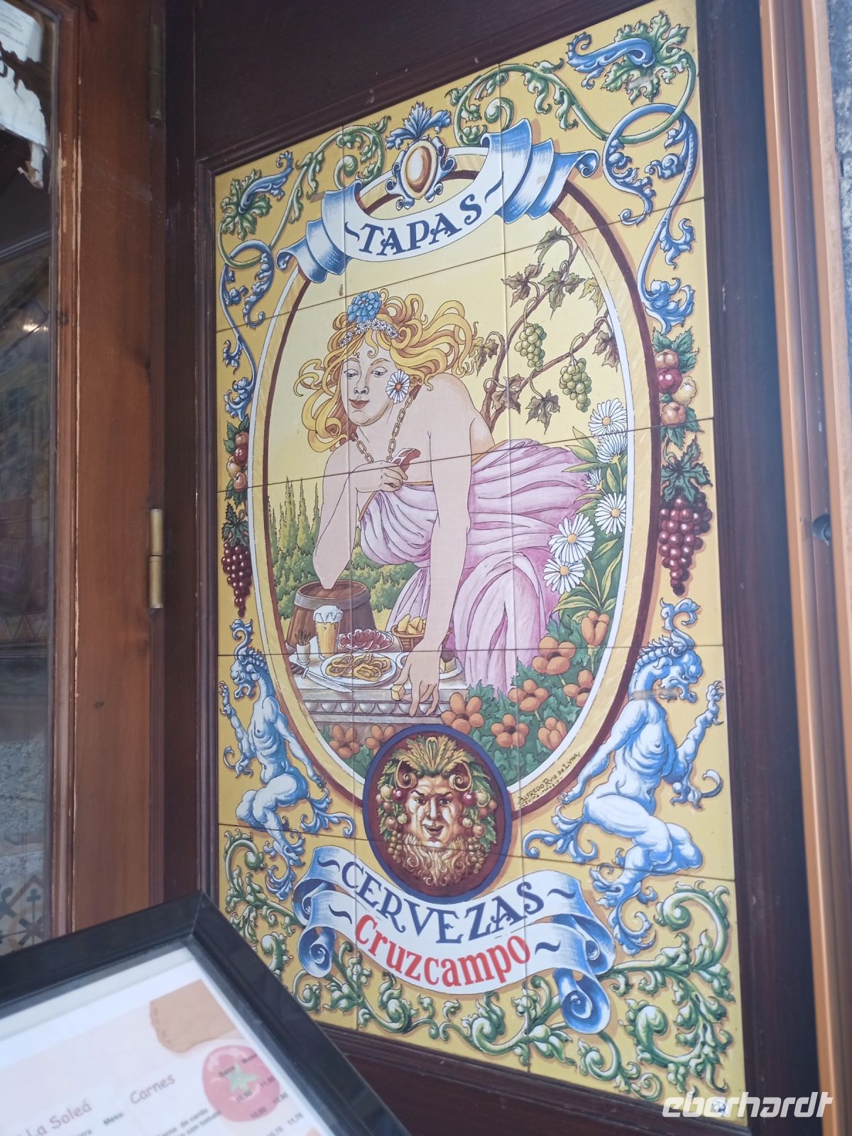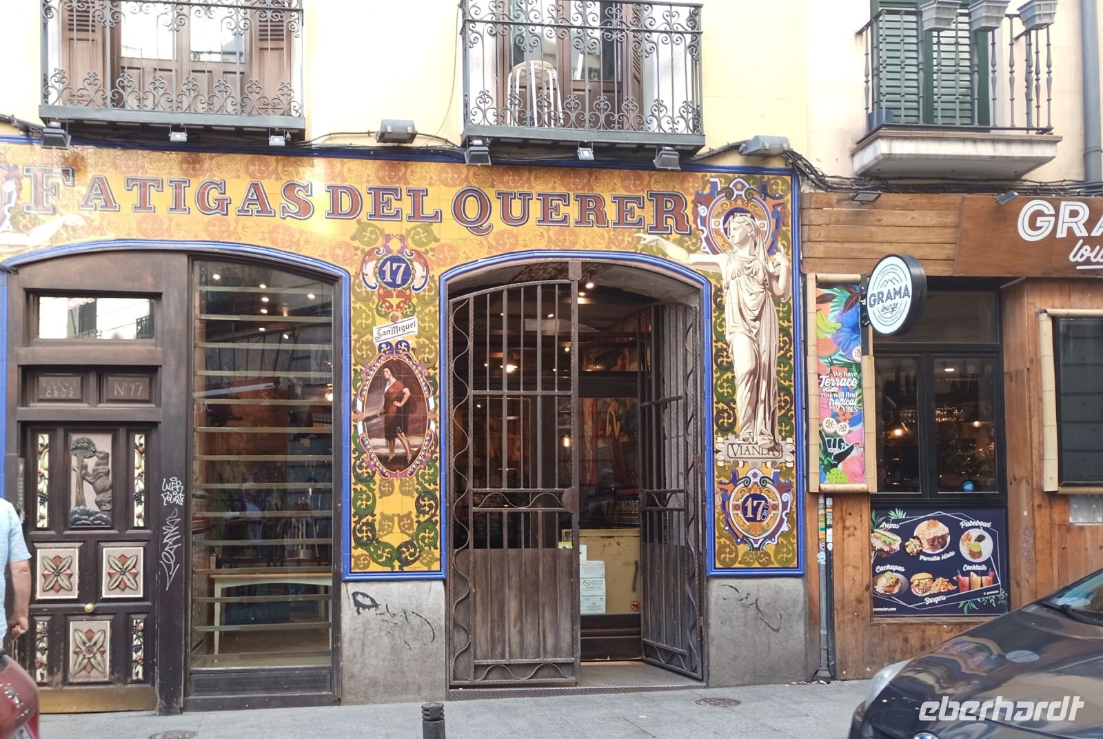 Besonders beeindruckt sind wir von dem Restaurant Fatigas del Querer, dessen wunderschöne Fliesenfassade die Blicke auf sich zieht. Thomas erzählt uns von den zahlreichen Zünften, die hier früher ansässig waren: Messerschmiede in der Calle de los Cuchilleros, Gerber, Goldschmiede und andere Handwerker, deren Gewerbe teilweise bis heute erhalten geblieben sind.