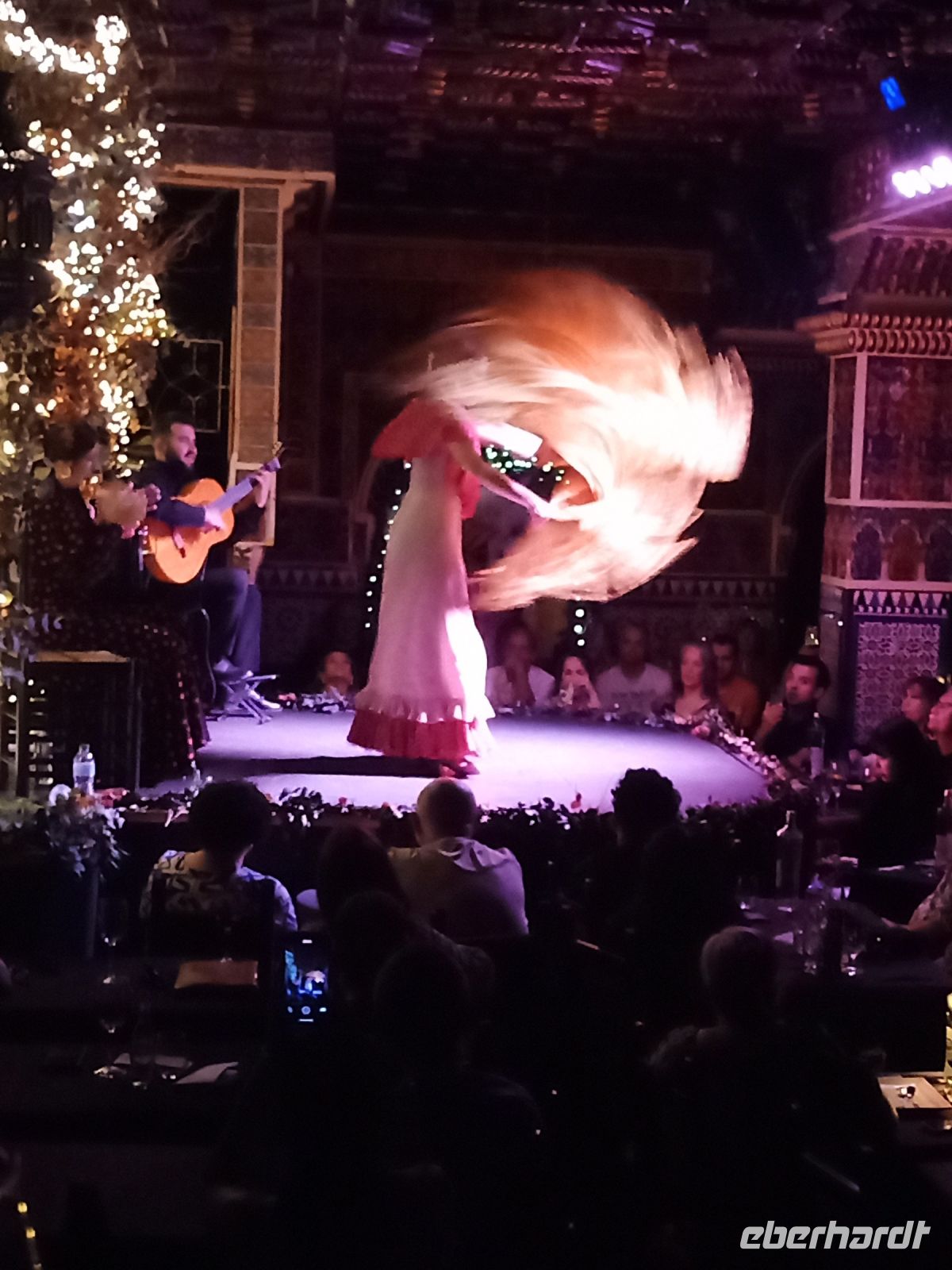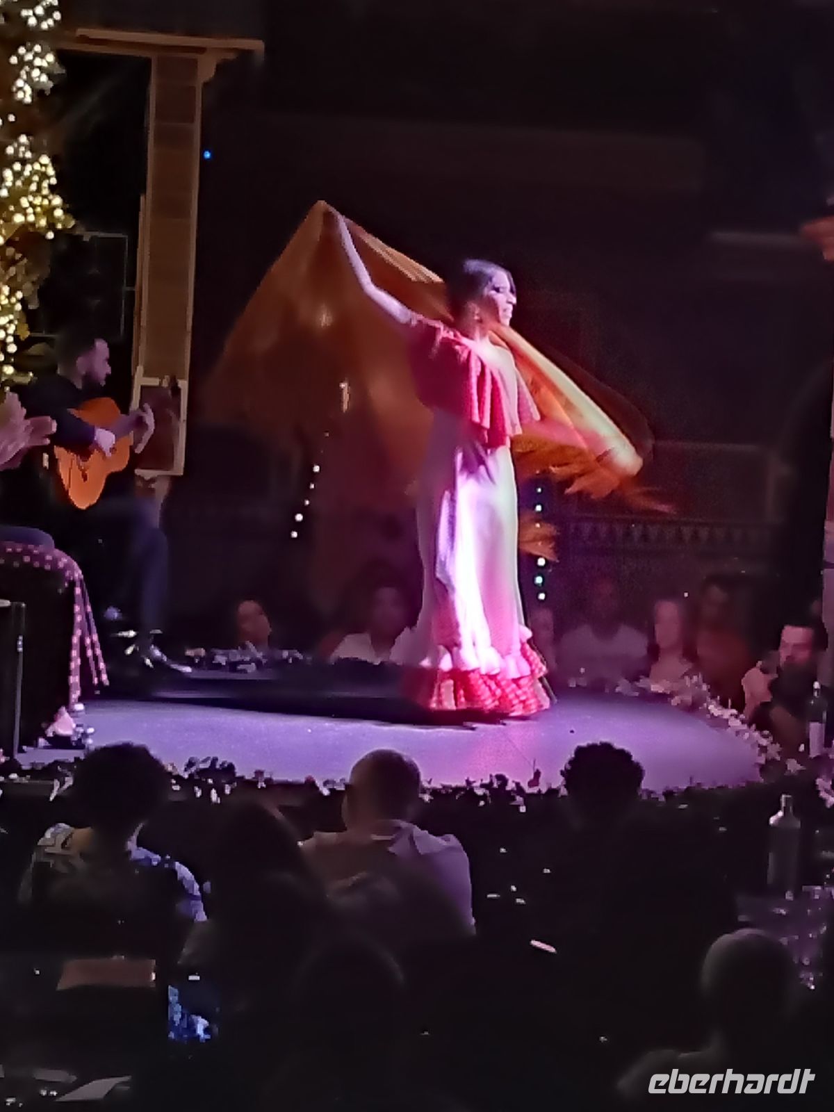 Um 16 Uhr geht es weiter mit einem kulturellen Höhepunkt: einer Flamenco-Show in Las Tablas Rebajadas. Das historische Gebäude, in dem die Show stattfindet, ist reich verziert mit traditionellen Fliesen. Wir nehmen unsere Plätze ein, bestellen Getränke und lassen uns von den Tänzerinnen und Gitarristen mitreißen. Eine beeindruckende Darbietung voller Leidenschaft, Energie und ausdrucksstarker Musik.