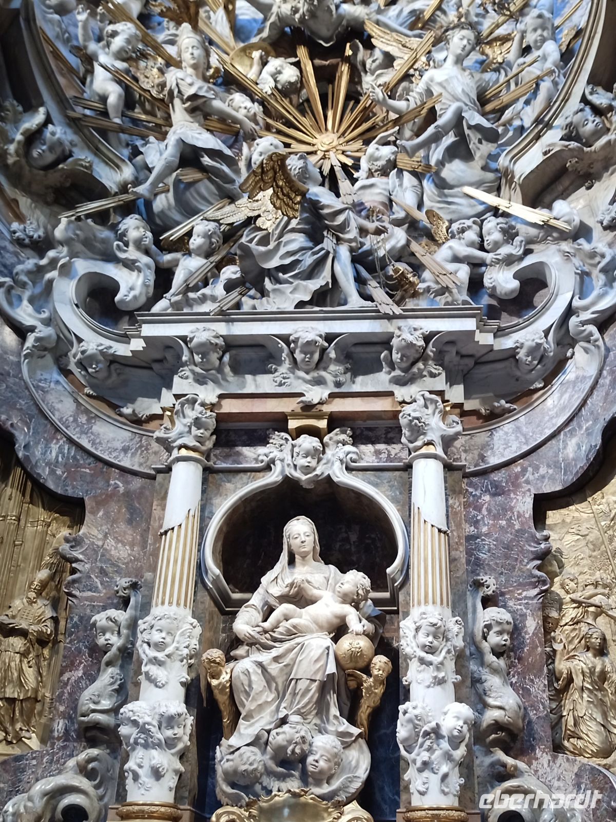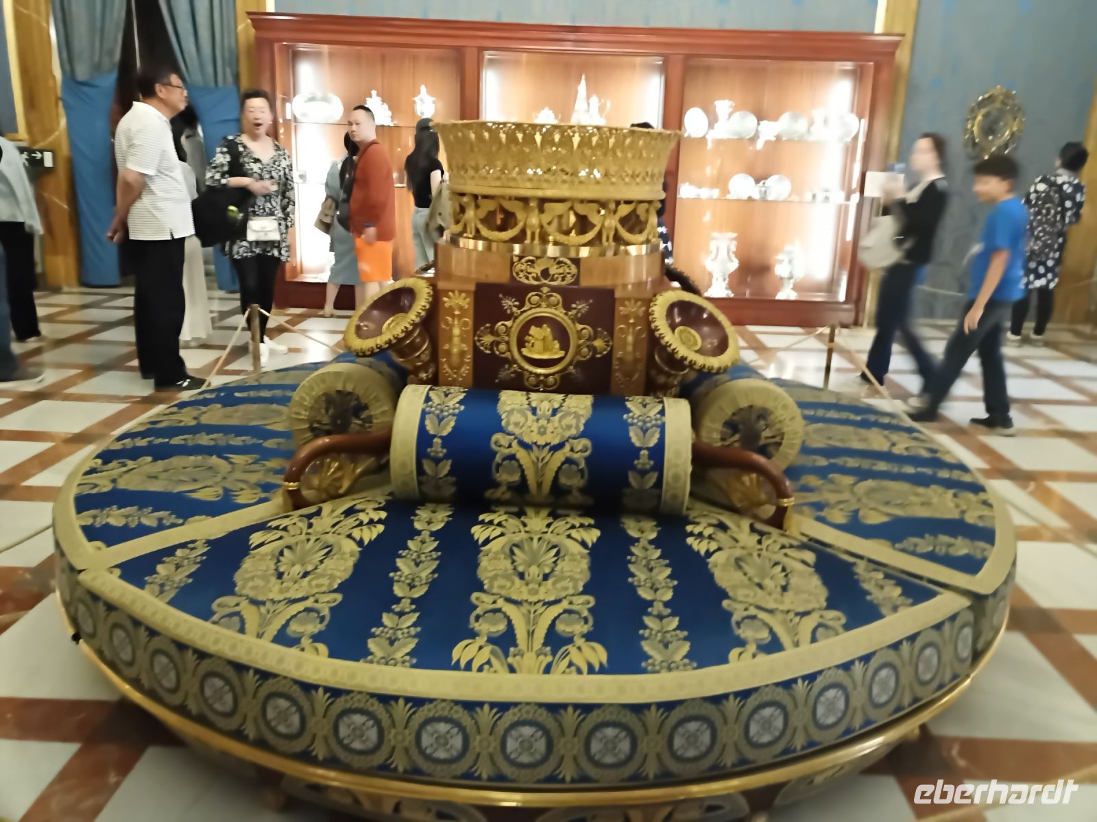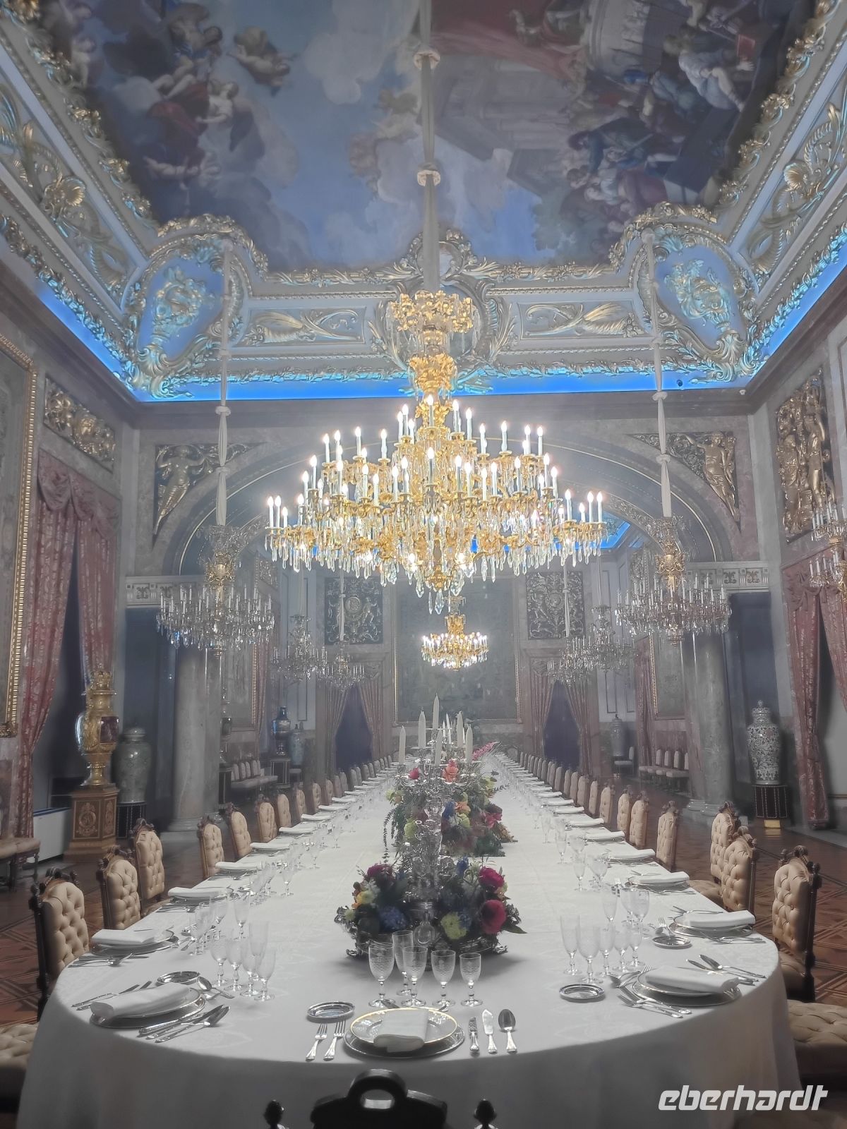 Wir durchqueren eine Reihe eindrucksvoller Säle – darunter der Thronsaal mit seinen roten Samttapeten, goldenen Ornamenten und kunstvollen Deckenfresken, sowie der Gasparini-Saal, dessen florale Wandverzierungen und filigrane Details einen bleibenden Eindruck hinterlassen. Besonders beeindruckt uns die königliche Kapelle mit ihrer prachtvollen Ausstattung und der feierlichen Stille, die sie ausstrahlt.