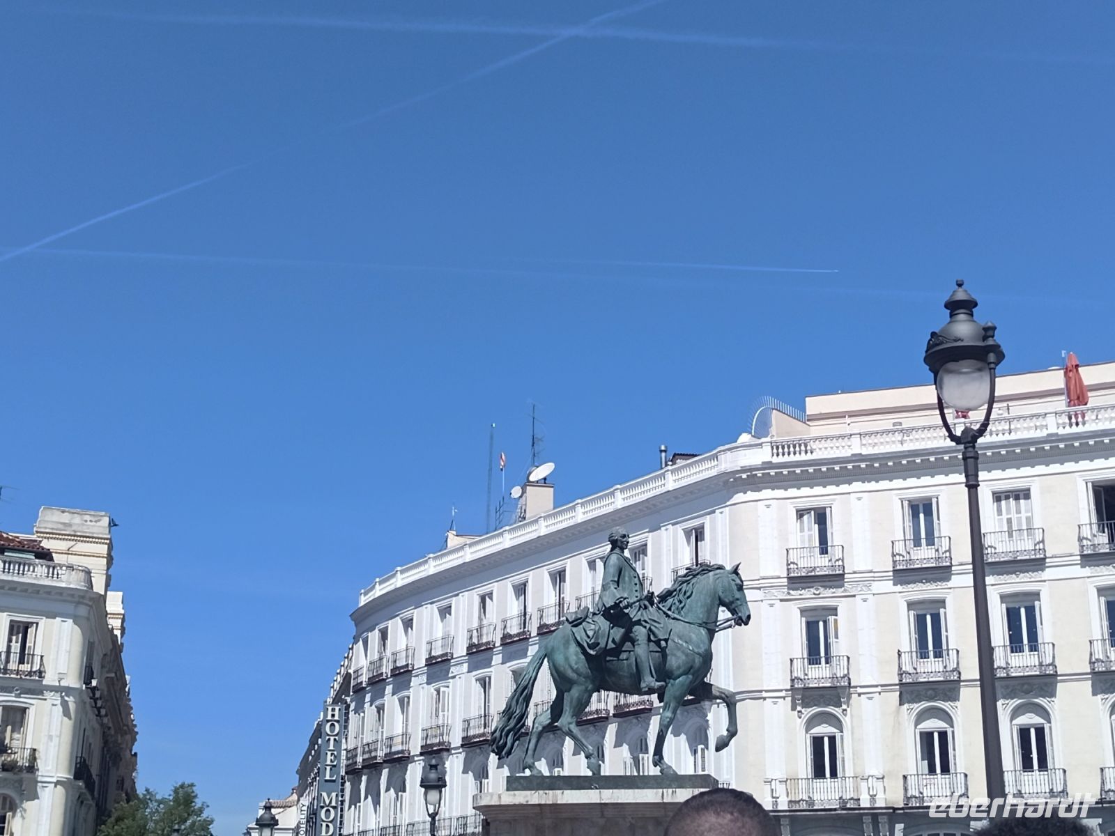Von dort aus schlenderten wir weiter über die Calle de Arenal, eine belebte Straße mit zahlreichen Tapasbars, Restaurants, Eisdielen und kleinen Boutiquen. Unser Weg führte uns zur Puerta del Sol, einem der zentralsten Plätzen Spaniens. Dort vor dem Regierungssitz der Region Madrid ist das