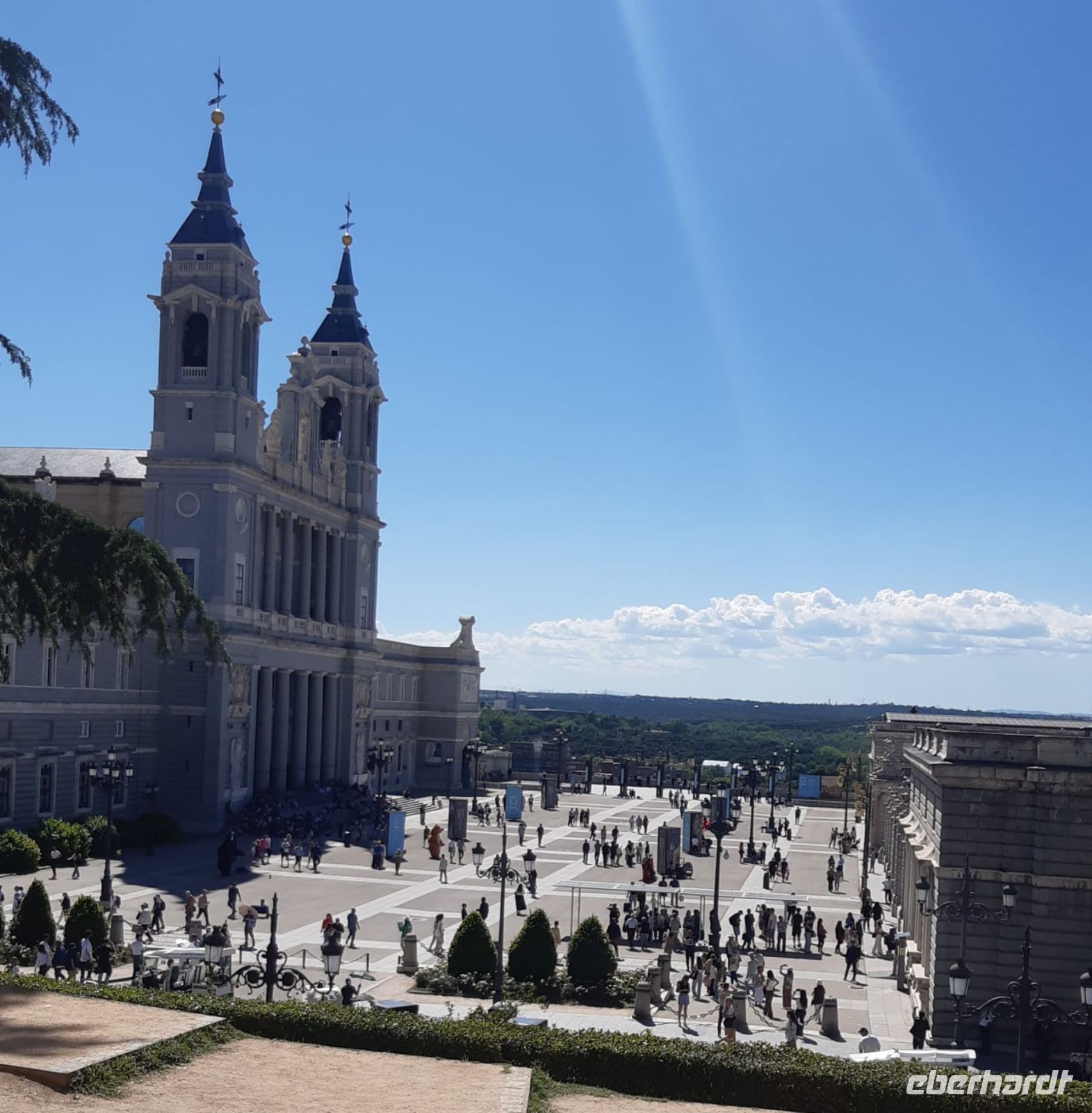 Andere Gäste nutzen die verbleibende Zeit für einen kurzen Besuch der Kuppel der Almudena-Kathedrale, von der aus man einen herrlichen Panoramablick über Madrid genießt.