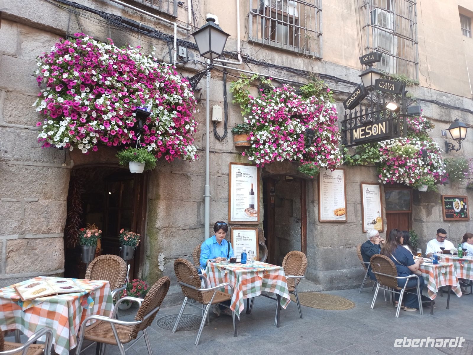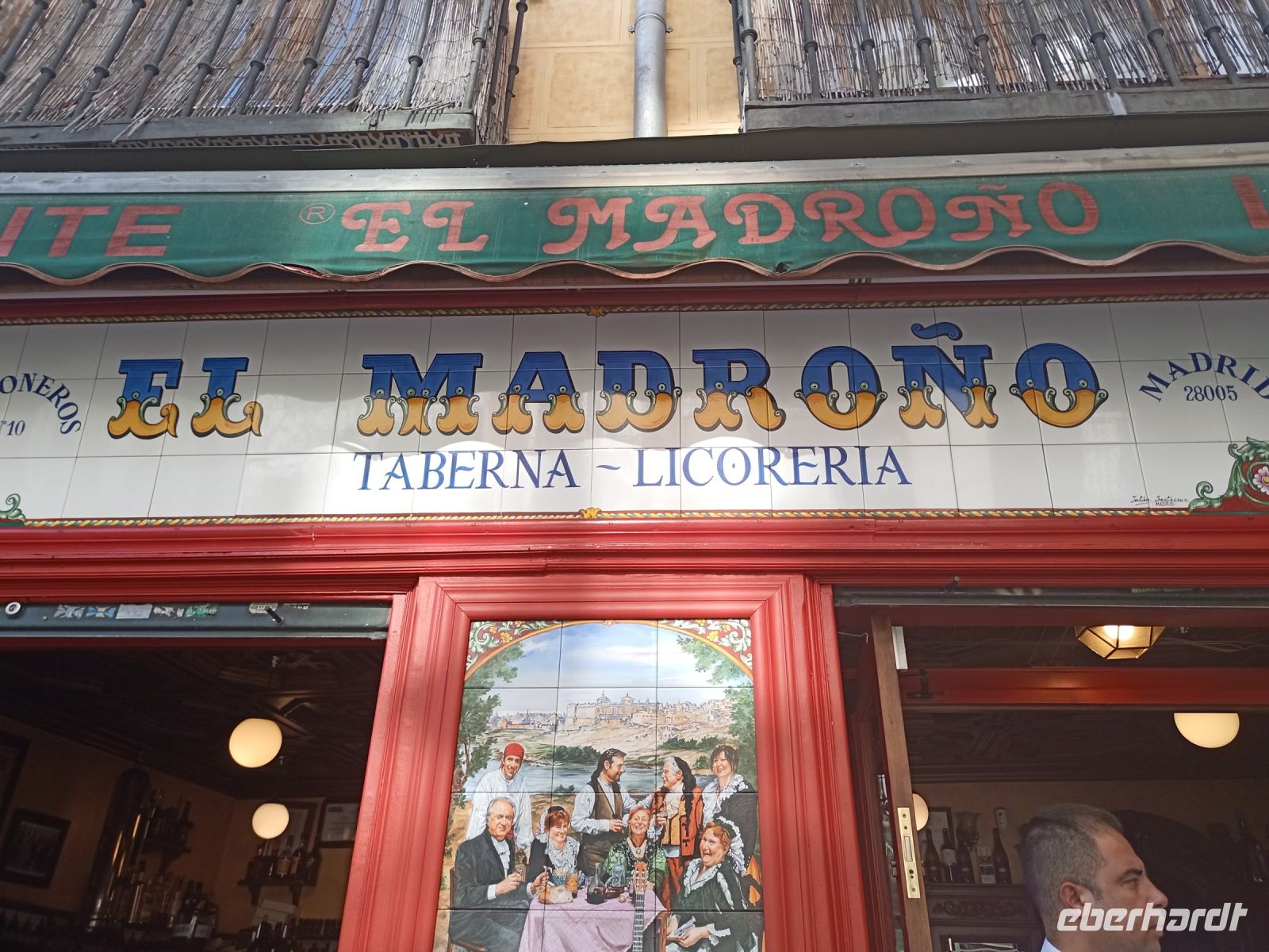 Anschließend gehen wir in die nahegelegene Calle de los Cuchilleros, wo unser Traditionsrestaurant Arco de Cuchilleros liegt. Diese Straße gehört zu den bekanntesten gastronomischen Meilen Madrids, voller Restaurants, Tapasbars und auch Flamenco-Lokalen. Hier war früher die Zunft der Messermacher angesiedelt. Im Restaurante El Madroño, gleich um die Ecke, besorge ich den typischen Madroño-Likör für unseren Abschiedsabend.