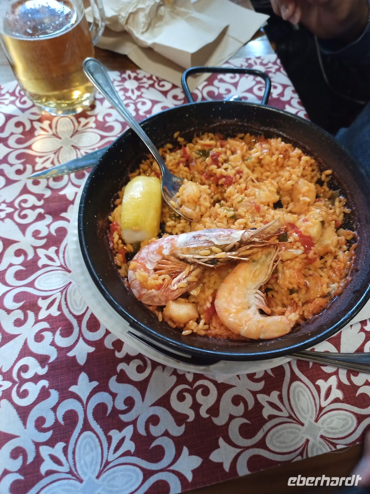 Das Abendessen im Arco de Cuchilleros ist ein stimmungsvoller Ausklang des Tages: traditionell, gemütlich, mit dekorativer Einrichtung. Es gibt eine Auswahl an Tapas und Paella. Zum Abschluss serviert uns das Haus drei verschiedene Liköre in kleinen Fläschchen – ein schönes, süßes Finale. Einige aus unserer Gruppe möchten den Tag nicht enden lassen und schlendern noch zur Plaza Mayor, wo das Leben weiter pulsiert. In den Straßencafés herrscht lebendiges Treiben.
