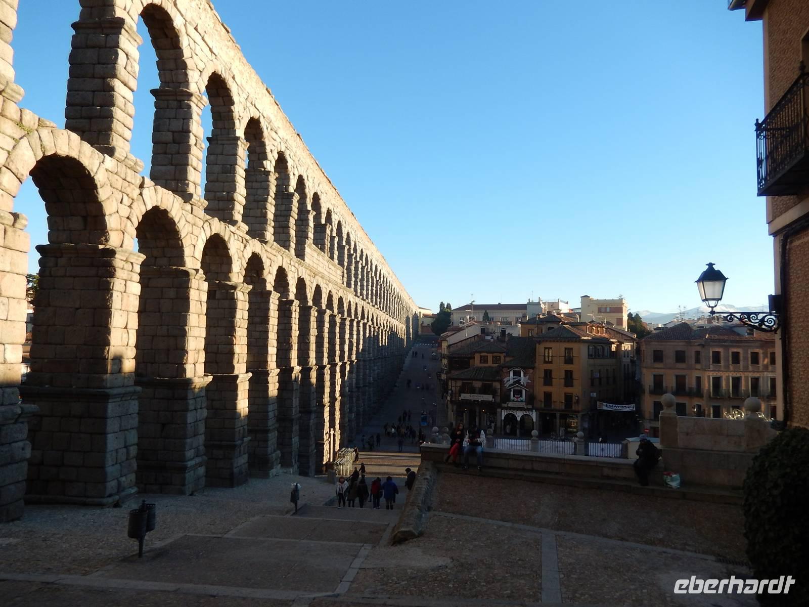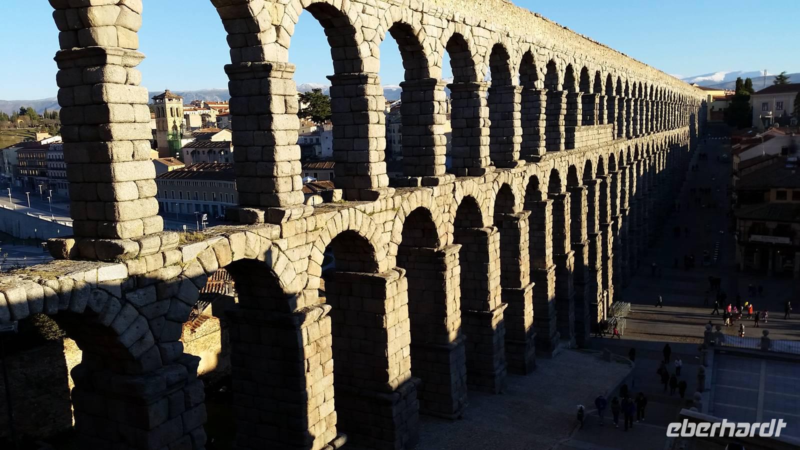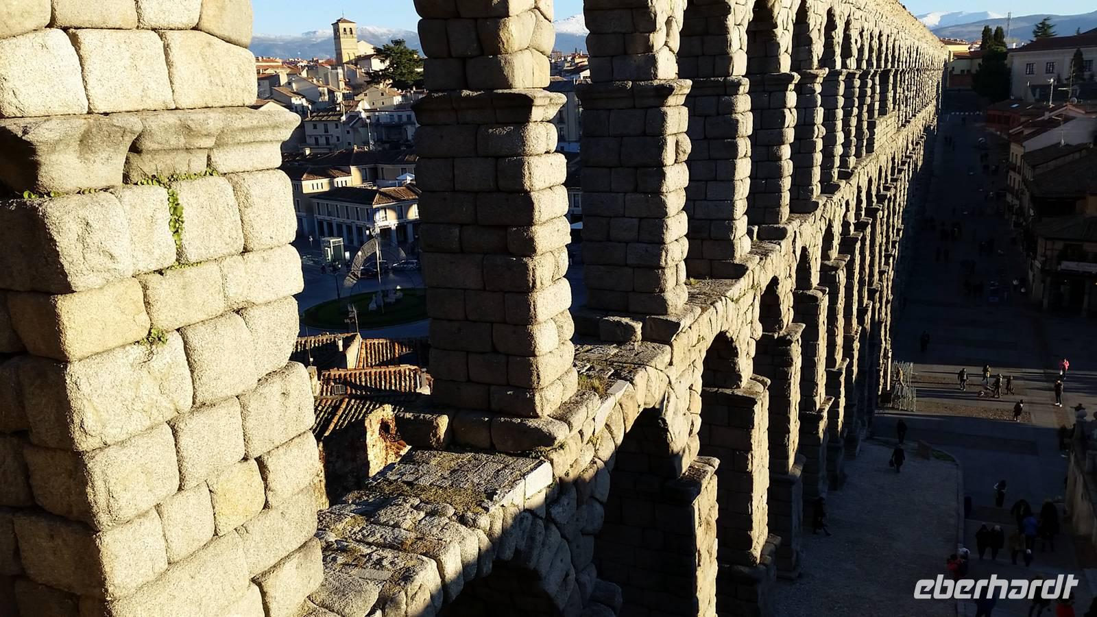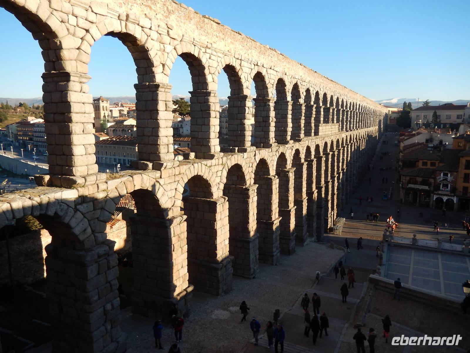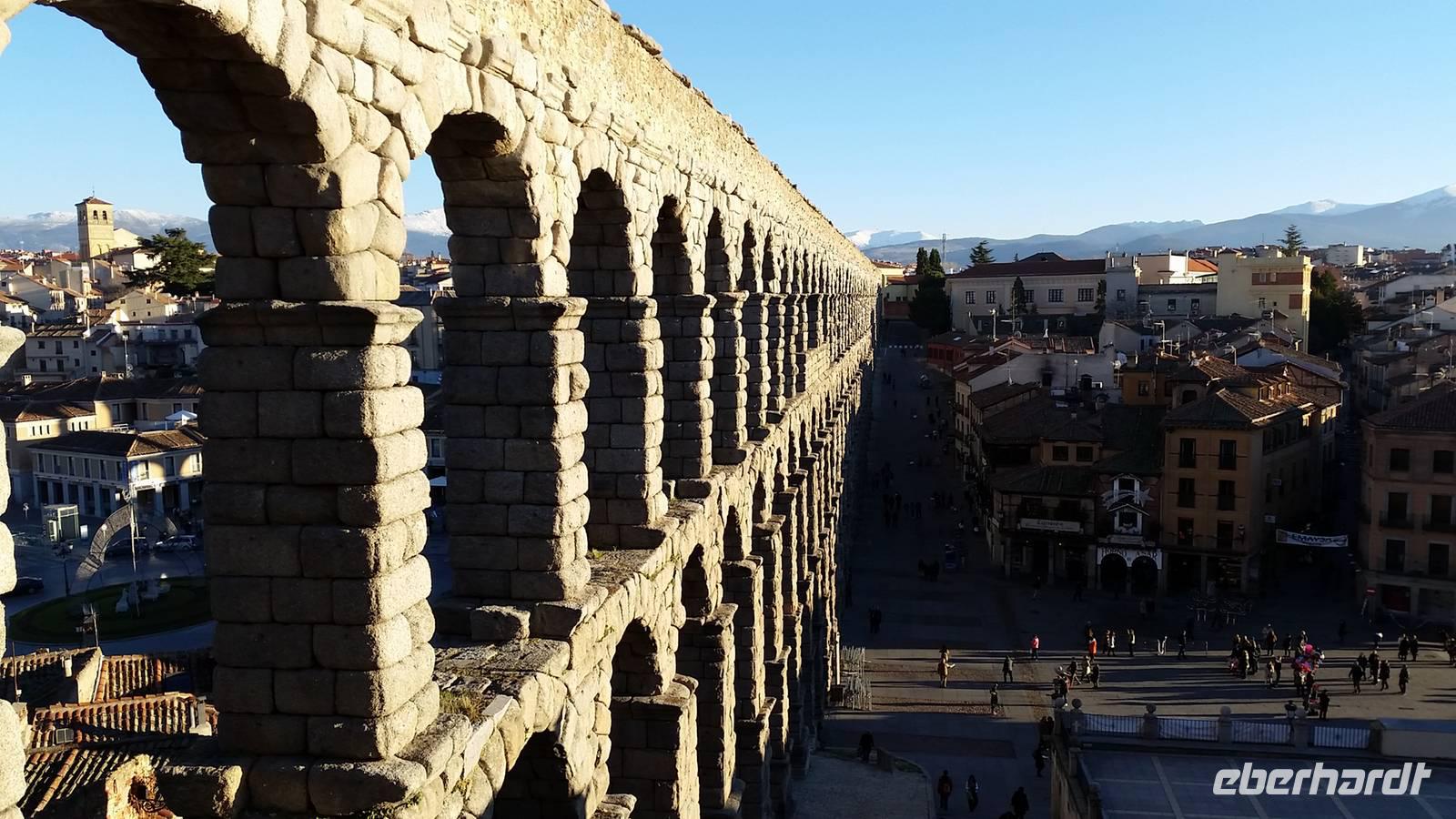 Nach einer schönen Kaffeepause an der Sonne fuhren wir über die Berge und über den „Löwen" Pass anschließend weiter in die Stadt Segovia, die insbesondere für ihre zahlreichen Kirchen aus romanischer Zeit berühmt geworden ist. Als besonderer Höhepunkt gilt das über 28 Meter hohe antike römische Aquädukt. Majestätisch erhebt sich dieser eindrucksvolle Bau in mitten der Stadt und durchläuft diese auf 700 Meter Länge. Wir hatten heute keine Zeit zum Mittagessen, um die berühmte Spezialität „Cochinillo" (BabySchwein) zu essen aber nach dem großes Silvester Essen von gestern, hatten wir auch noch keinen richtigen Hunger.