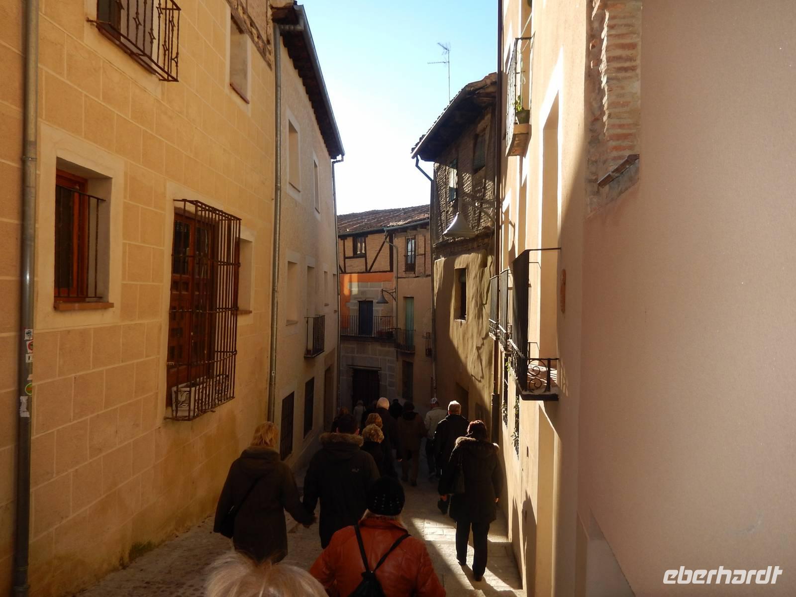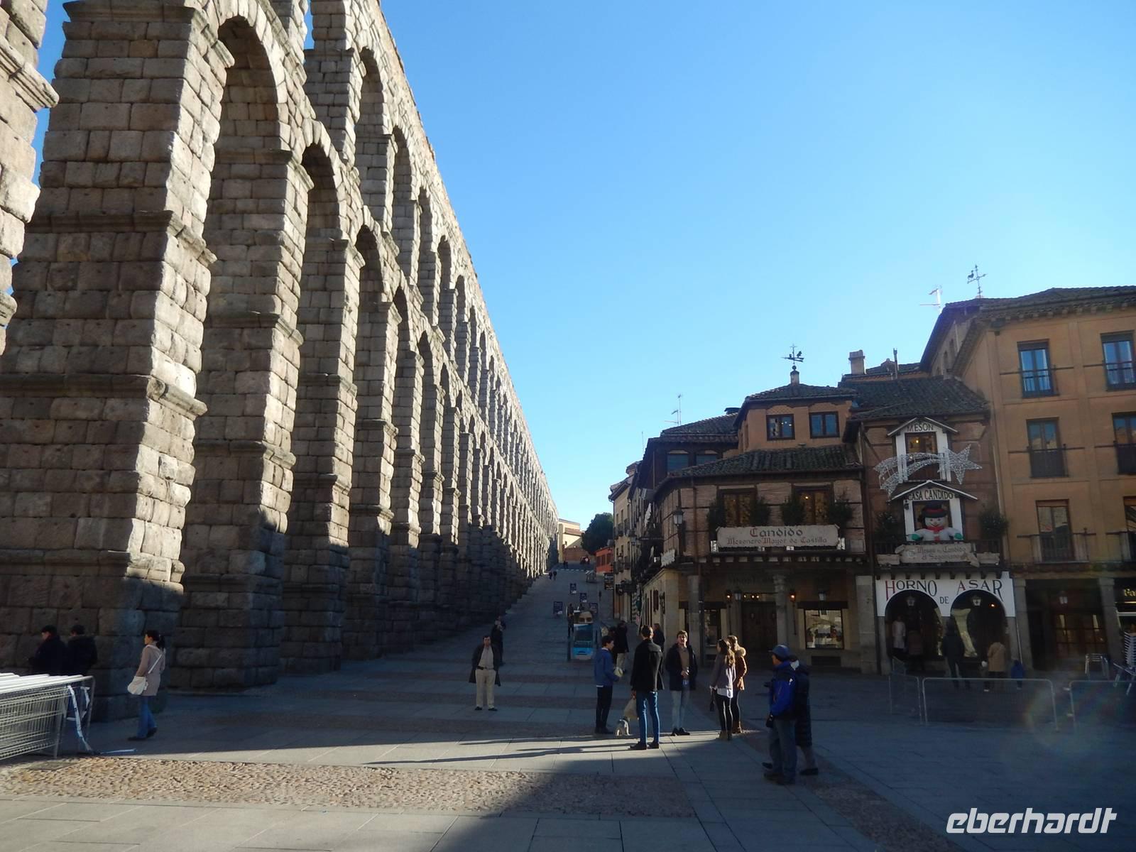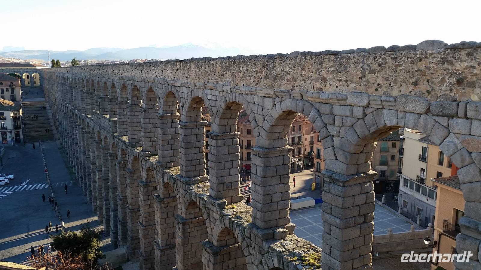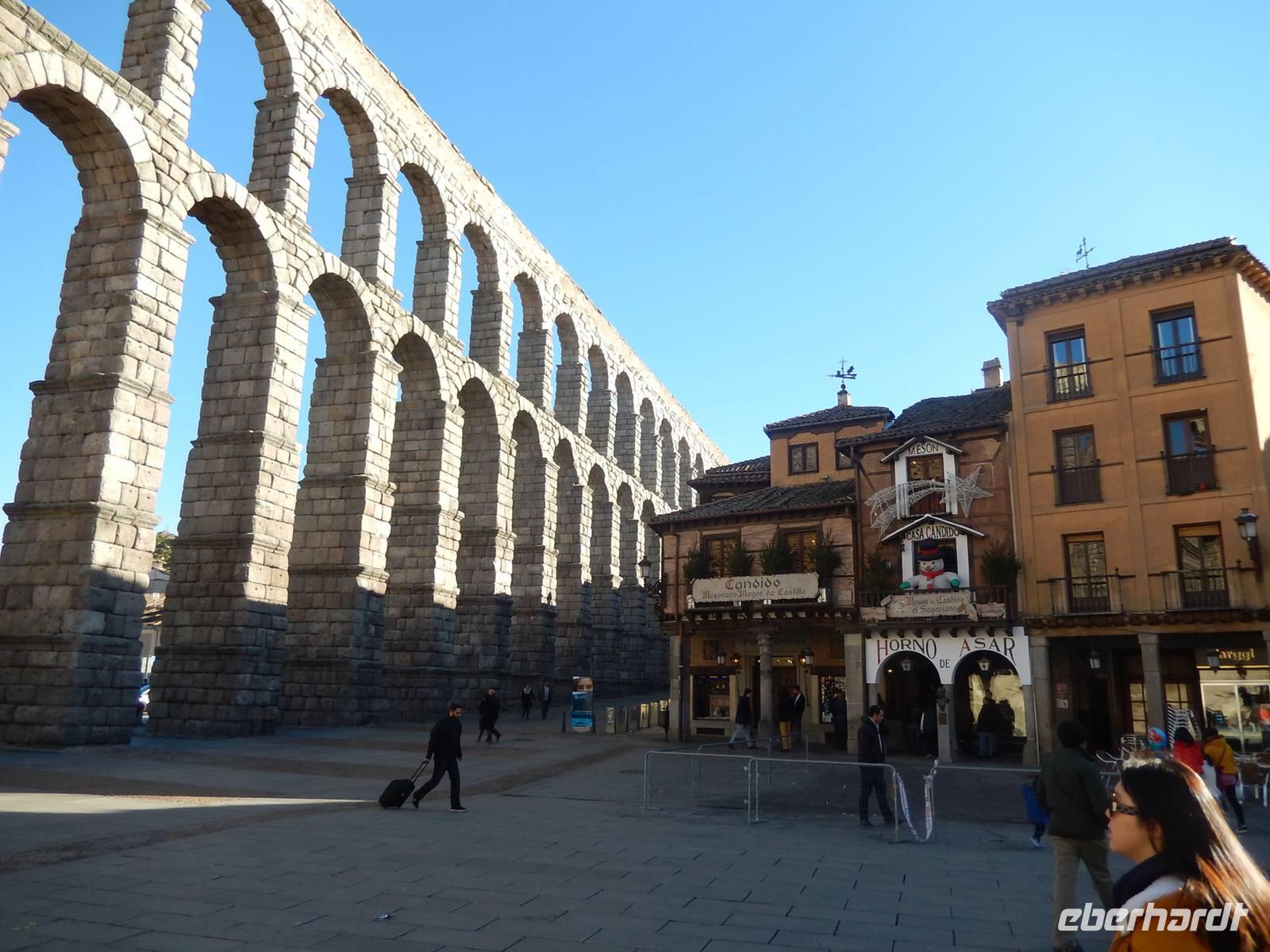 Nach einer schönen Kaffeepause an der Sonne fuhren wir über die Berge und über den „Löwen" Pass anschließend weiter in die Stadt Segovia, die insbesondere für ihre zahlreichen Kirchen aus romanischer Zeit berühmt geworden ist. Als besonderer Höhepunkt gilt das über 28 Meter hohe antike römische Aquädukt. Majestätisch erhebt sich dieser eindrucksvolle Bau in mitten der Stadt und durchläuft diese auf 700 Meter Länge. Wir hatten heute keine Zeit zum Mittagessen, um die berühmte Spezialität „Cochinillo" (BabySchwein) zu essen aber nach dem großes Silvester Essen von gestern, hatten wir auch noch keinen richtigen Hunger.